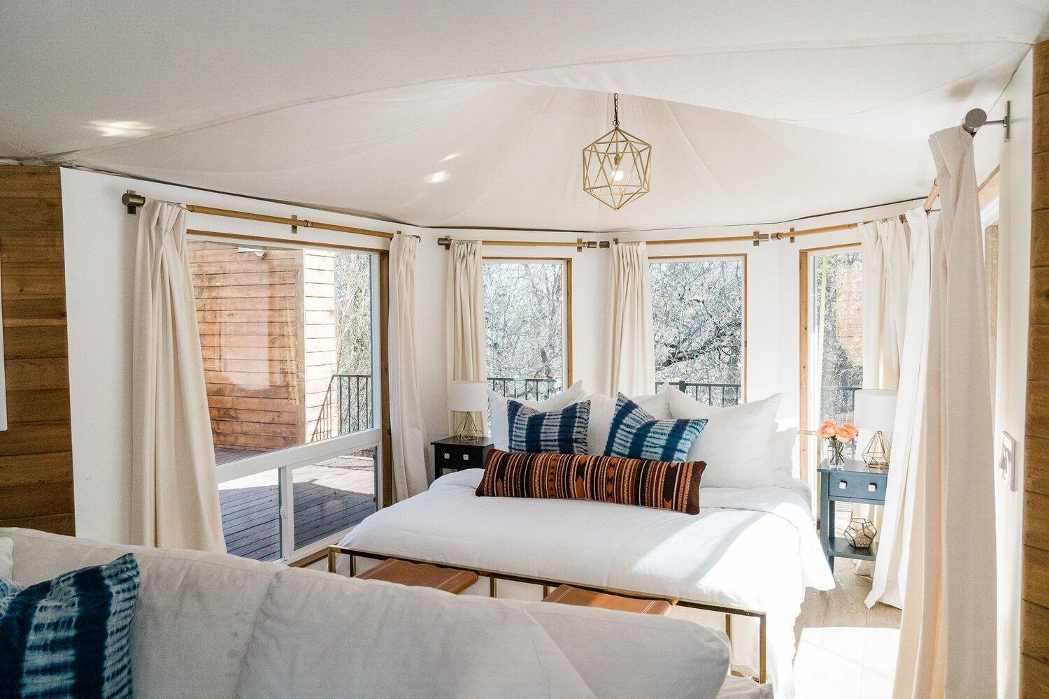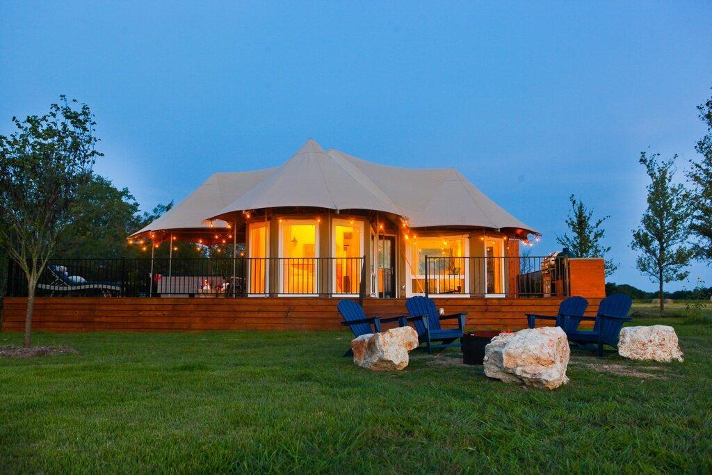 We have a wedding venue located on our 100-acre property in a 150 year old pecan grove overlooking the San Marcos River. You'll have the option to reserve our seven luxury safari tents and cabin for your wedding weekend, allowing you to provide lodging to your guests. You may also reserve additional pop-up tents if you would like to accommodate additional guests.
