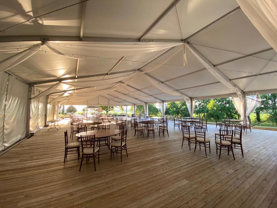 Enjoy everything the farm has to offer! Walker's Overlook is the founding venue in the Overlooks family. We are very proud of our farm; the charm of the treelined drive, the stone house, and the allure of photographs in front of the vintage car which has been in the family for generations. We are excited to meet you and delighted to help you plan your perfect day! From the spacious bridal suite upstairs to the mancave downstairs there's so much more to the stone built colonial house than just great photo ops! The old walnut tree at the ceremony site is a gorgous backdrop to your vows with the rolling countryside and farmland of Maryland completing the perfect setting. Then reserve a sweet spot on the patio or inside the house for cocktails before dinner is served in the spacious tent. Complete with hardwood floor, the tent can accomodate up to 275 guests comfortably, and still has space for a large dance floor.