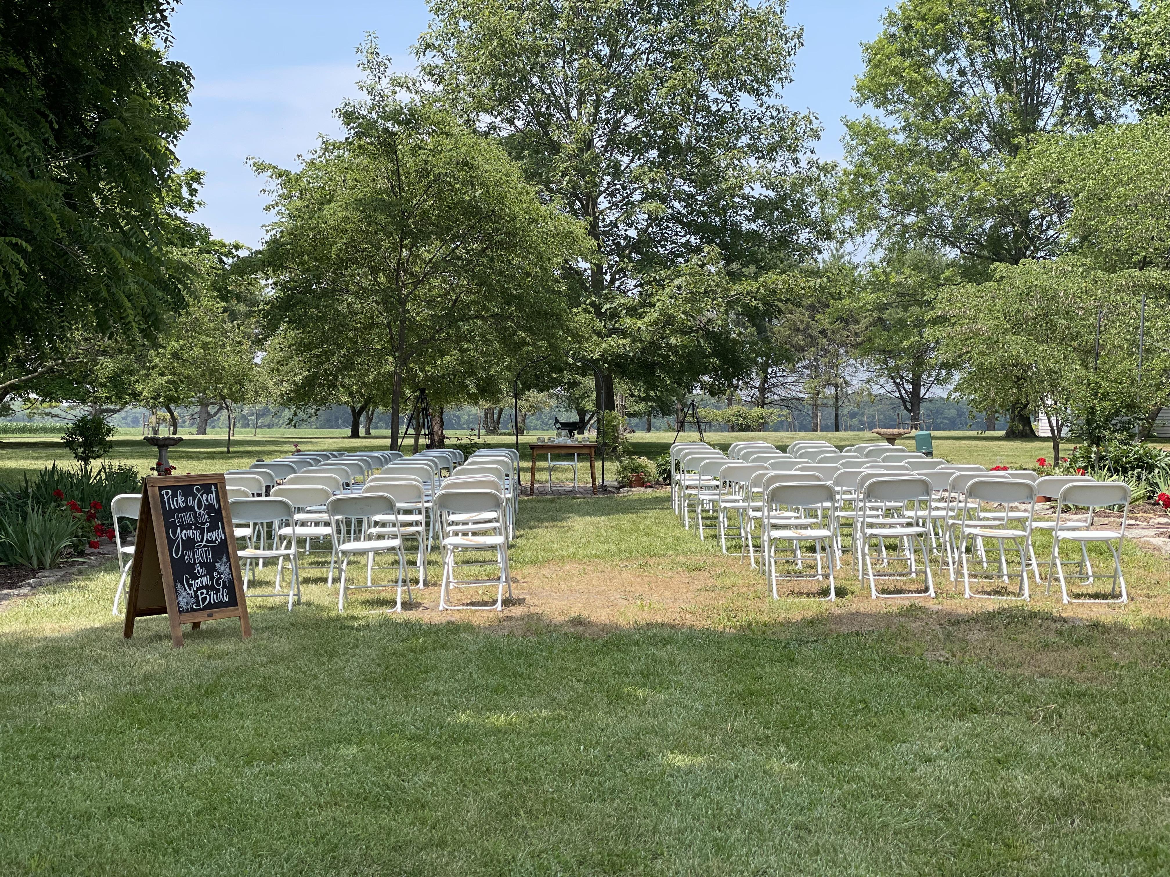 - Climate controlled indoor ceremony space -Ability to use our cross backdrop, podium and rustic table -Ability to also use our outdoor ceremony chairs