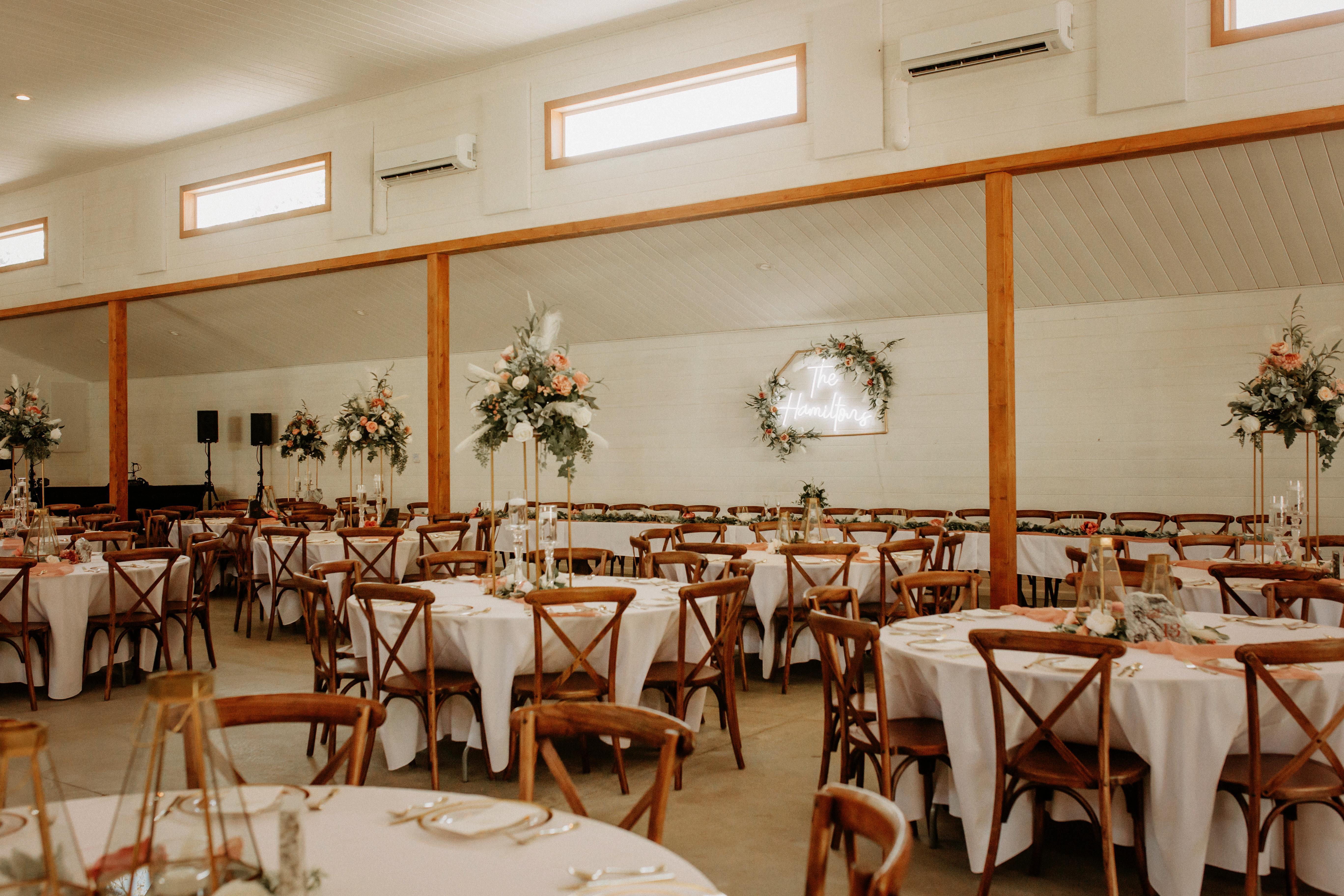Our indoor on-site reception space can seat up to 500 guests and you will be able to arrange the provided tables and chairs to suit your needs.