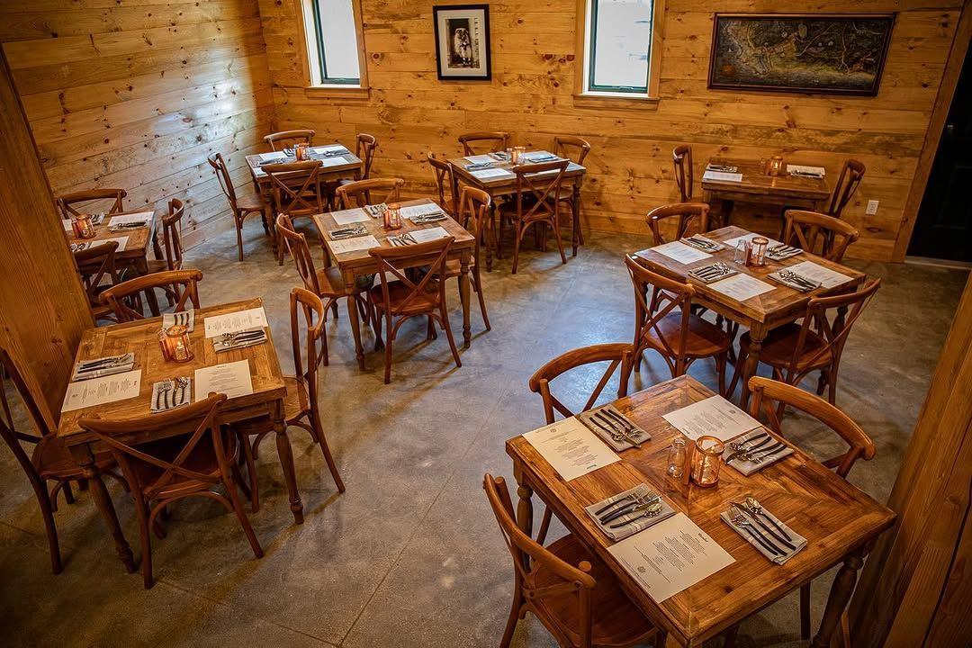 The Wander Grange Hall features high ceilings, a view of surrounding meadows, and includes a commercial grade kitchen. The intimate dining area is capable of seating 85 or a cocktail party (or after dinner celebrations) for up to 110. The wood crafted artisanal bar is open on three sides, making it the perfect place to serve celebratory cocktails.