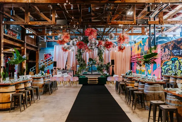 Discover Wanderlust Wine Co. at Shady Lane, a one-of-a-kind wedding venue tucked into the creative heart of East Austin. Our urban winery offers 13,000 square feet of vibrant indoor space, thoughtfully designed for celebrations that transition effortlessly from ceremony to reception, whether you’re hosting an intimate gathering or a large celebration of 200+ guests. You’ll immediately feel the laid-back, welcoming energy that makes this space so special. With in-house wine barrel tables, barstools, cocktail tables, and cozy lounge vignettes, the venue creates a warm, social layout that naturally encourages guests to connect. Conveniently located just minutes from downtown Austin, Wanderlust Wine Co. is perfect for couples who want something a little offbeat, a little bold, and completely unforgettable.