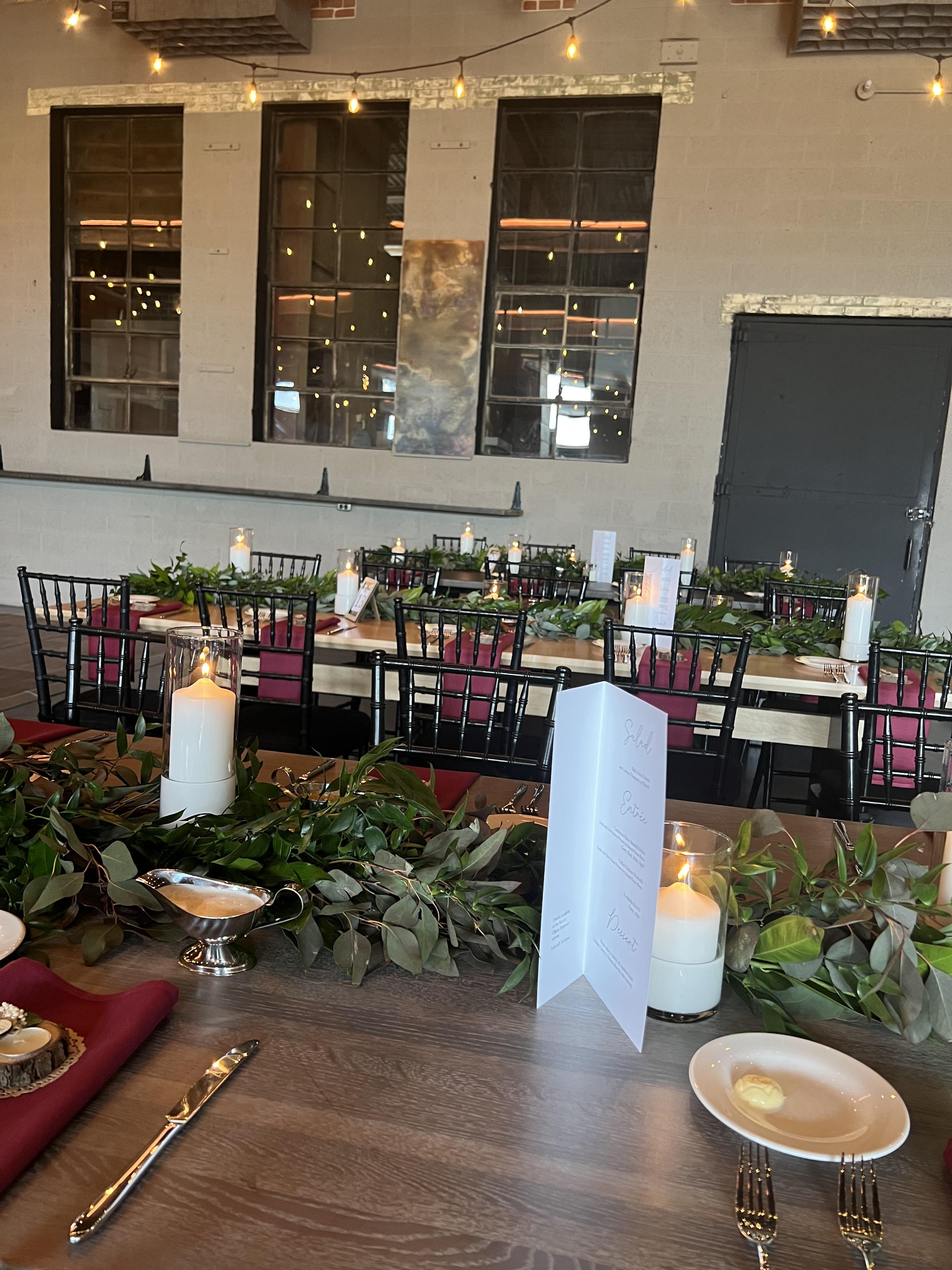 My husband and I knew the moment we toured Warehouse 6 that it would be the perfect space for our wedding reception. Lynn was amazing to work with—she’s incredibly organized and made the entire process so smooth amidst the craziness of wedding planning. We rented the loft to get ready the morning of, and it was ideal—plenty of mirrors, seating, and space for the whole wedding party. Olivia, our day-of coordinator, was so helpful and responsive, always available to answer questions and assist with setup. The venue’s rustic charm was exactly what we envisioned, and we loved being able to open the garage door so guests could enjoy both the indoor and outdoor areas. Our guests couldn’t stop raving about the space—especially the beautiful, handcrafted tables made next door at Cento Anni, each unique in size and color. We truly loved everything about Warehouse 6 and would highly recommend it for any event or celebration.