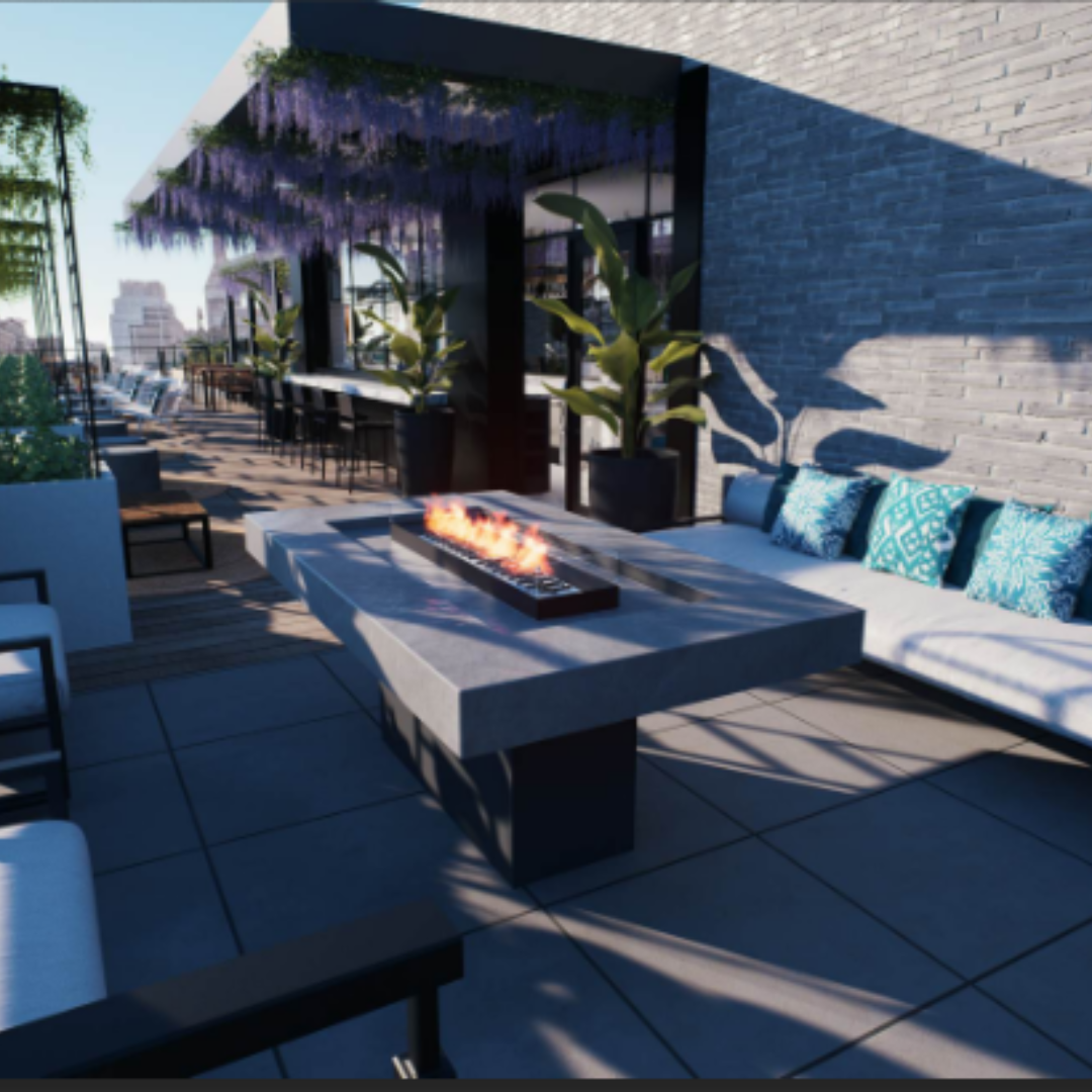 Stylish open-air venue with skyline views, modern seating, firepits, and a vibrant atmosphere. Perfect for receptions, gatherings, and private events.