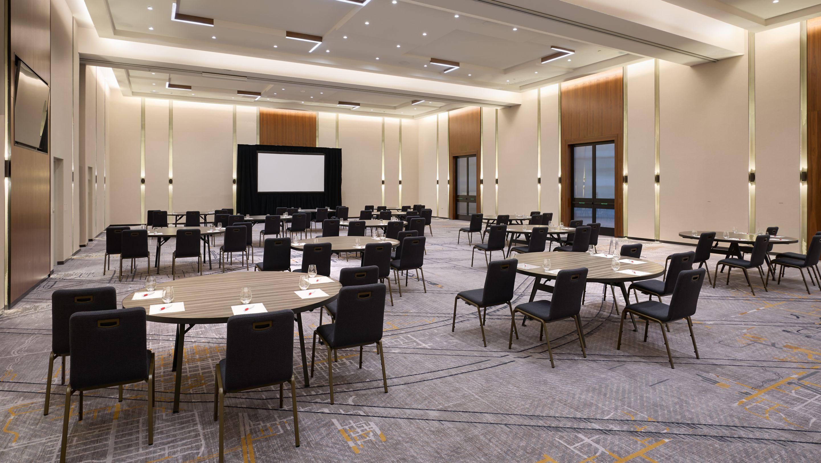 This versatile space features high ceilings and beautiful chandeliers, creating a sophisticated atmosphere. Large windows invite natural light, enhancing the ambiance. Equipped with state-of-the-art audiovisual technology and a spacious dance floor, it’s designed for memorable gatherings. Plus, our welcoming ballroom foyer offers a laid-back space for guests to mingle and relax. Let our dedicated team help bring your vision to life in this beautiful venue!