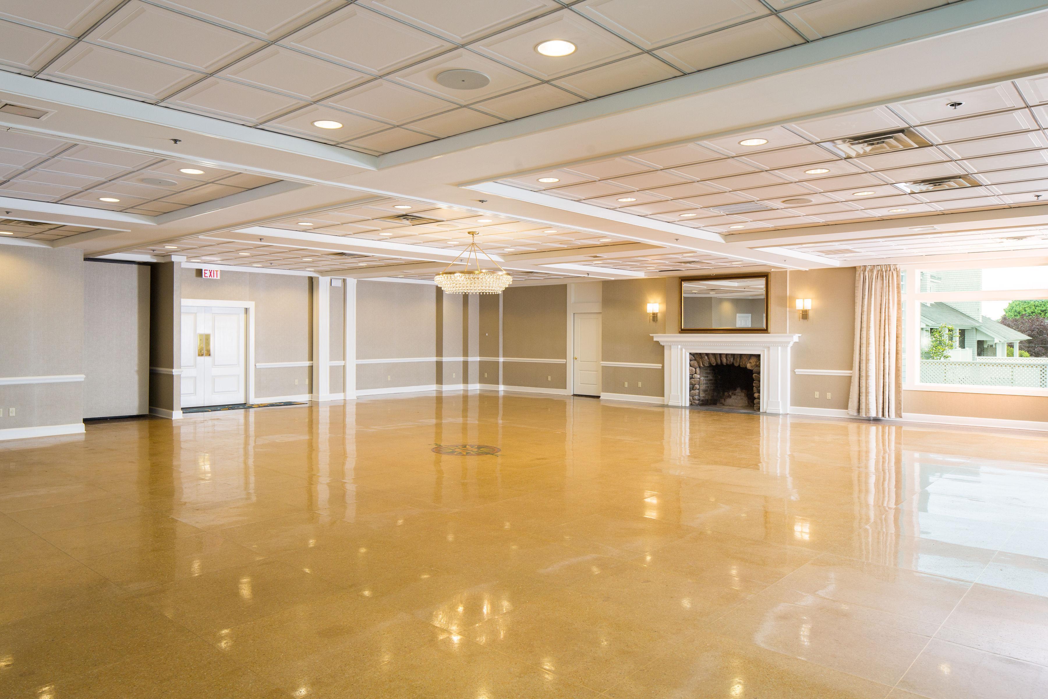 The Grand Ballroom is a 2,450 square foot ballroom with a panoramic view of Long Island Sound. This space, renovated in 2019, features a fireplace, original stone flooring and a private foyer with an attached balcony. This space can be used for weddings up to 120 people.