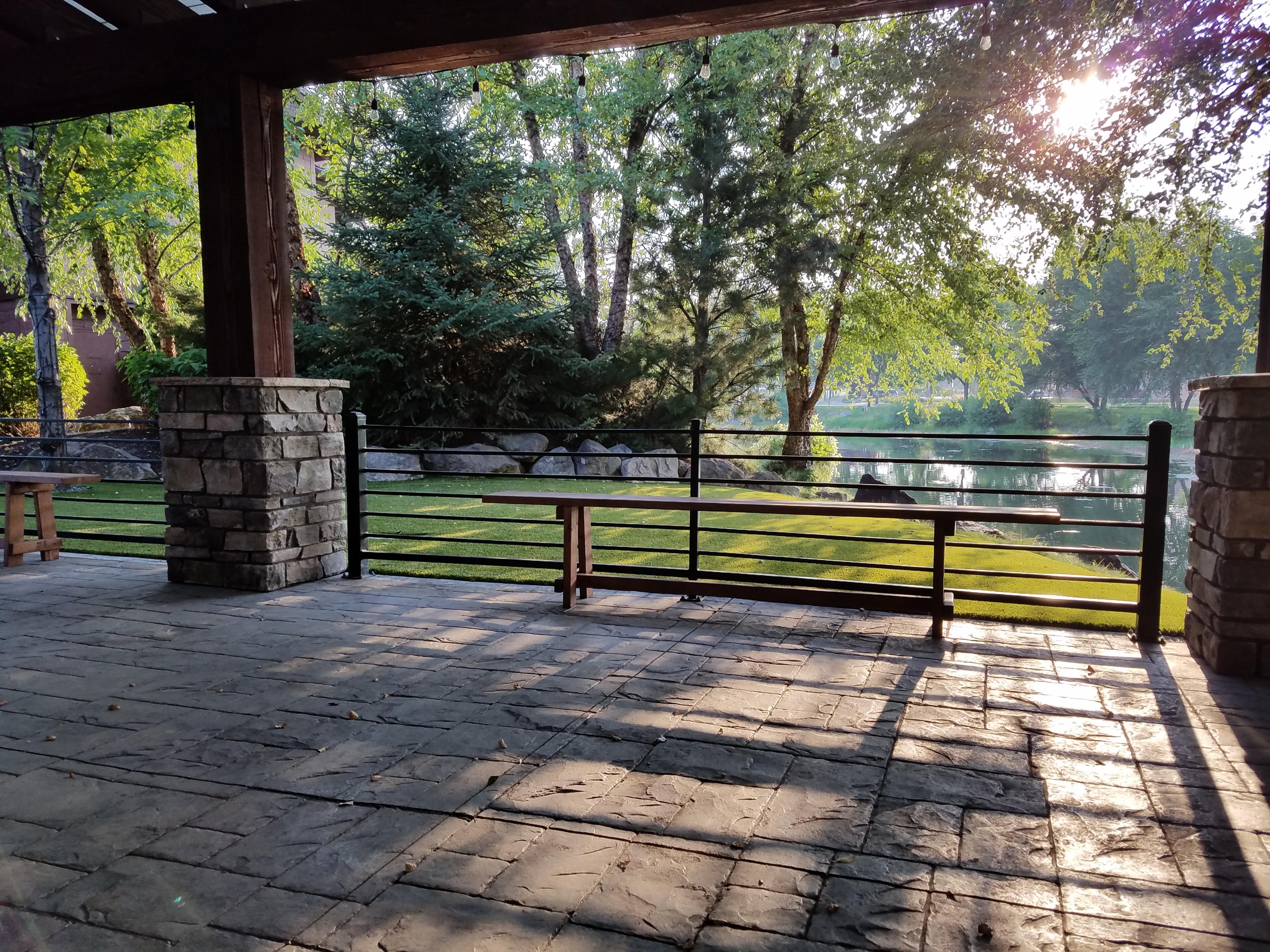 Prefer an outside ceremony or dining service? Our patio sits on our namesake-the Waters Edge. Here you'll enjoy a serene, waterfront view surrounded by lush vegetation, a beautiful grotto, bistro lighting and the idyllic sights and sounds of nature.