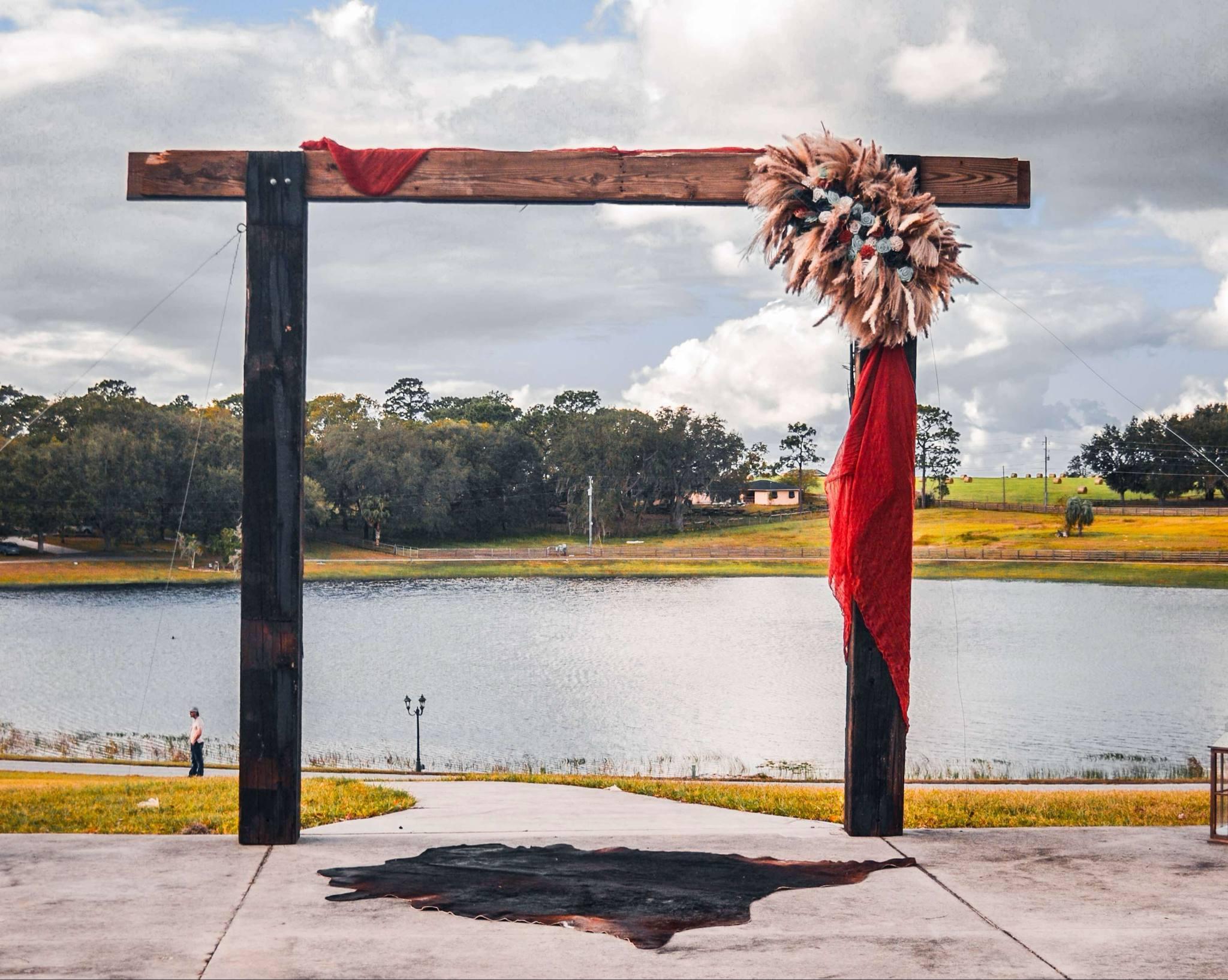 Perched just above the peaceful waters, our Hilltop offers a breathtaking backdrop for your most meaningful moments. With panoramic views of the lake and rolling countryside, this elevated setting creates a naturally stunning stage for saying “I do." A handcrafted wooden arch stands at the center, ready to be styled to match your vision — whether rustic, romantic, or minimalist.