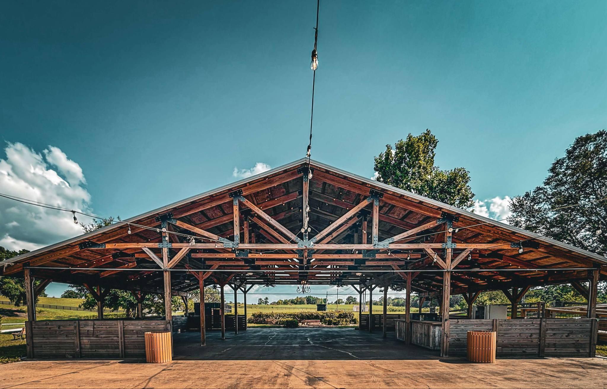 Arbor Court at Wayside at Cottom Farm features 7,200 square feet of beautifully designed outdoor event space, perfect for weddings, receptions, and special gatherings. At the center is a 2,400 sq ft covered pavilion (40 ft x 60 ft), built entirely of rich, exposed wood for a warm and rustic aesthetic. Surrounding the pavilion is an additional 4,800 sq ft of uncovered space, ideal for outdoor ceremonies, cocktail hours, or dancing beneath the sky.
