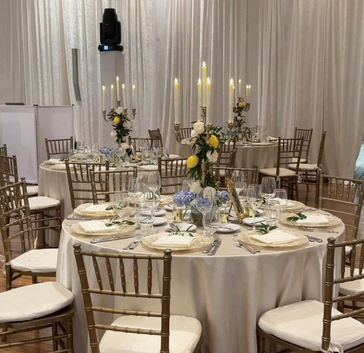 This venue is large enough to hold 150 guests with space for a dance floor. It features a commercial kitchen to be used by the caterer of your choice. There are two courtyards that are perfect for cocktail hour. And it is only a few steps from both the church and the lakeside venues.
