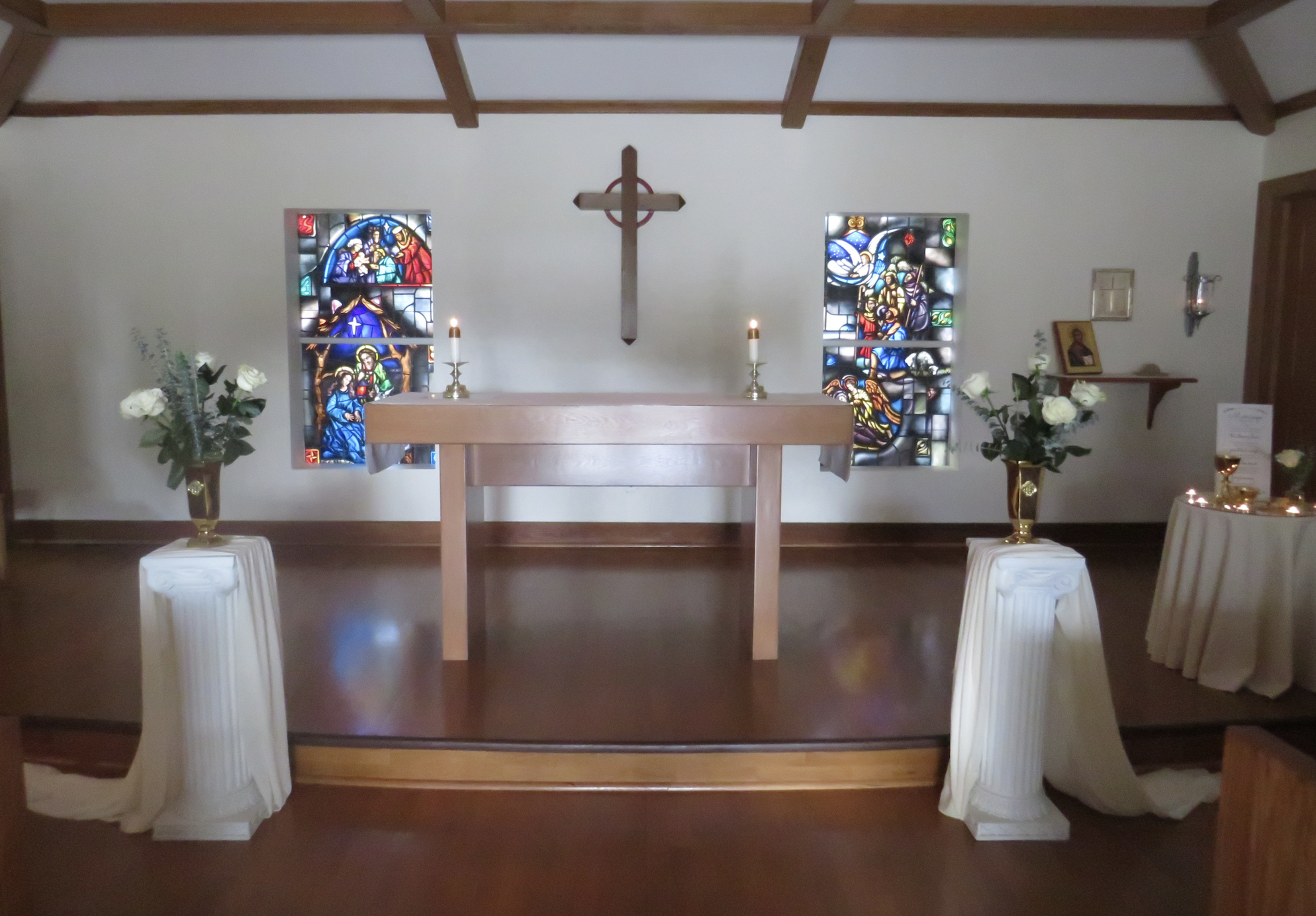 Located just off the Main Chapel, this small chapel offers an intimate setting for up to 50 people. It boasts four beautiful stained glass window that tell the story of the Christ Child and the Holy Family.