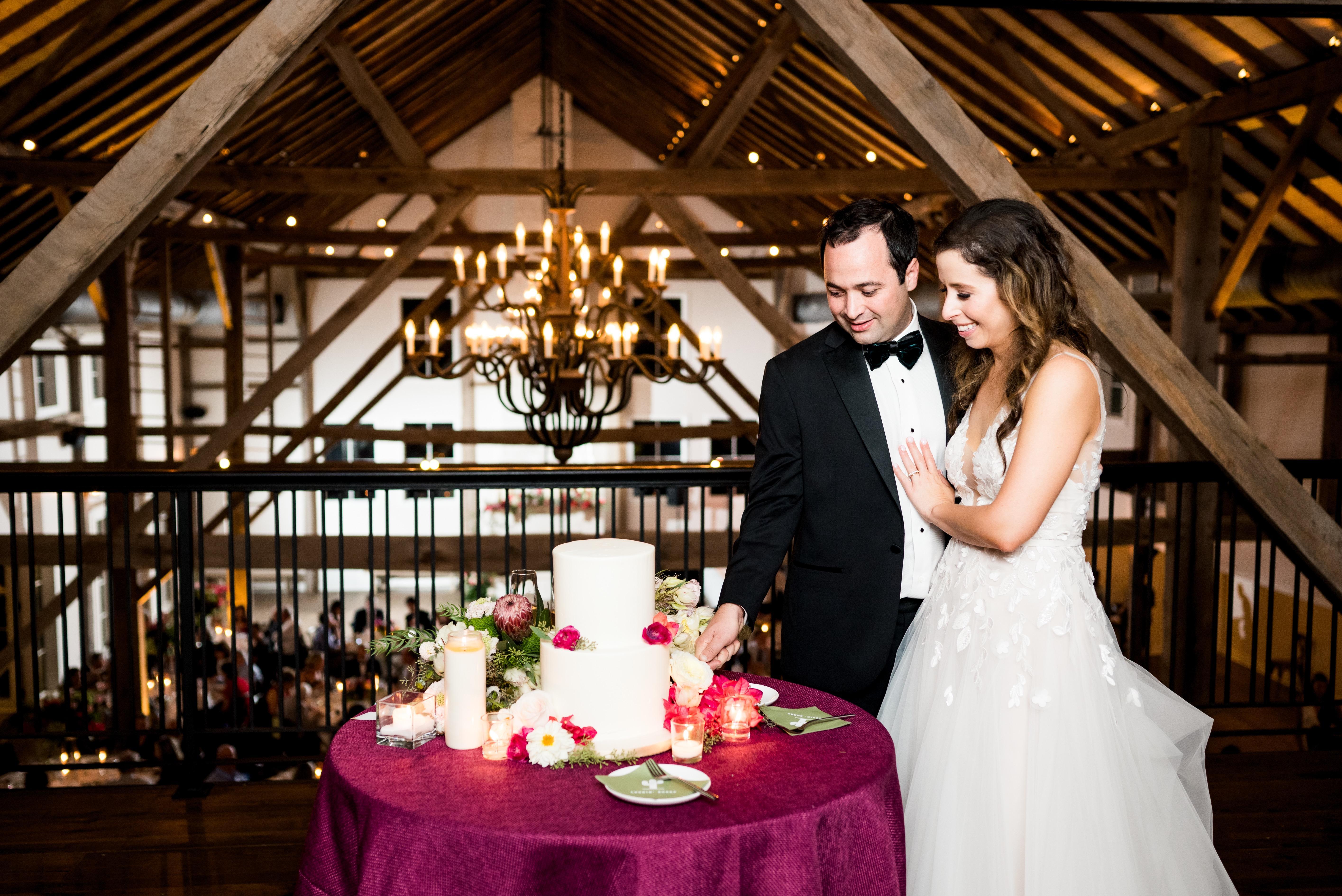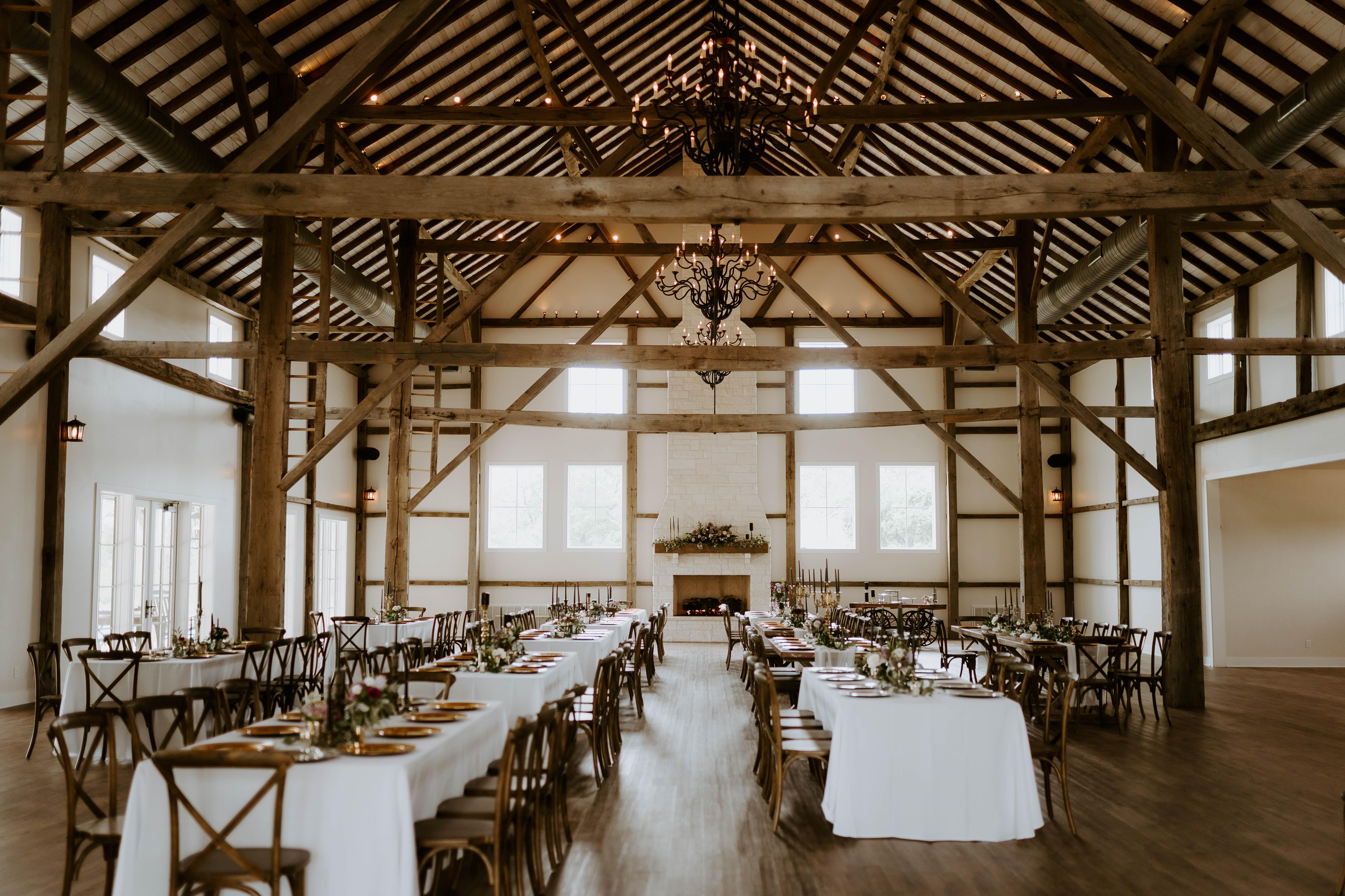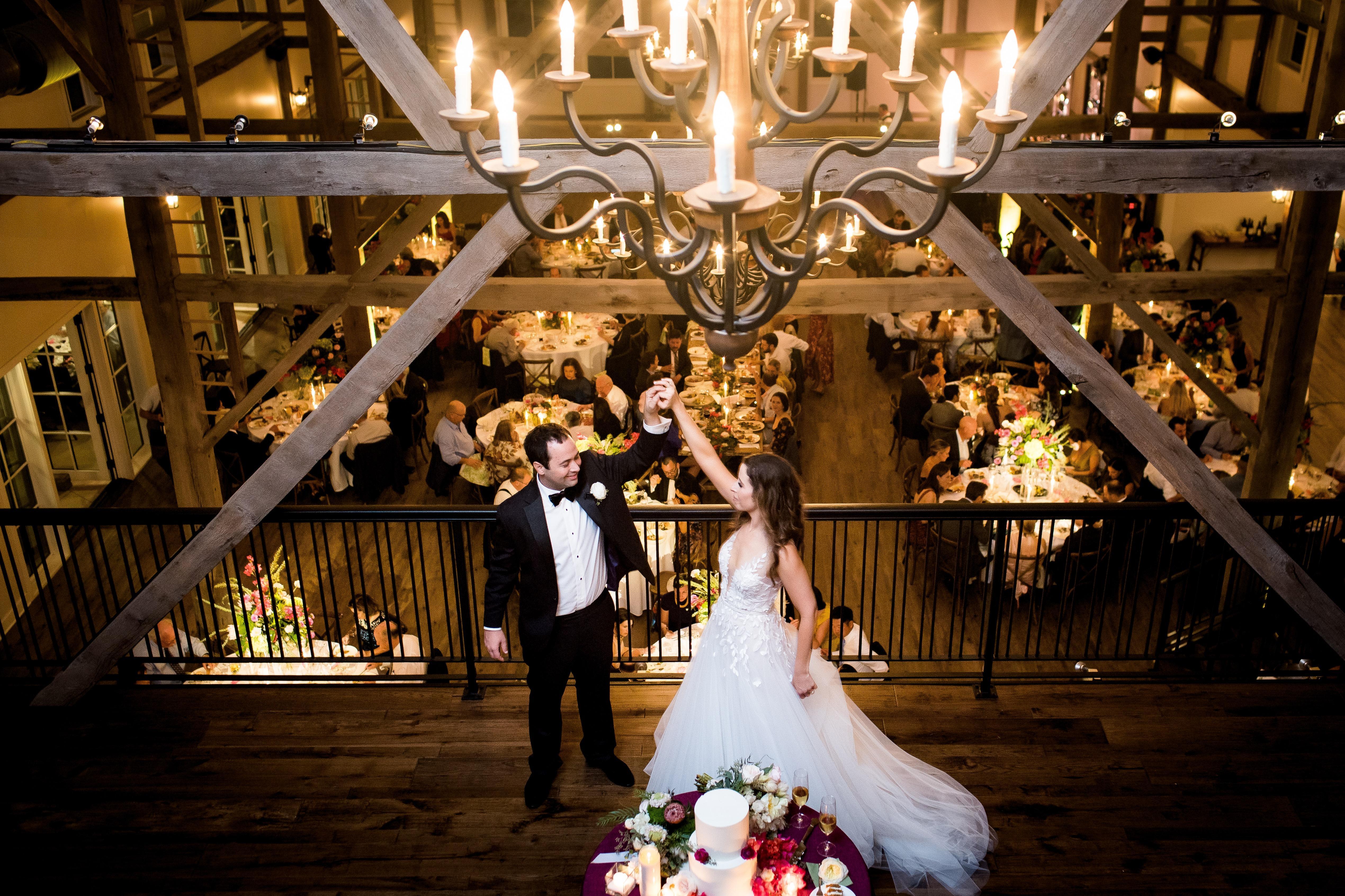 This is our reception space - the Wedding Barn. The beams are from a barn that was built in the 1840s in Maryland. There is space for 300 guests downstairs and another 50 upstairs. The floors are fully dance-ready - no need to bring in a separate dance floor! The caterer's kitchen provides ample space to prepare dinner for your guests.