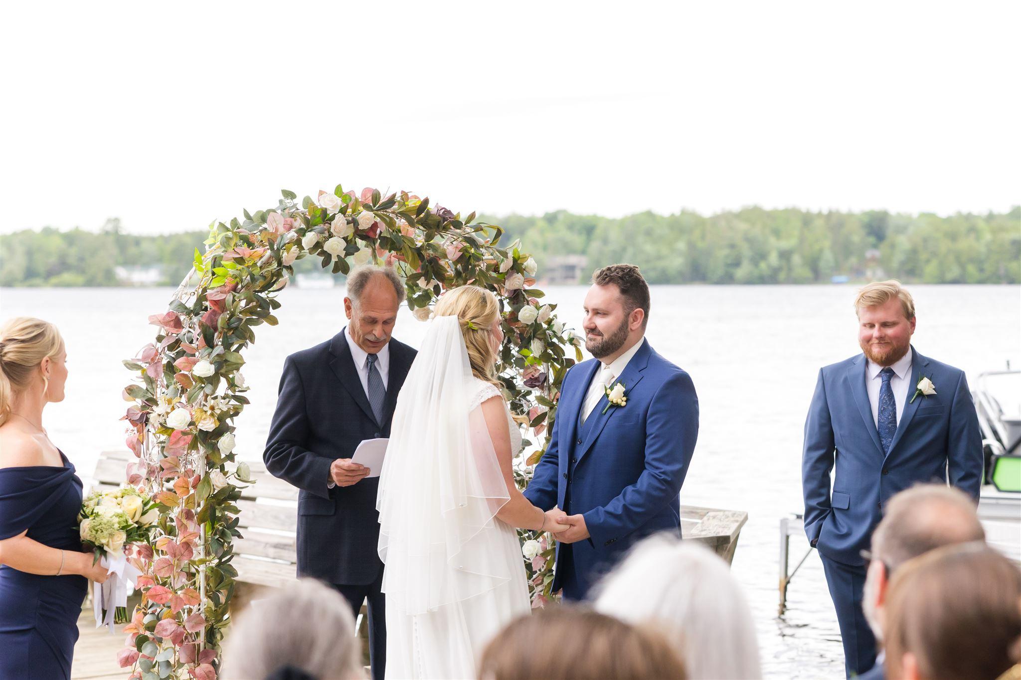 We often hold ceremonies outside with the lake background, which many couples appreciate.