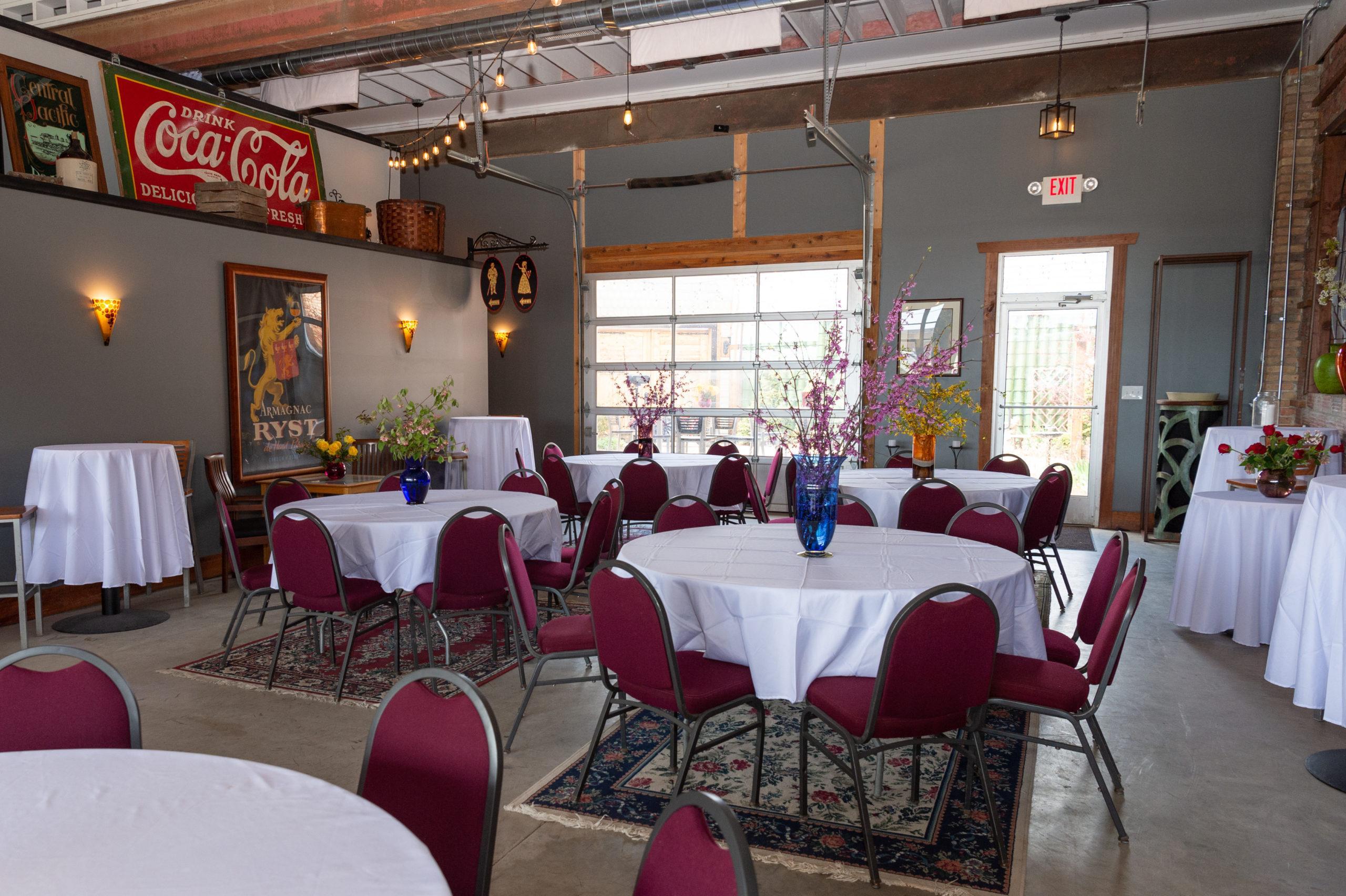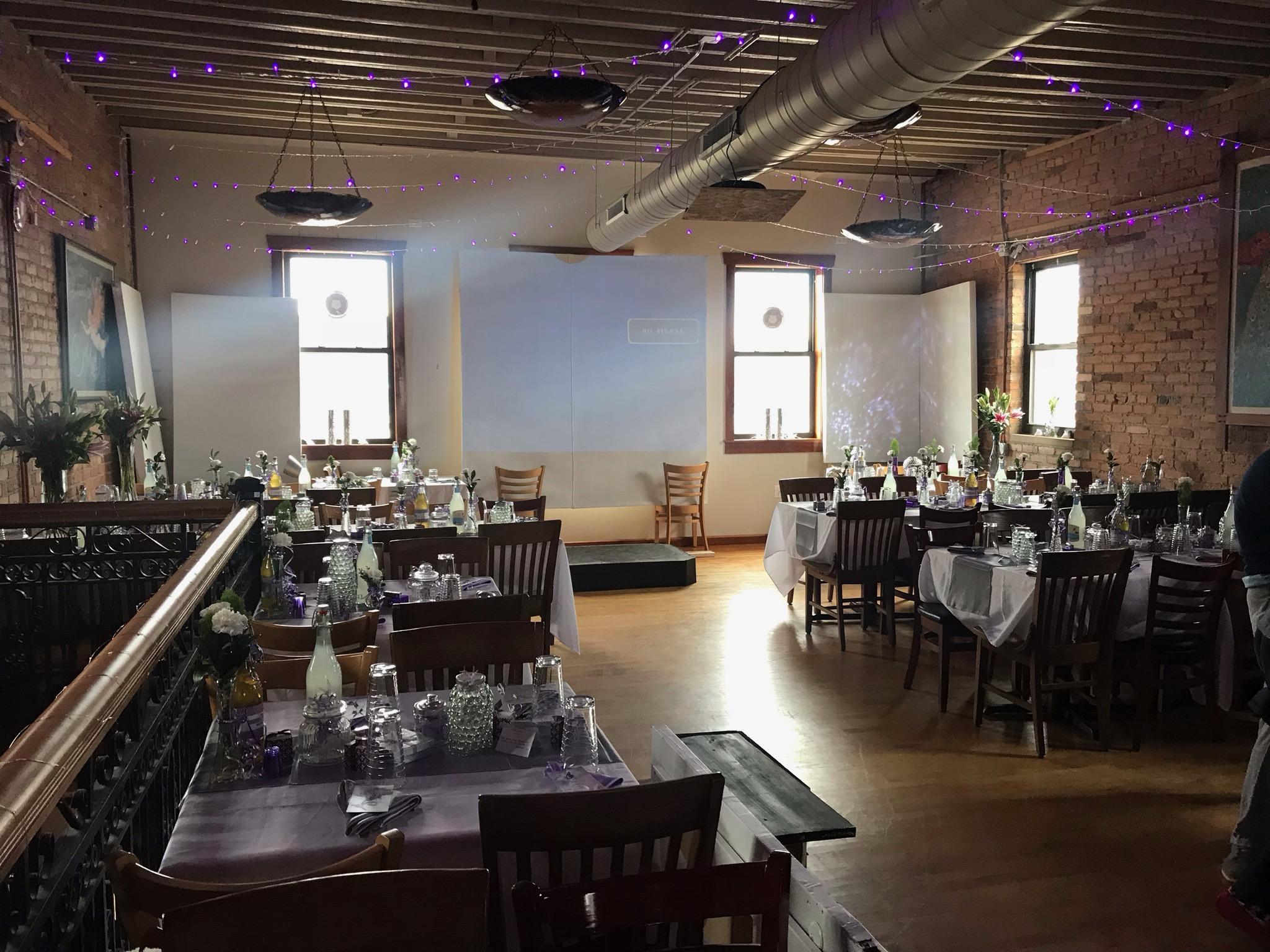 Meticulously restored to the original brickwork with exposed ductwork and stained glass windows, the venue is the perfect marriage of industrial and vintage style. Furnished with a handcrafted bar and antique artwork, this space is ideal for rehearsal dinners, intimate weddings, birthday parties and business meetings.