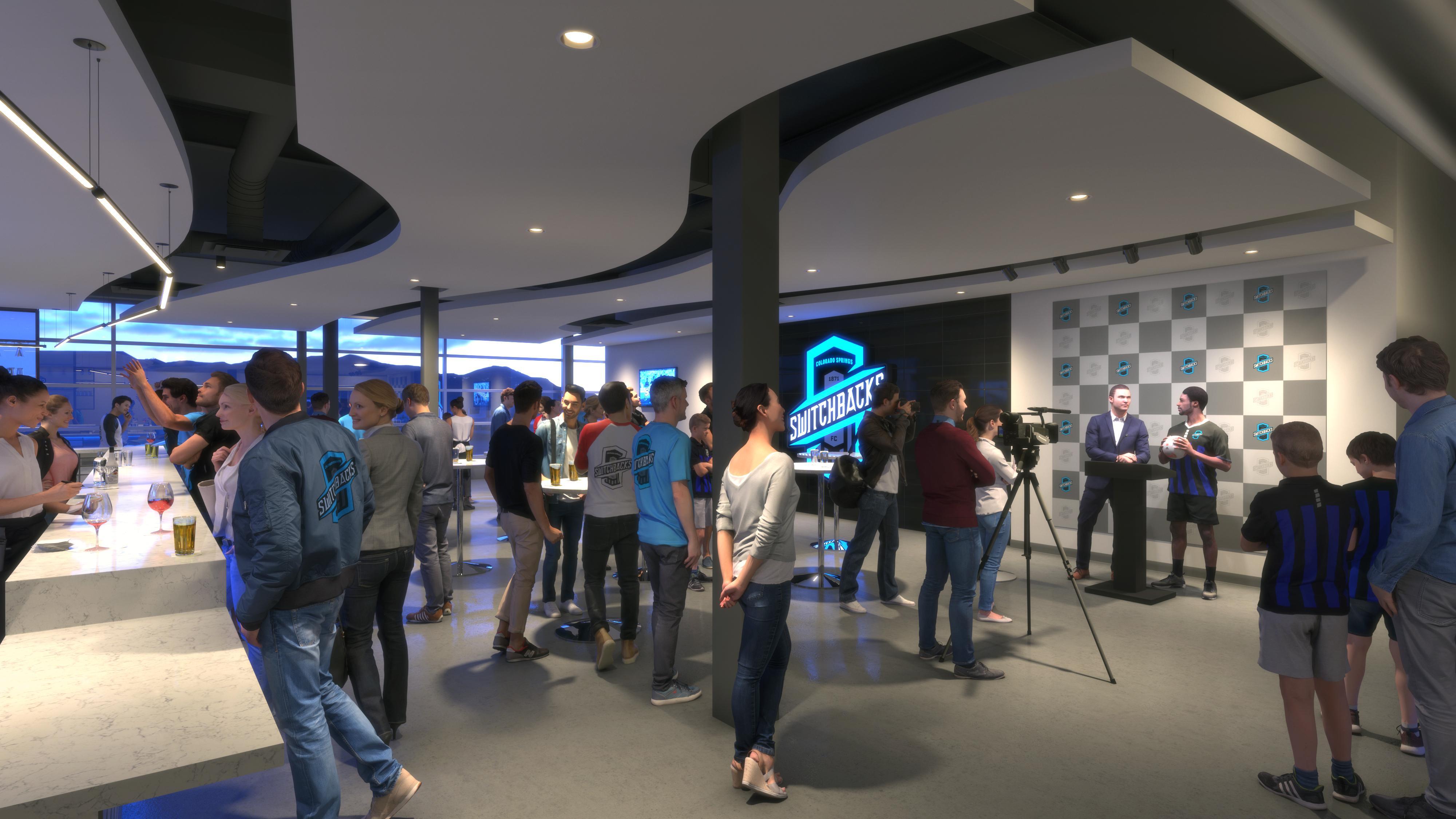 Switchbacks Entertainment is a sports center and modern wedding venue located in Colorado Springs, Colorado. The stadium is home to the professional soccer team, the Colorado Springs Switchbacks Football Club. It offers a variety of versatile event spaces and welcomes gatherings of 20 to 350 people. The attentive administration here is prepared to go above and beyond in making each couples’ celebration an unforgettable experience.