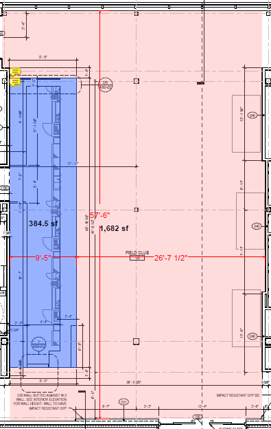 - Seven, 12-foot high rolling garage doors on the east side - Floor to ceiling windows on the west side - 4, wall-mounted TV's - Built-in bar - Direct access to elevator inside the room