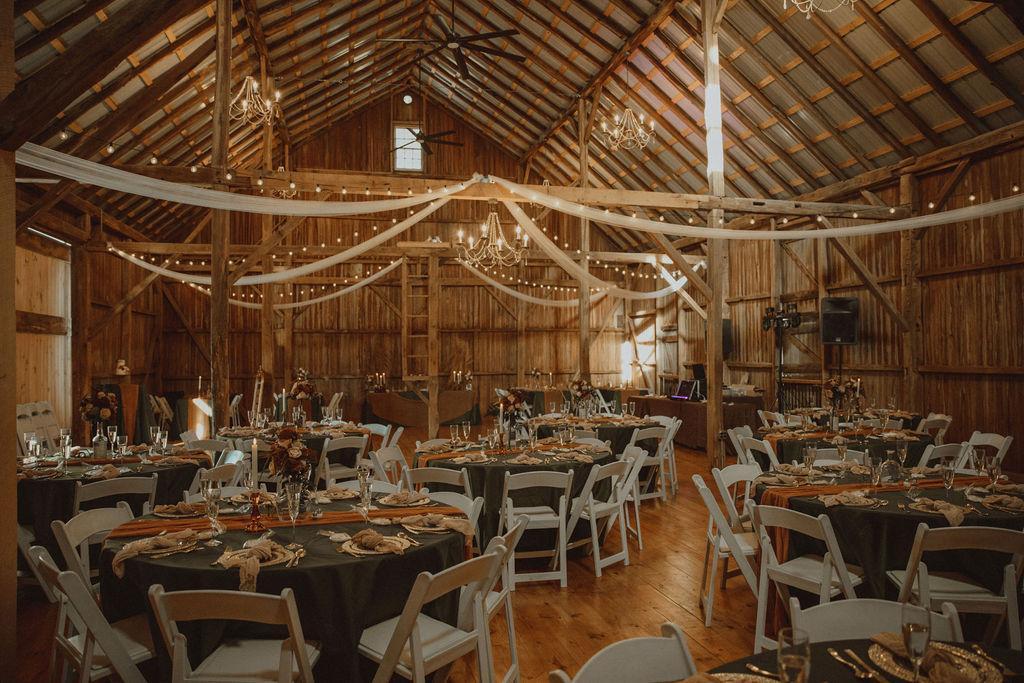 Well Wishes Farm is a barn venue offering 2 full days of use with each rental. The air-conditioned farmhouse, built in 1855, is included and has separate spaces for the bridal party and groomsmen to get ready. The barn is not climate controlled, but fans, open doors, and a breeze are utilized in summer months and portable heaters in cooler months. Rental of the venue is a flat fee and includes taxes, use of chairs, 5' round tables, 8' rectangular tables, cocktail tables, whiskey barrels, patio heaters, bars, refrigerators/freezers, and a bronze arch. Well Wishes Farm, endeavors to allow couples to create the custom wedding of their dreams in a non-hurried fashion. We provide the backdrop, and couples achieve their vision with vendors of their own choosing. New for the 2025 season are 2 handicapped-accessible bathrooms that are steps from the barn. Don't hesitate to contact us. We would love to provide a tour and get you started on your dream wedding.