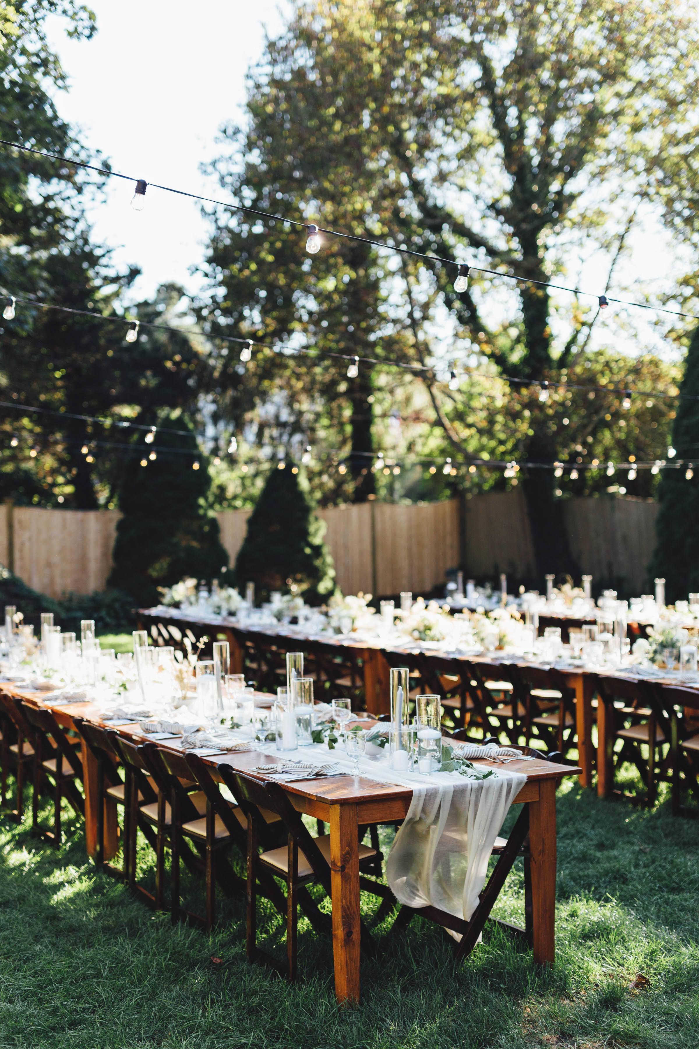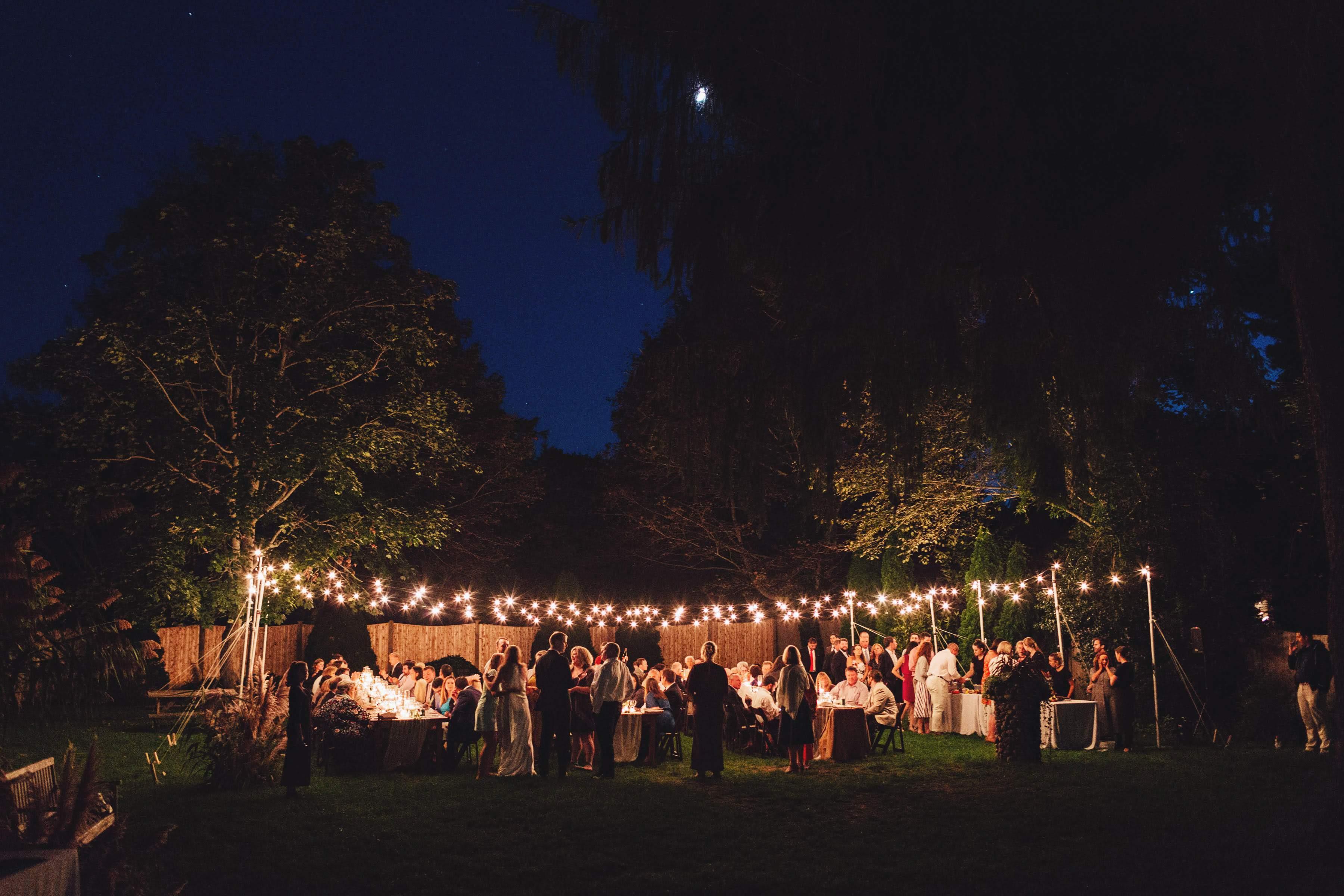 Beautiful backyard garden with lush green lawn, stately trees and manicured gardens. Our cobblestone patio offers the perfect location for post ceremony cocktails. The yard can accommodate a tent up to 50' x 60' in size. Ample electricity for all sound and lighting needs.