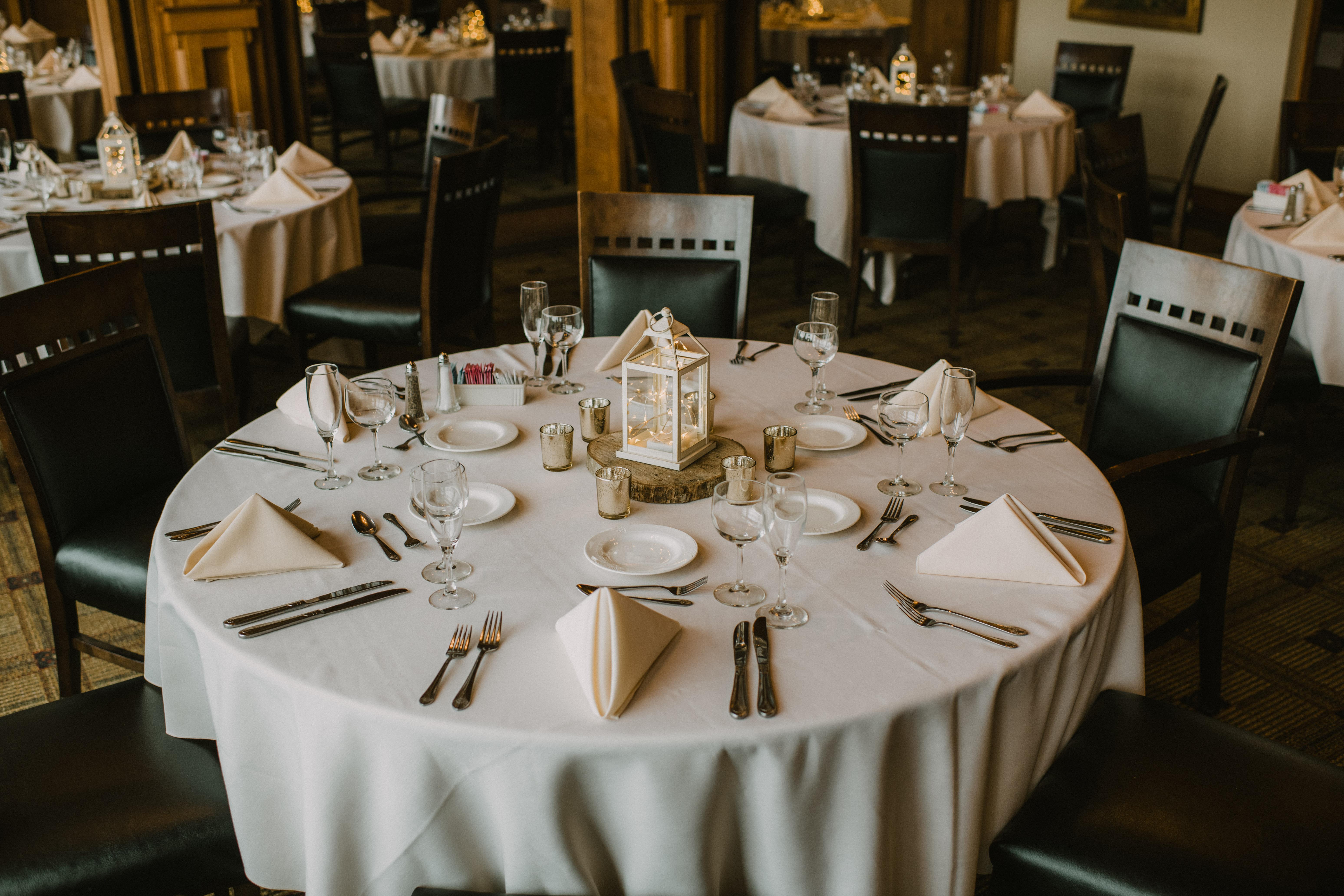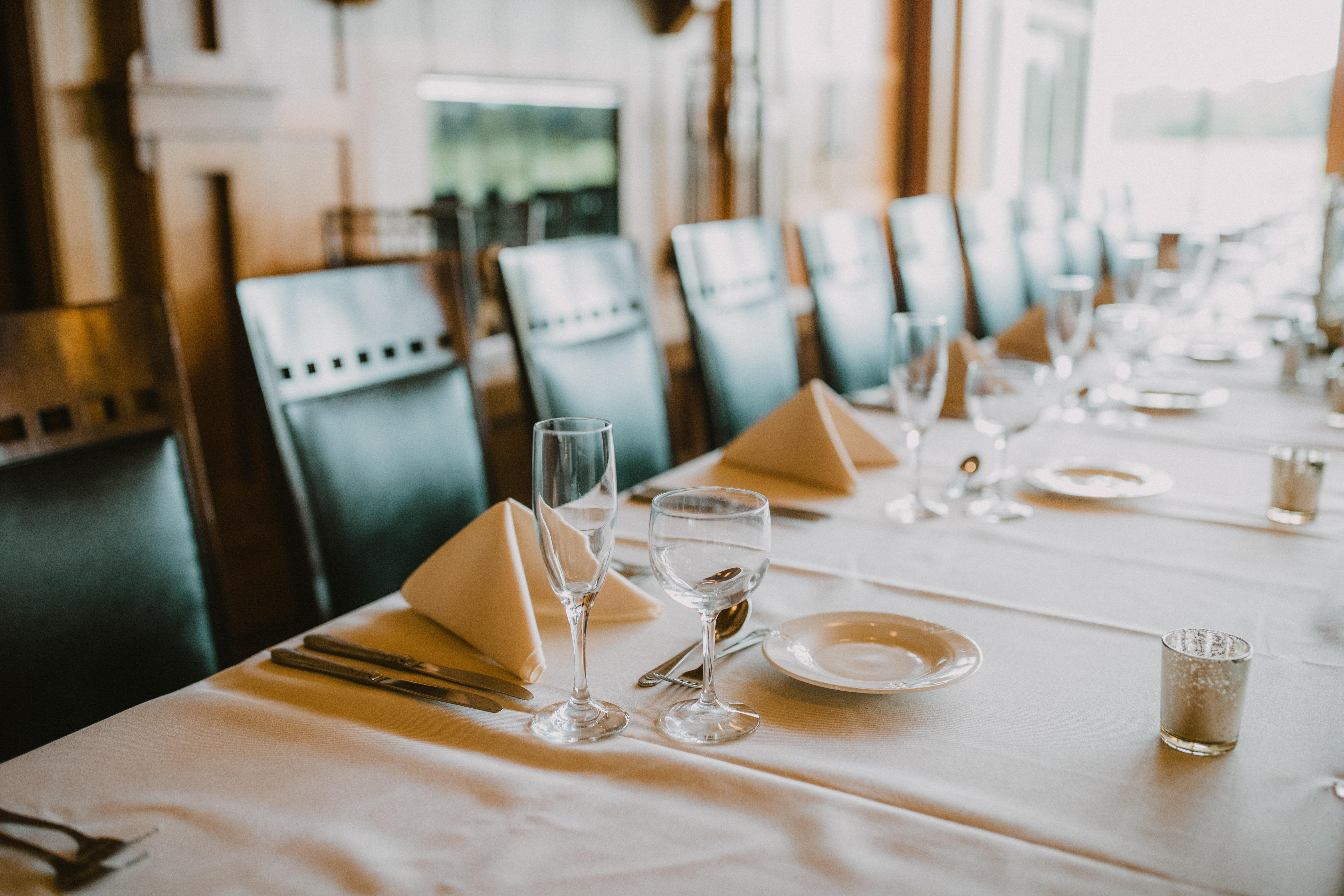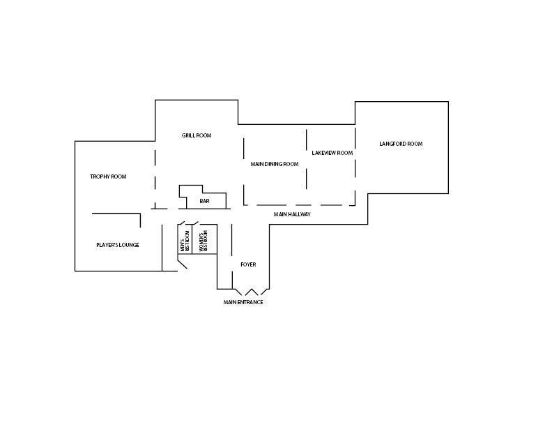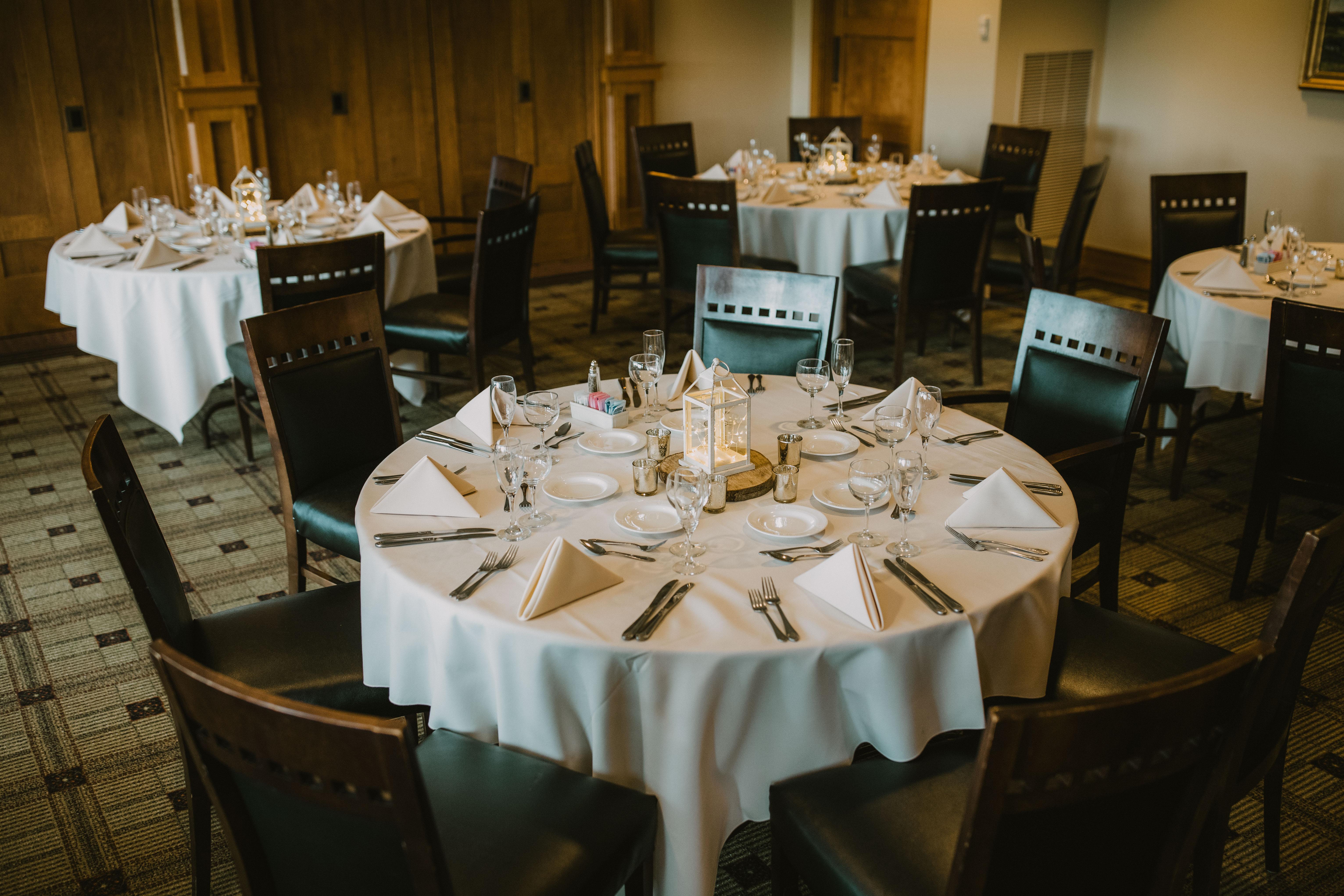 The Main Dining Room is our largest dining room, and it is suitable for casual and formal dining, and seats up to 90. The Main Dining Room is used most often in combination with the Lakeview and Langford Room for wedding receptions for a seating capacity of 250. This room is also perfect for large parties, conferences, and meetings. One side of this room features a wall of windows that overlooks the golf course.
