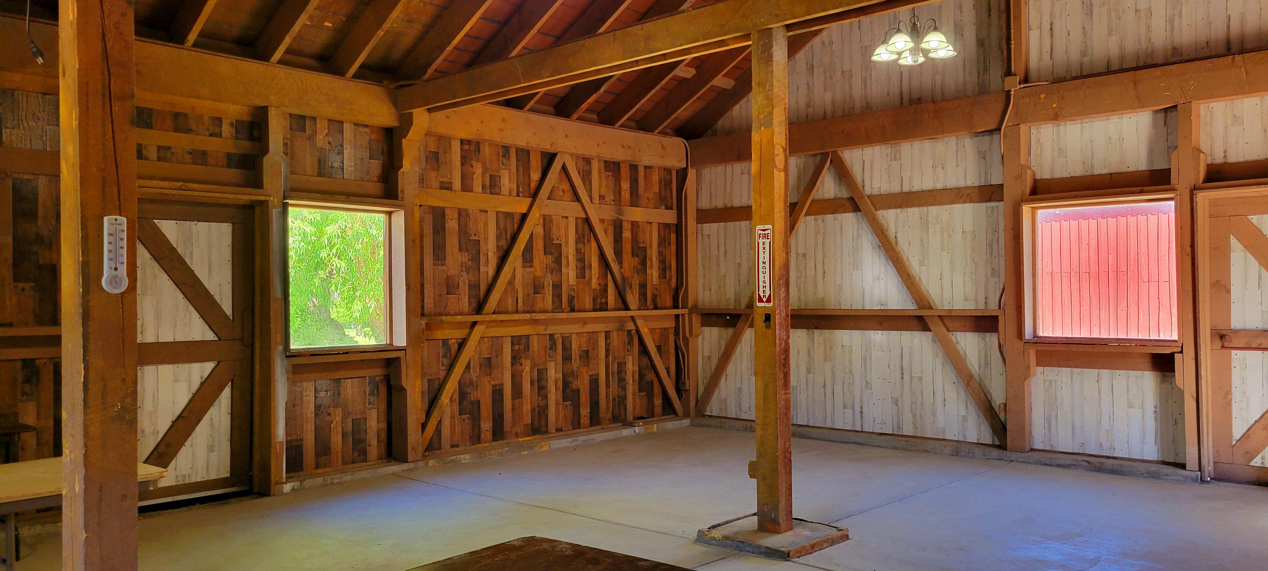 This space, located just outside the Reynold's Ranch Hay Barn and the Ore Mill house is great for a surplus of people. This space can be rented in conjunction with both the Hay Barn and/or the Ore Mill House for $50 an hour, or can be rented on its own for $50 per hour during museum hours or $100 per hour outside of museum hours with a minimum rental time of three hours. This open space features 10 red picnic tables and is surrounded by the natural beauty of our campus.