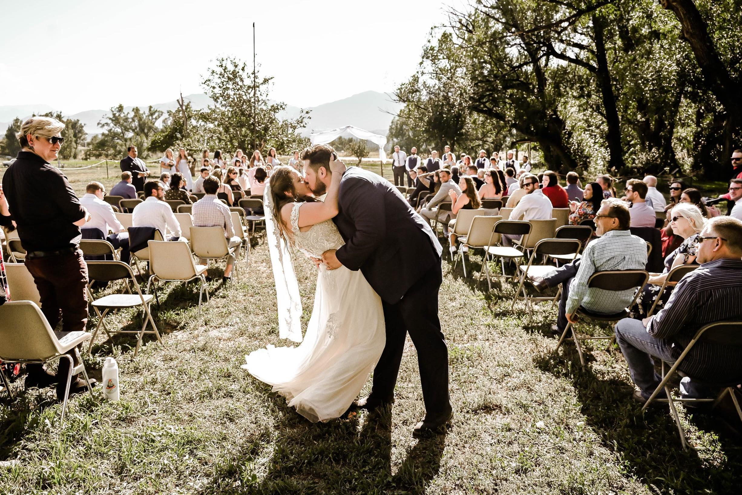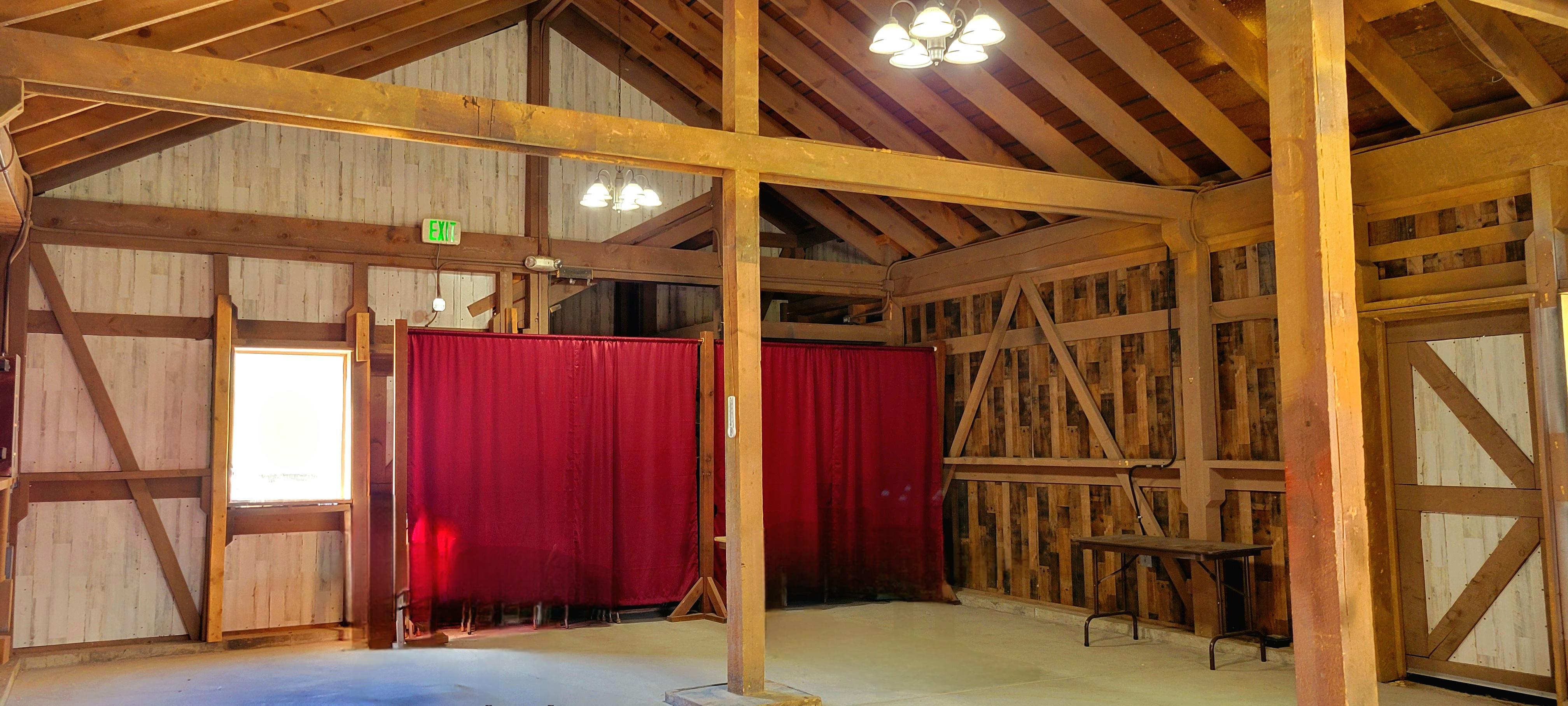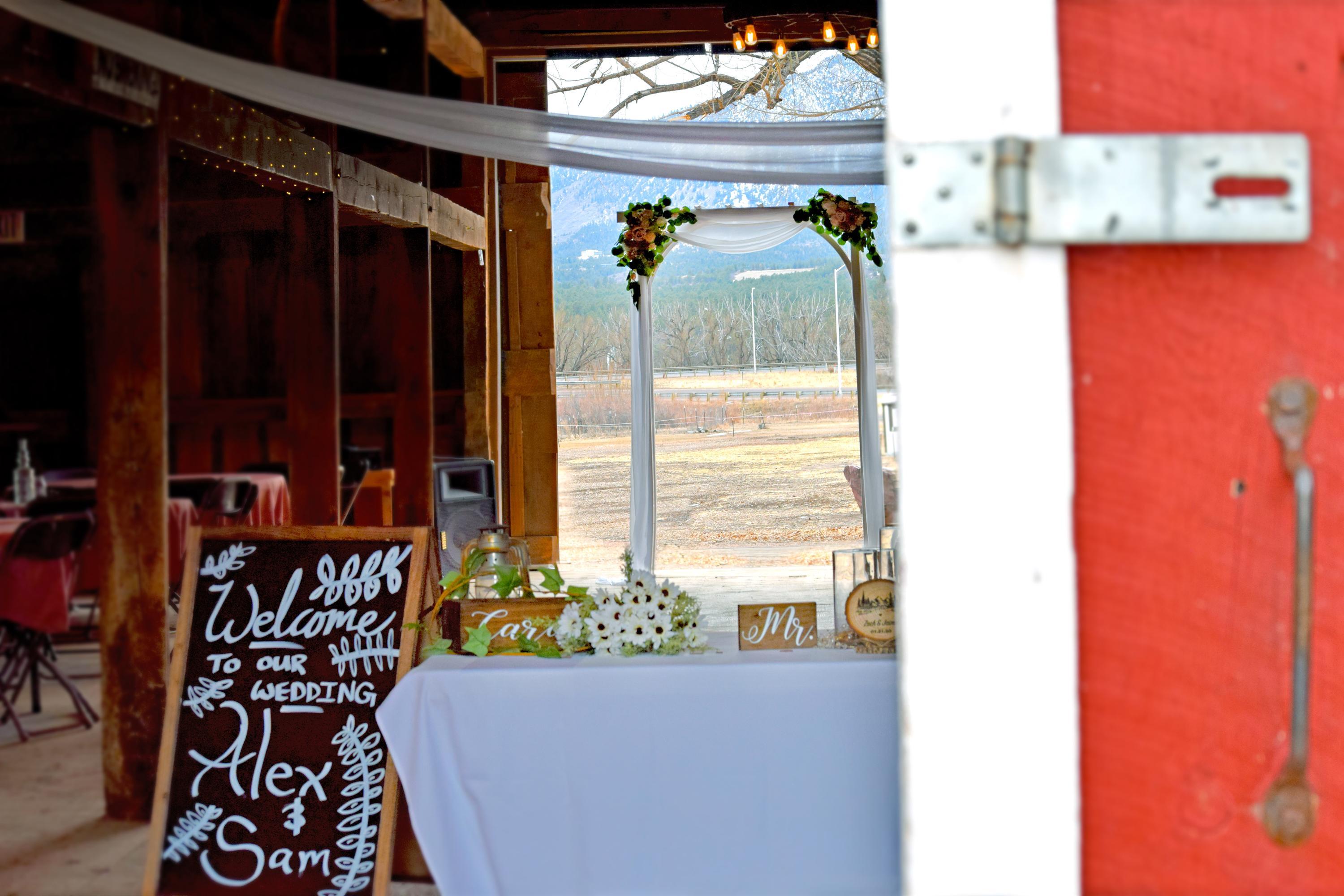 This barn, built in 1893 & recently renovated, offers a spectacular space for weddings & receptions up to 150 guests. This space features vaulted ceilings with wooden beams & wagon wheel chandeliers. Two barn doors located at both ends of the barn can be opened for an indoor-outdoor experience. The west facing barn doors offer a spectacular view of the Front Range. Also featured is a custom wood-top bar located in the southeast corner of the barn which is perfect for serving food and libations.