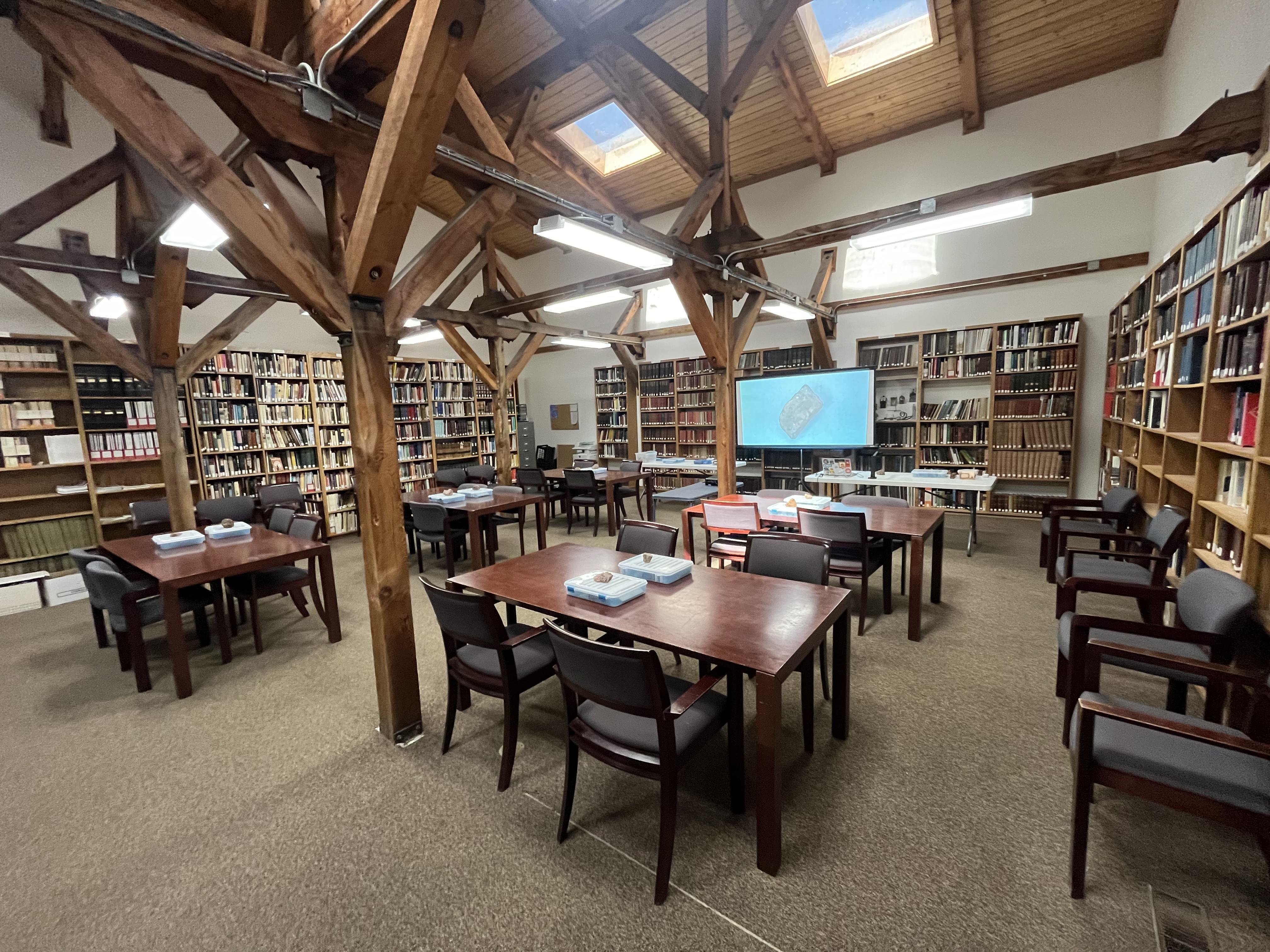 -ADA accessible -5 wooden tables and chairs to seat 30 -8ft rectangular tables available for rent at $5 each -5ft round tables available for rent at $2 each -Museum restrooms located just outside library