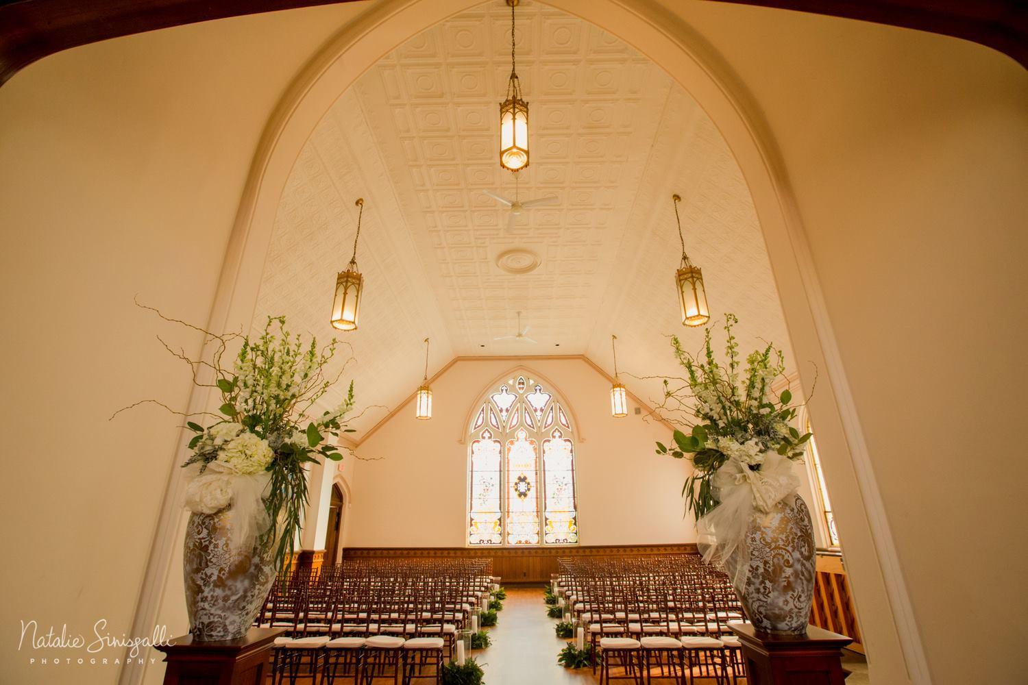 It all starts with our light-filled chapel, with its gorgeous stained-glass windows, elegant mahogany chiavari chairs, and 100-year-old pipe organ.