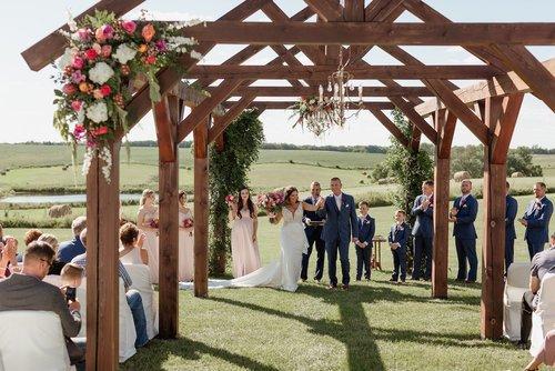 Every detail, from the structure and materials of the barn, to the amenities available, to the views that surround the venue were selected with the intention of hosting beautiful celebrations. Once you come through the doors, you will begin to see the time and research that has been put into creating Whippoorwill Acres. Our Amish-built, all-wood, timber frame barn is aesthetically pleasing with its Colorado Spruce timbers, high vaulted ceiling, and detailed accents. The main floor of the barn includes the indoor wedding area, groom's den, caterer's kitchen, restrooms, kid's playroom, and a full-service Bar. The upper-level provides a viewing and seating loft, and a lovely, spacious Bridal Suite. We’d love to invite you to our farm to celebrate your elegant Missouri countryside wedding.