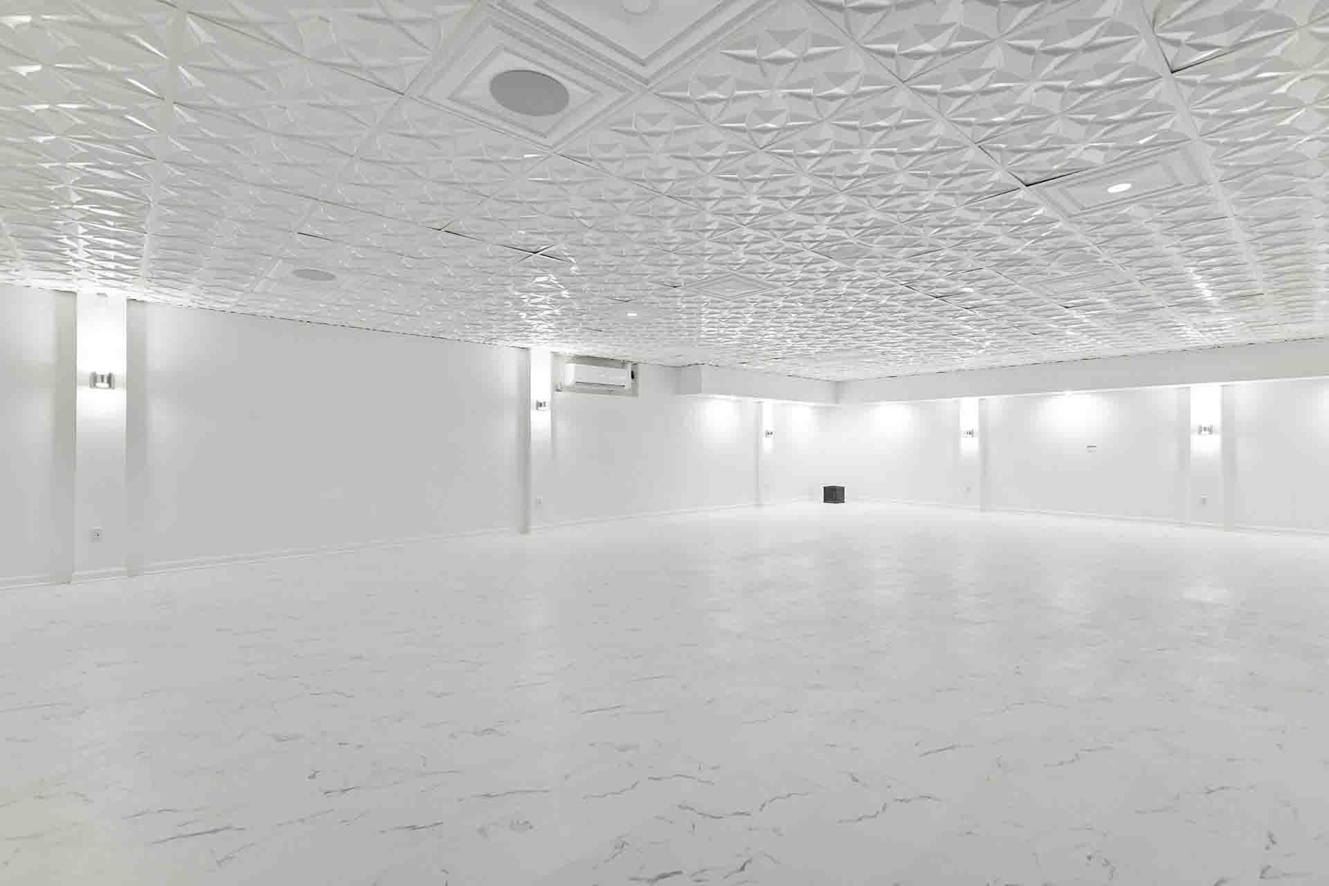 The 2,500 square-foot outdoor terrace is perfect for celebrations, featuring built-in speakers to keep the music flowing for your dance party. If you prefer a more relaxed atmosphere, take a seat on the balcony above the terrace or unwind in a rocking chair on the peaceful balcony, soaking in the serene surroundings. The spacious 2,000 square-foot reception hall comfortably accommodates over a hundred guests, making it ideal for both intimate gatherings and larger celebrations. In addition to the main areas, the estate includes a 2,000 square-foot basement and a paved 2,400 square-foot patio, providing additional versatile spaces for your event.