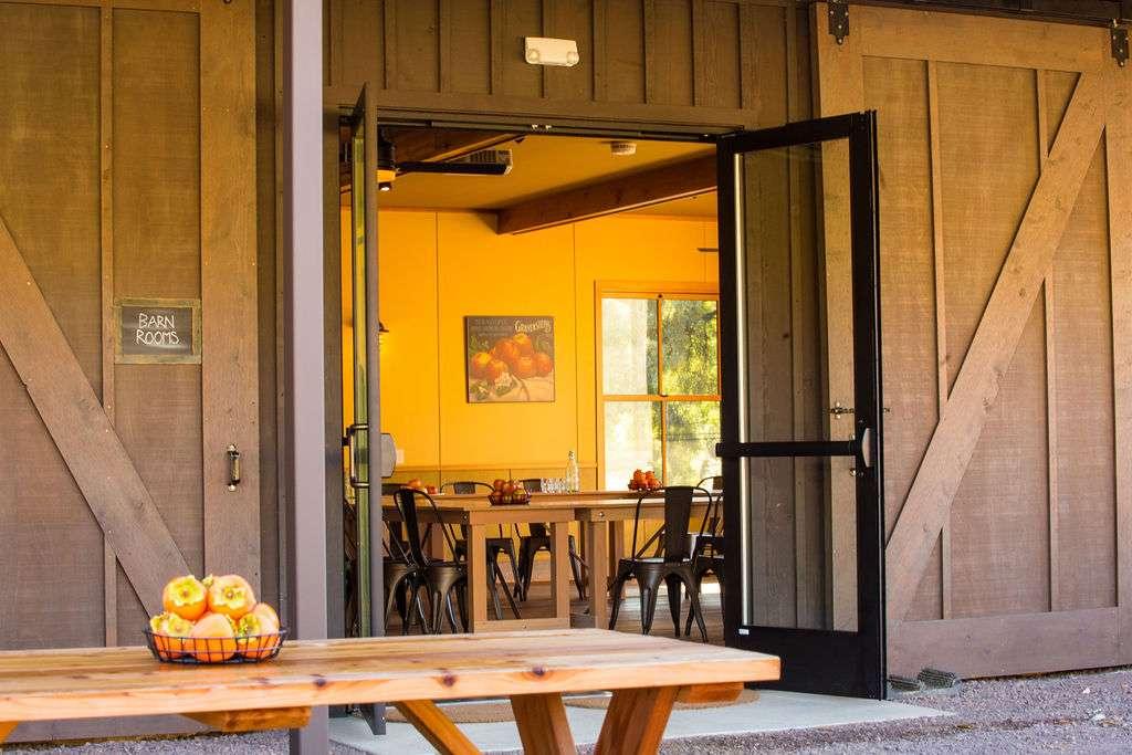 The barn's main hall can be used for dancing, wedding receptions, Friday night talent shows, and as a gathering space for DIY flower arranging and Sunday goodbye breakfasts. It is a perfect backup ceremony site in the event of rain. The main hall has also been used for smaller, intimate indoor weddings and celebrations. The outdoor, shed roof area of the barn has been used for cocktails, dinner and dessert buffets, casual seating, photo booths, and more. It can be enclosed offering seating for outdoor dining for 50-60 guests.