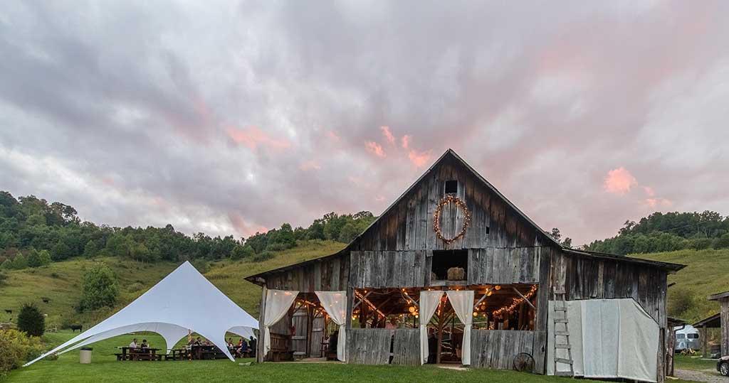 Our venue is beautifully rustic on 105 acres of pure privacy, complete with bubbling springs, a fish pond, cow fields, personal hiking trails, and vintage farm equipment, all surrounded by delightful wild flowers and tree-topped mountainscapes. This peaceful, open setting is the perfect place for your farm wedding dream to come true, as simple or decorative as you wish, and allows you to work with planners, vendors, caterers, etc. of your choice. The rolling green property and all we have to offer is the perfect backdrop for unique and beautiful photos.