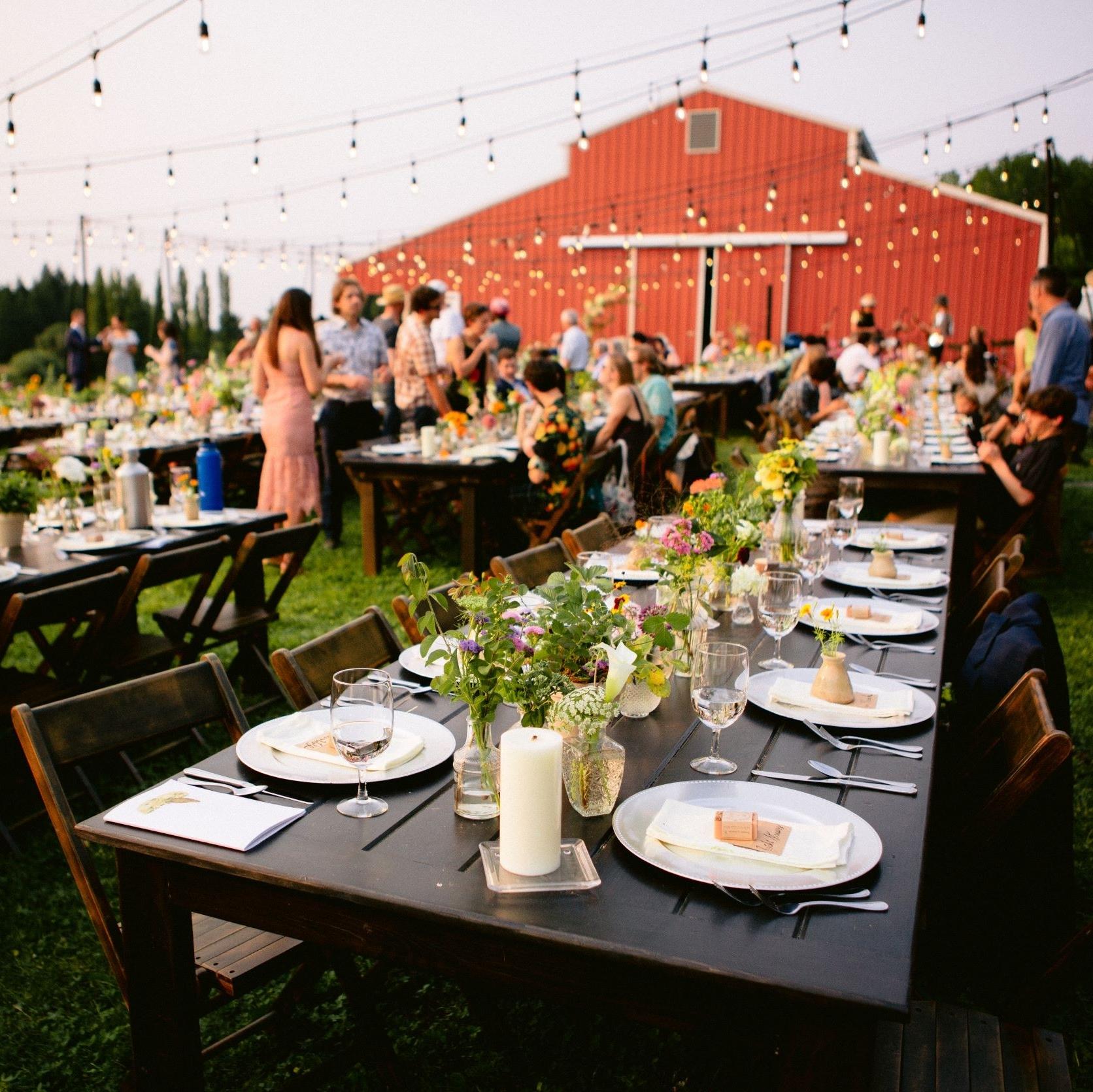 -Exclusive access to farm grounds -Full weekend access: setup Friday, cleanup Sunday -Outdoor ceremony site -Lawn for dining + reception -Barn for dancing, featuring a dance floor, rustic chandelier, string lighting, and furnished upstairs loft -Luxury 6-stall restroom trailer -Overnight lodging for wedding night in: The Cottage (sleeps 4-6), The Farmhouse Suite (sleeps 2-4) -Ample parking for up to 125 vehicles -Gardens and animals -Farm Store -Onsite Sauna -Outdoor Fire Pits