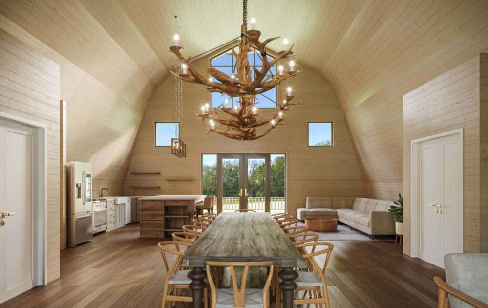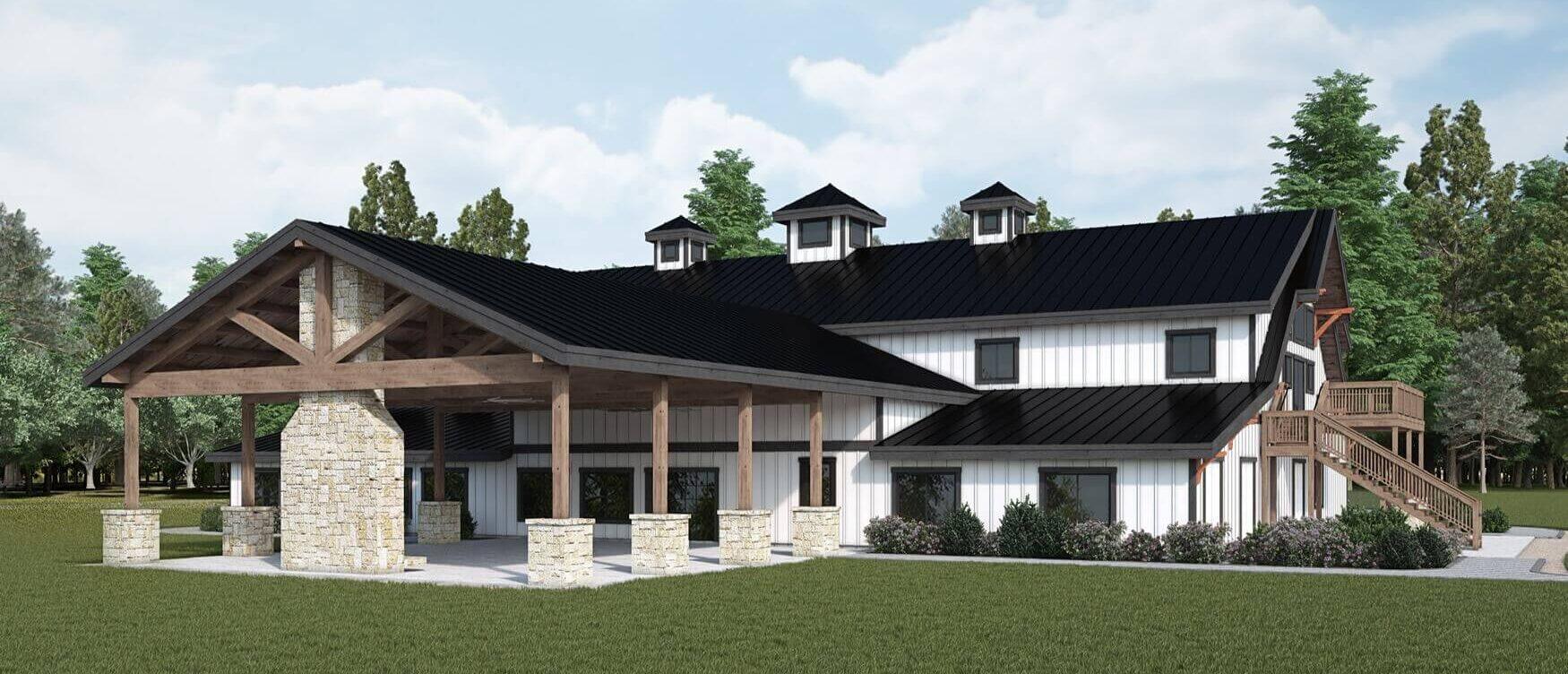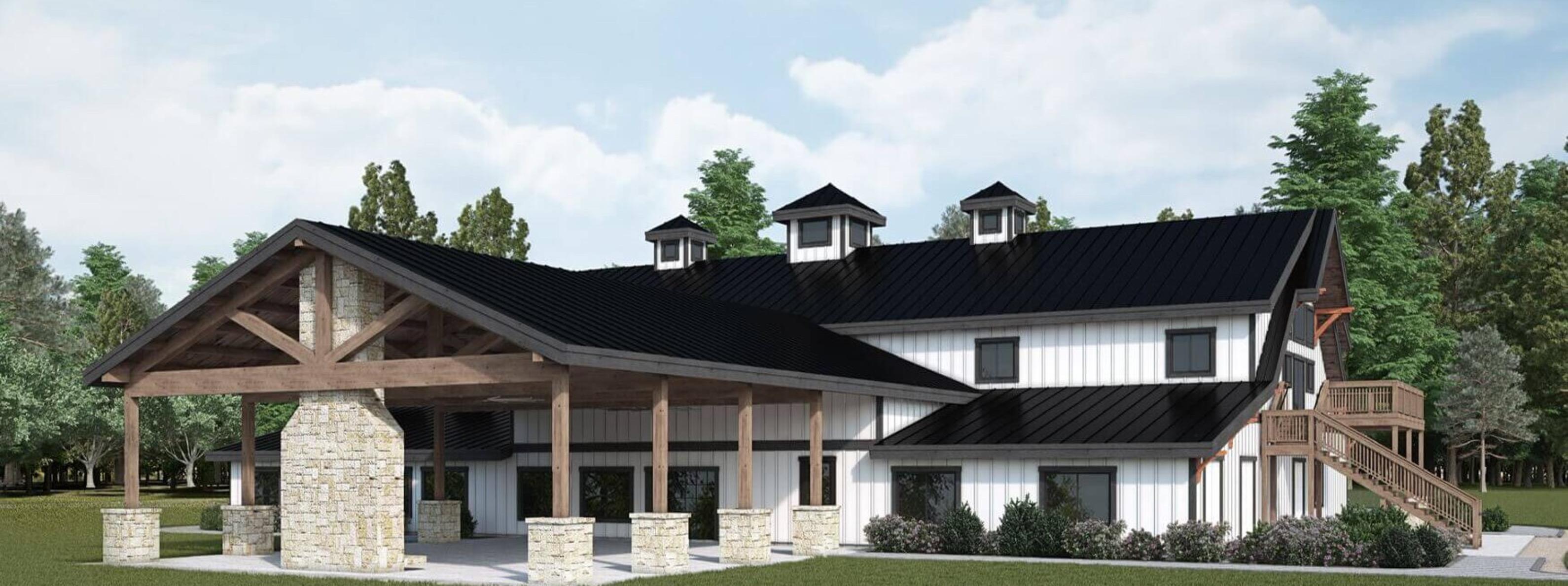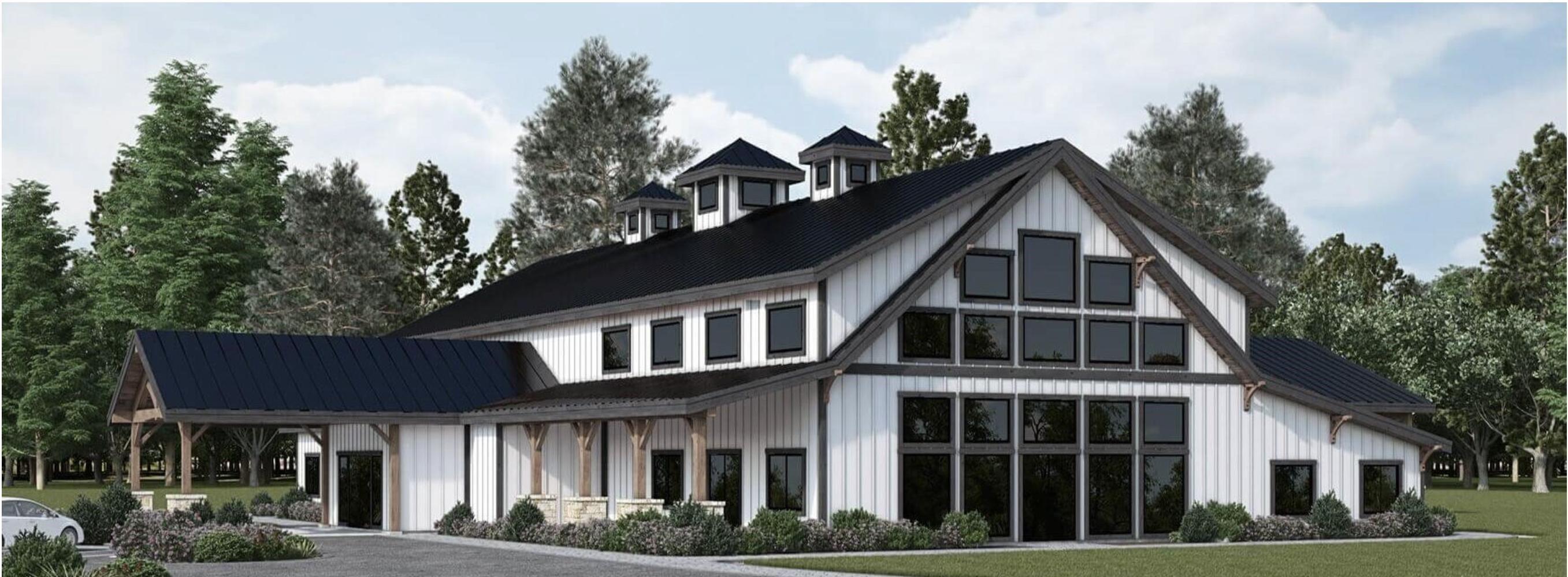 Spread across 14,000 square feet, the Main Barn offers many premium amenities to accommodate up to 350 guests. Within our Main Barn, you will discover a grand, open space of 35-foot ceilings, white wood, a brick accent wall, and exposed timber beams. Hanging elegantly over two spacious dance floors are a pair of twinkling crystal chandeliers, complimented by the abundance of natural sunlight soaring through a wall of windows.