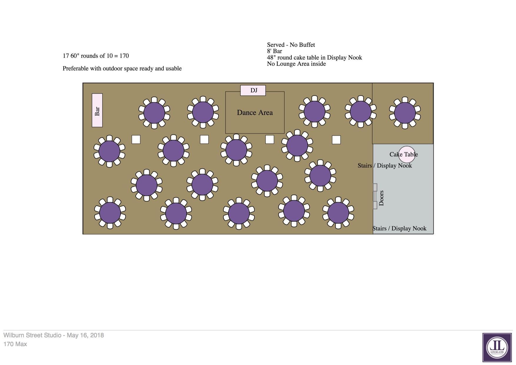 Wilburn Street Studio is a beautiful 3800 square foot indoor and 2500 square foot outdoor flexible rental space. Original walls, display nooks, display ledges, beautiful floors and a kitchen prep space make it easy to create your dream wedding.