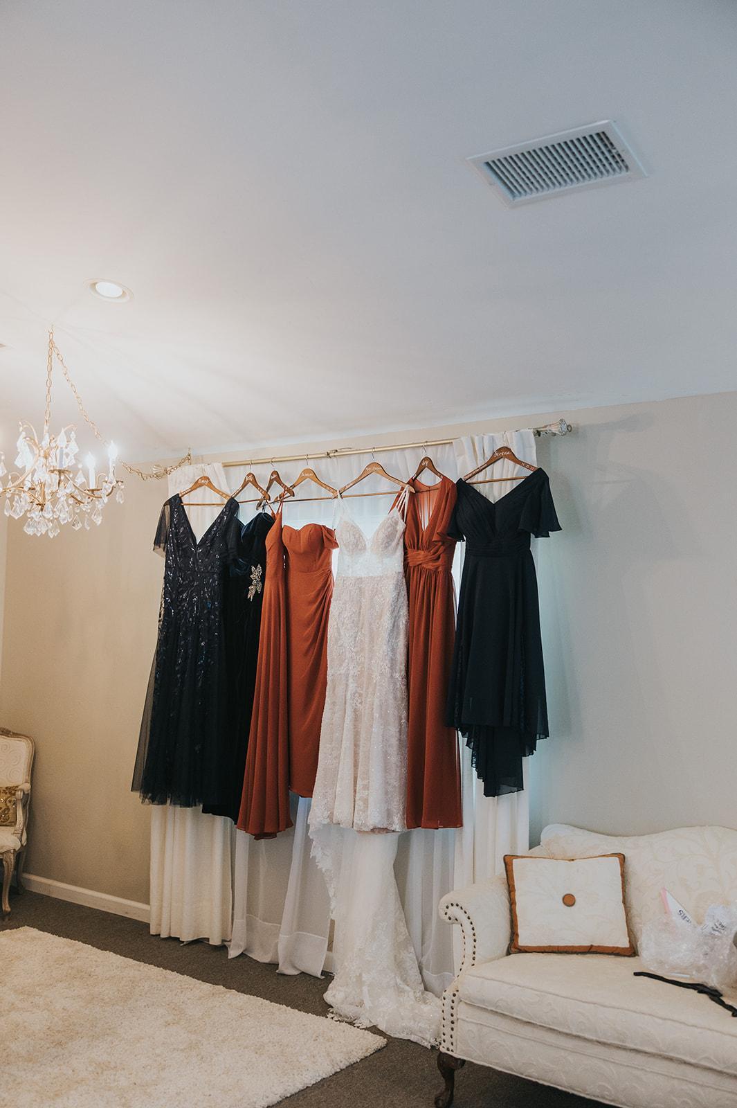 For our clients who get ready on site: two vintage chandeliers, three couches, vintage chairs, makeup station with chairs (3), bathroom.