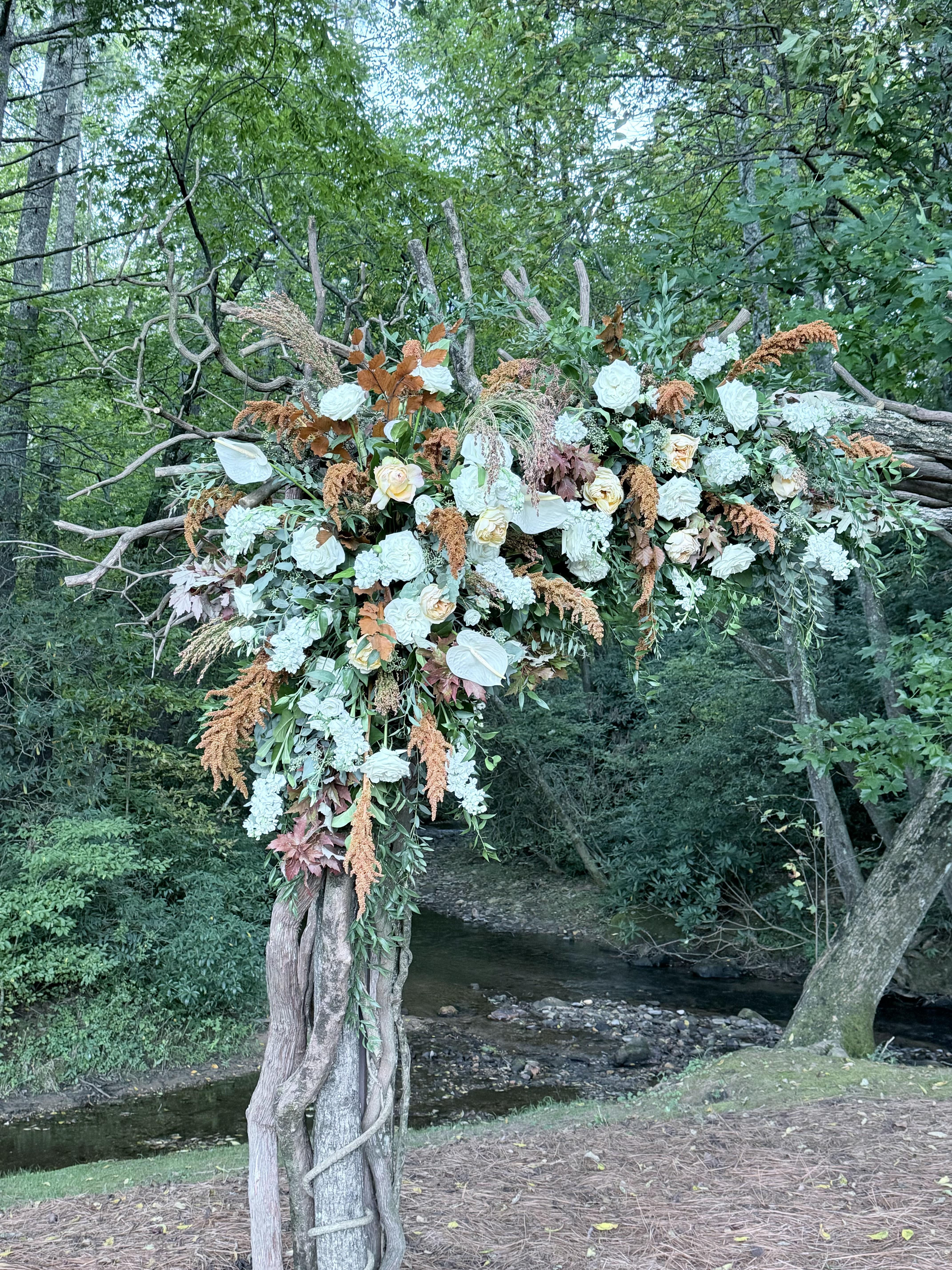 Imagine exchanging vows in the North GA mountains where 2 flowing waters merge into one. This stunning backdrop symbolizes unity & the merging of two lives into one. The gentle sounds of flowing water, the forest trees providing a natural shaded canopy & the peaceful meadows & mtns in the background create an intimate & romantic atmosphere that is unique in the world & perfect for a truly one of a kind elevated wedding experience. The ceremony spot itself sets Willow Creek apart from every other venue but this charming mountain farm also offers unparalleled amenities including a 4200 sq. Ft climate controlled modern barn style reception space, a 2,000 sq. pavilion, a plush modern chic bridal cottage, a fun grooms cabin on the creek, an instagram worthy fire pit surrounded by swings & a wonderful she-shed decor warehouse. You & your guests may even catch sight of a native Brook Trout swimming by or a baby Katahdin Lamb poking itâs head through the fence. All inclusive packages available