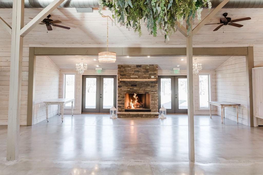 This venue is 4,000 sq. ft. climate controlled with a warming kitchen, ice maker, bar, ADA restrooms, chandeliers, fireplace.