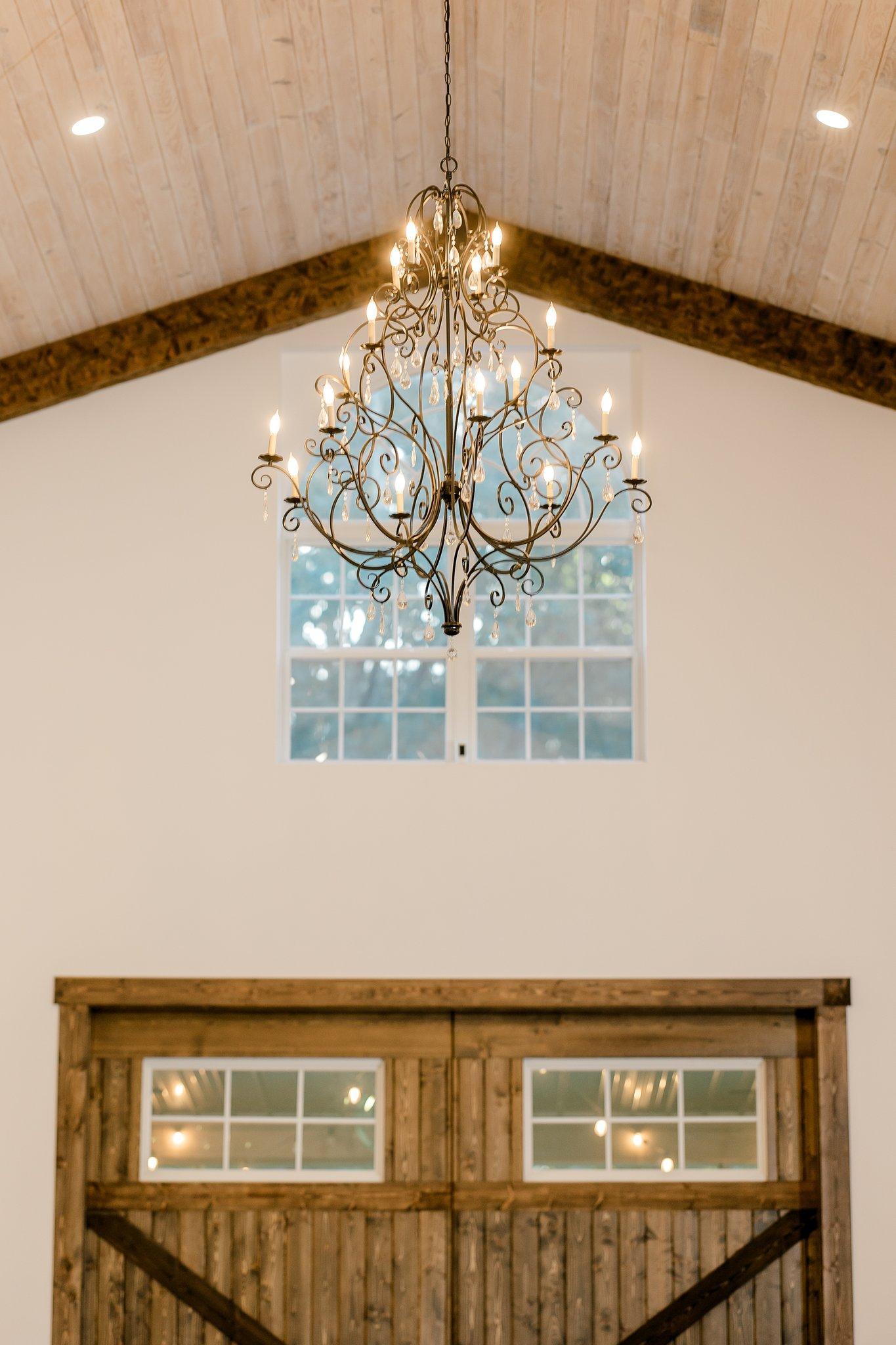 White 8ft round tables and chairs for up to 180 guests • White 6ft rectangular tables for serving, cake tables, display tables etc. • Access to 32 acres for photos • Large 6 ft. Swarovski crystal and iron chandelier lighting • Use of decorative string lighting and whiskey barrels • Cocktail hour back porch and lawn with games (Cornhole, Lawn Dice, and Giant Jenga)