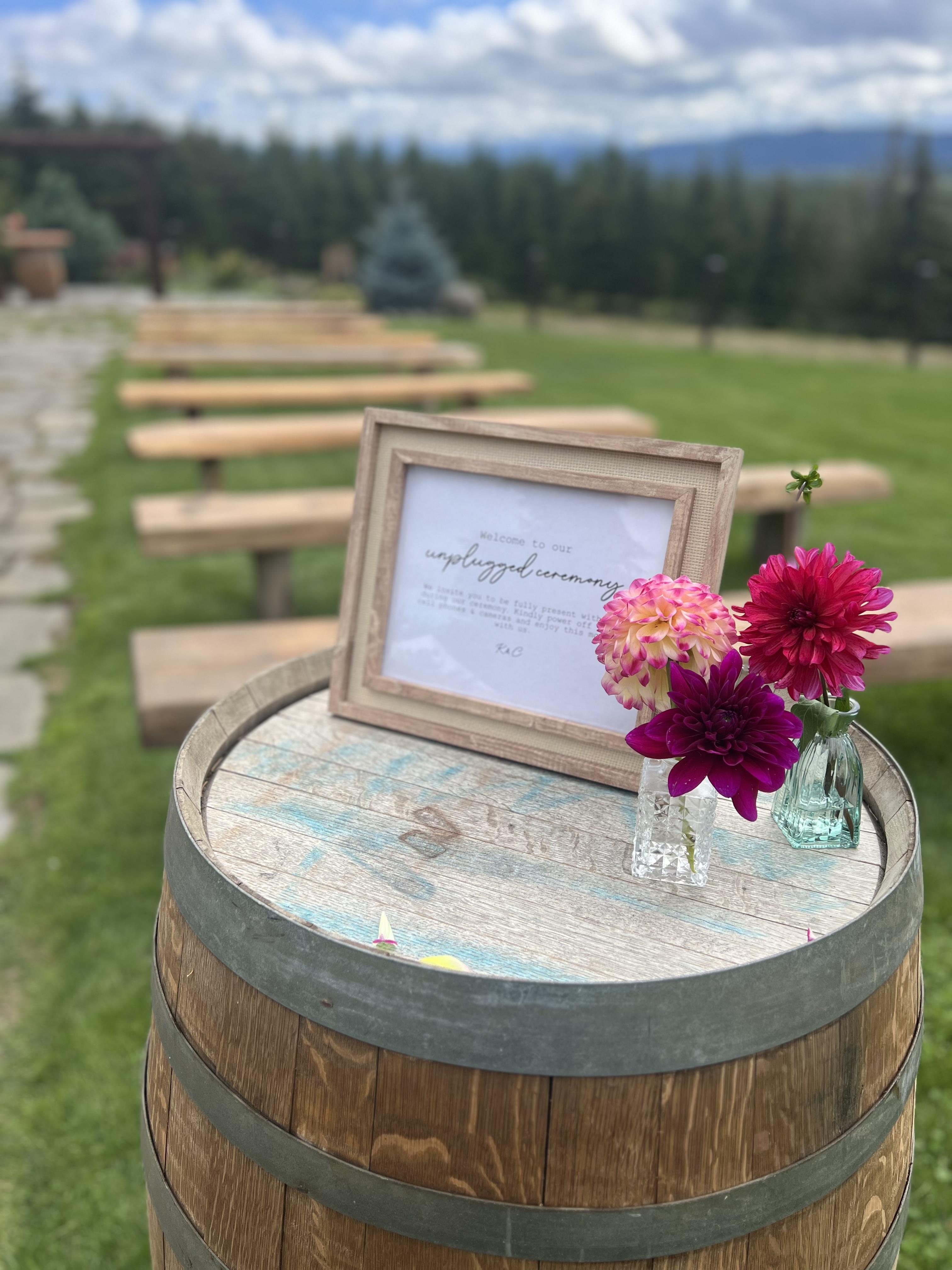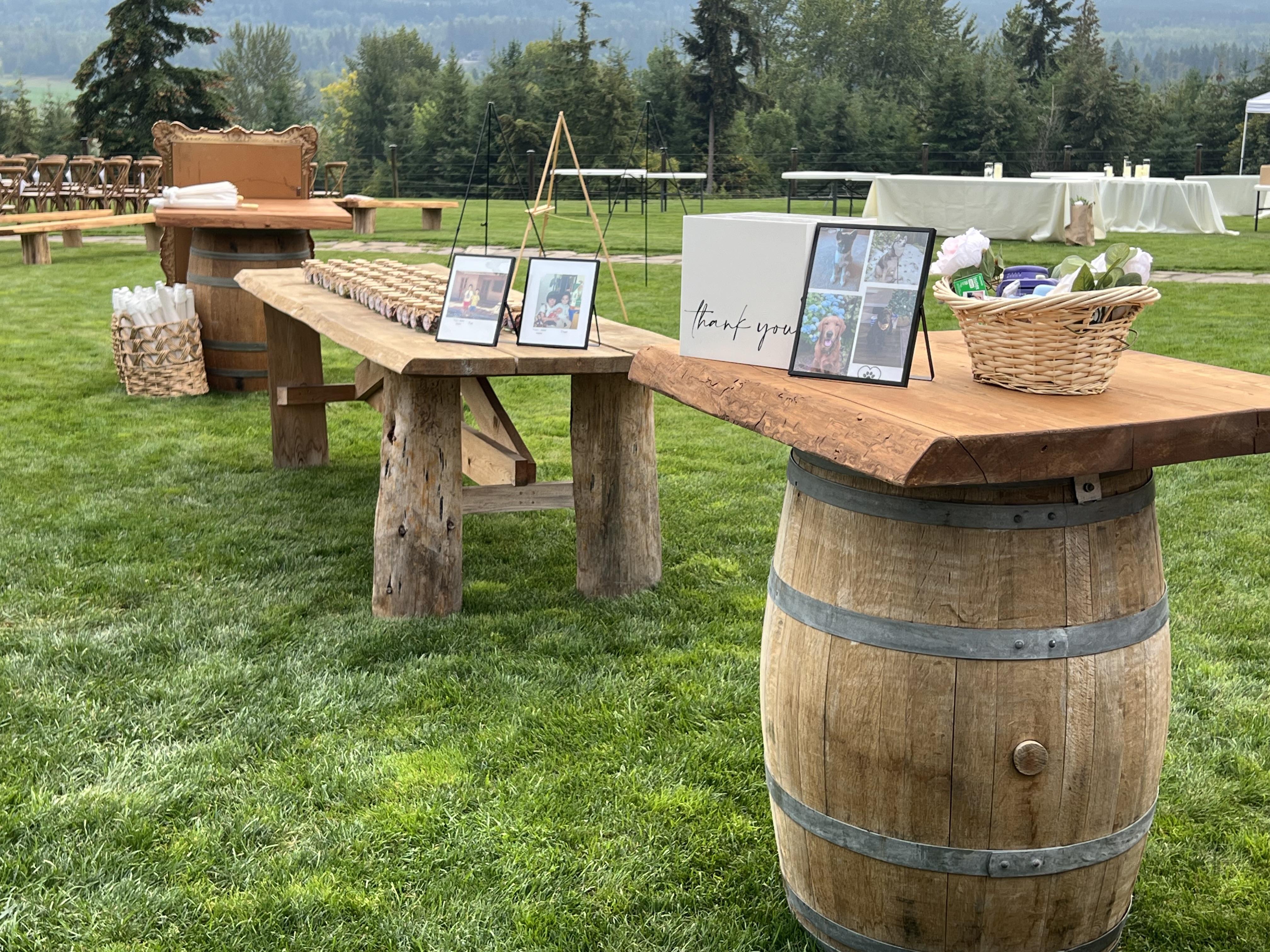 We picked this venue because of the beautiful views all around. Despite it being an August wedding, it rained throughout our rehearsal and leading up to our ceremony. The staff went above and beyond to ensure our day would be perfect, no matter the weather! They made set up seamless and gave ideas on how to organize things (super helpful to a bride who’s already making 100 decisions) It rained until an hour before our ceremony, our guests commented how the staff was wiping down benches to make sure seating was dry. It was great!! The bonfire was perfect because it was a chilly evening and made for great pictures. This venue is naturally beautiful, lots of spots for organic pictures. We were the first couple to use the big tent, great timing. The tent was huge and easily fit around 120 people, the lights strung throughout it are a nice touch! We brought an LED sign and Pat was kind enough to put on a wood slab post, making it much cuter! Another highlight was we were able to include our dog child in our special day. She was able to stay with us the entire weekend and we loved being able to include her. Everyone was just so kind and helpful. We’re so happy we picked this place. I recommend this to anyone and everyone, we cant say enough good things about it!