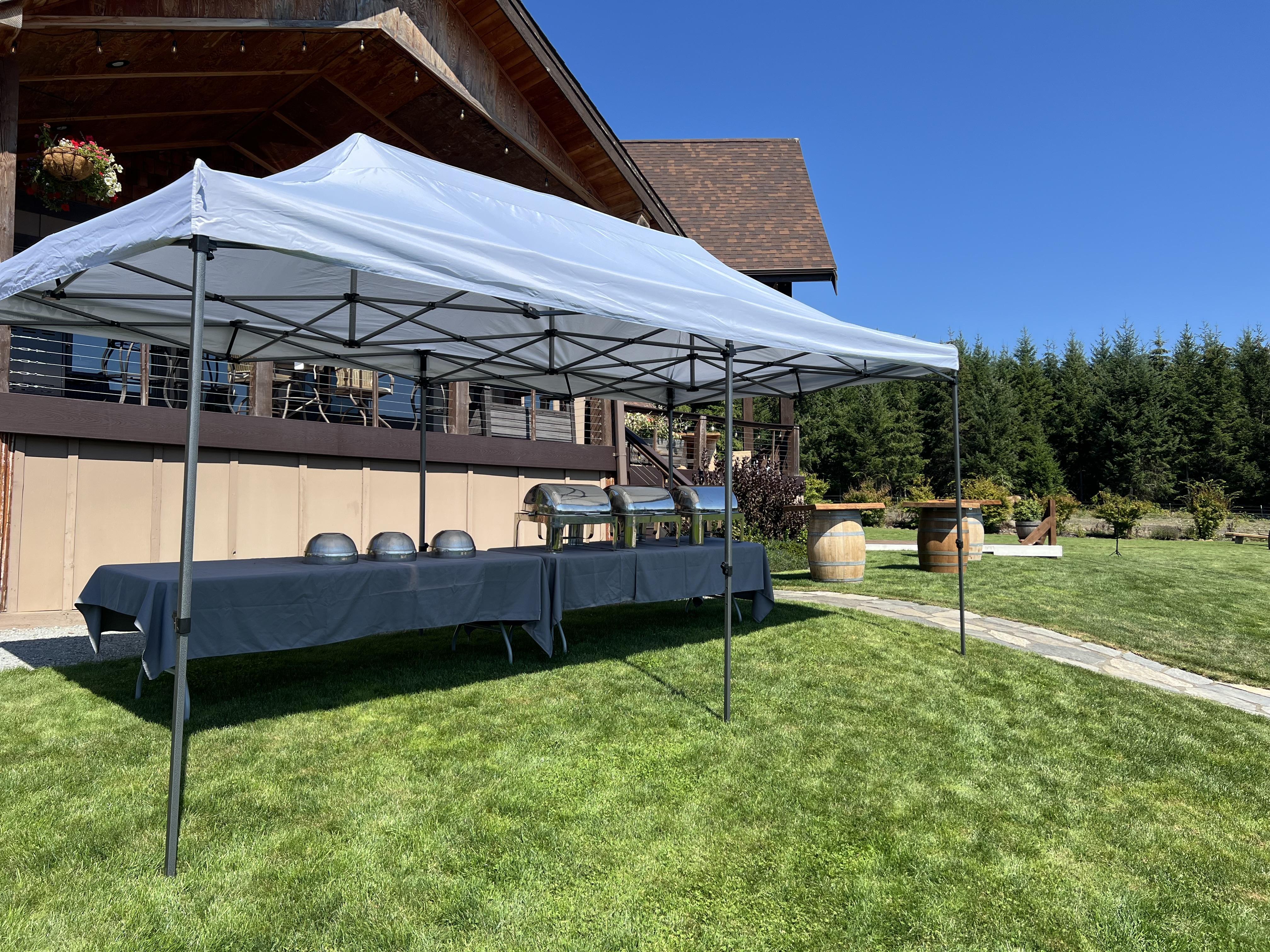 Optional wood dance floor 20 Round banquet tables - 60" 4 Pop-Up Canopies/Tents Fire pit with firewood