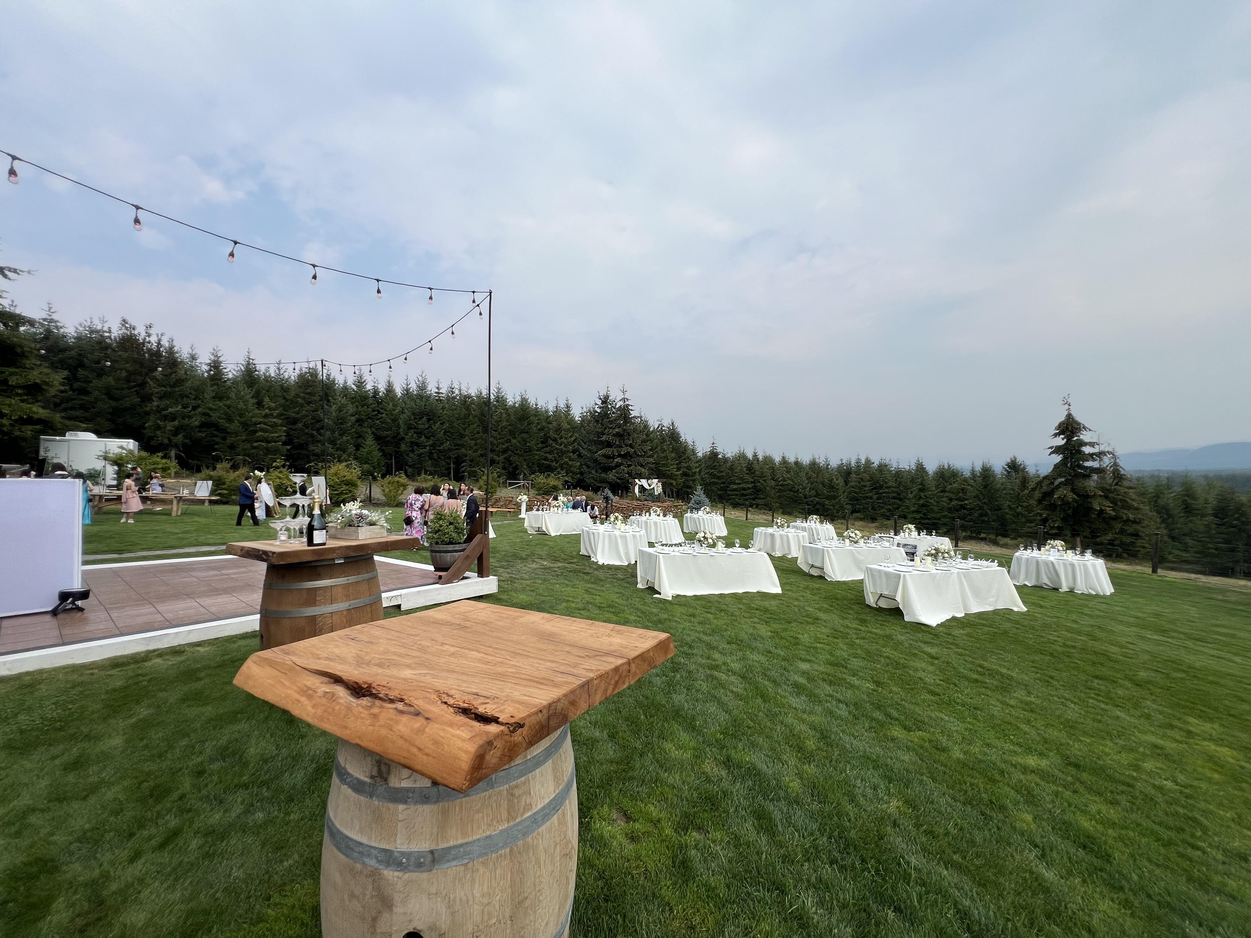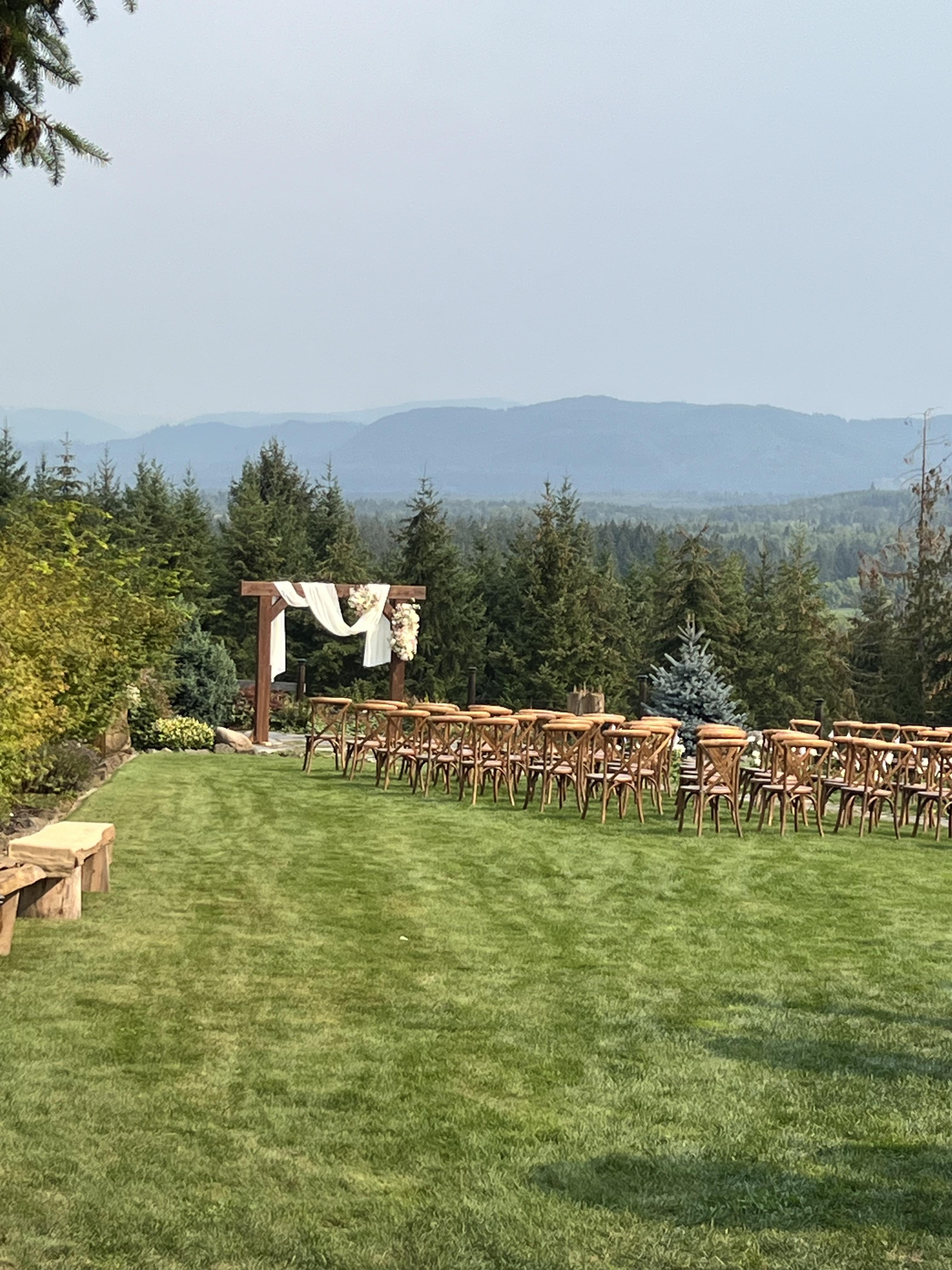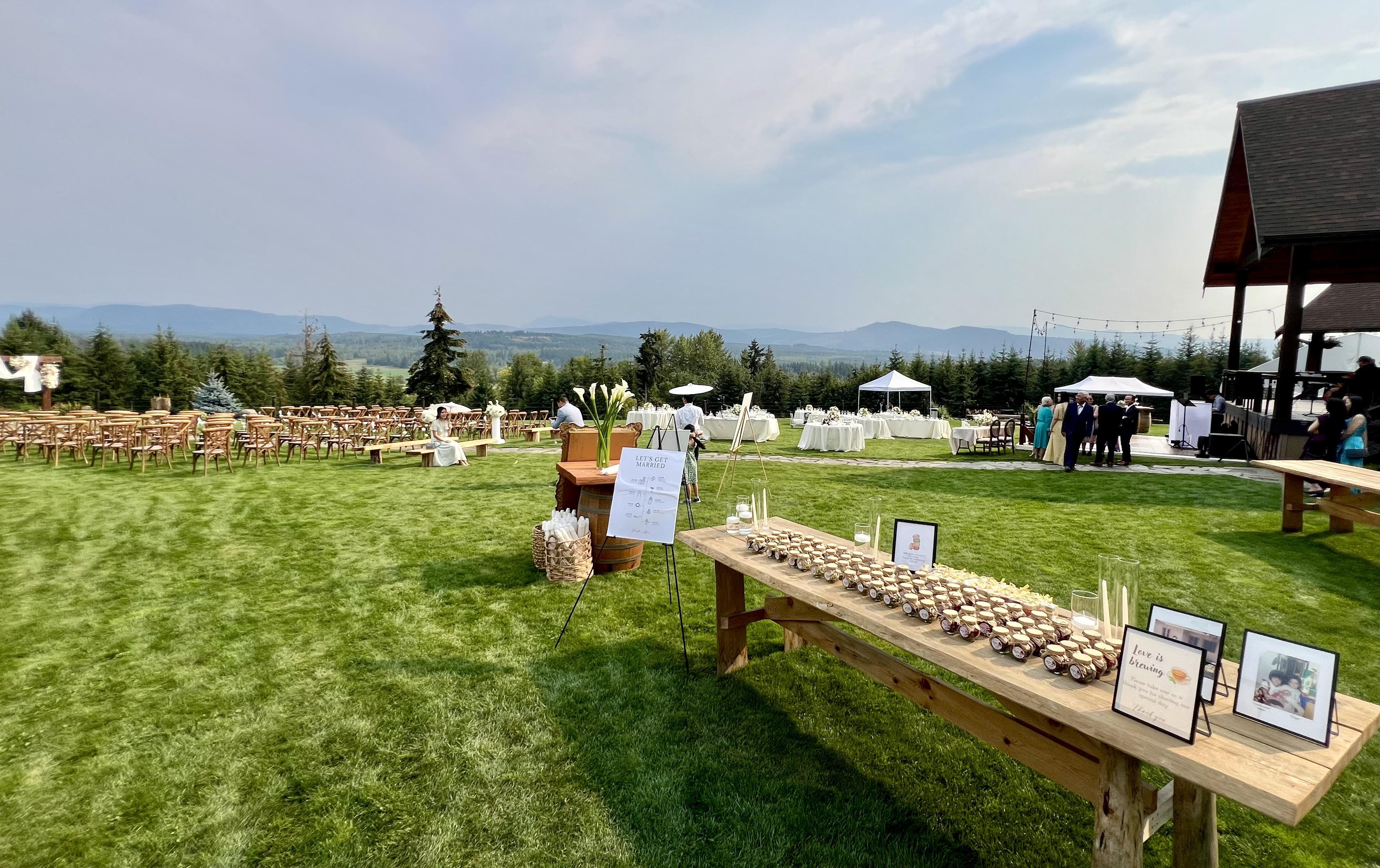 The expansive lawn is adjacent to the ceremony area and features views of the trees, valley and Mt. Rainier. There is ample room to have reception tables and chairs, lawn games, buffet area, cake table, dance floor and more. View a short video of the lawn area at https://youtube.com/shorts/ydB-IK6gjGU?si=_e8rLkd4wlPYfbHp