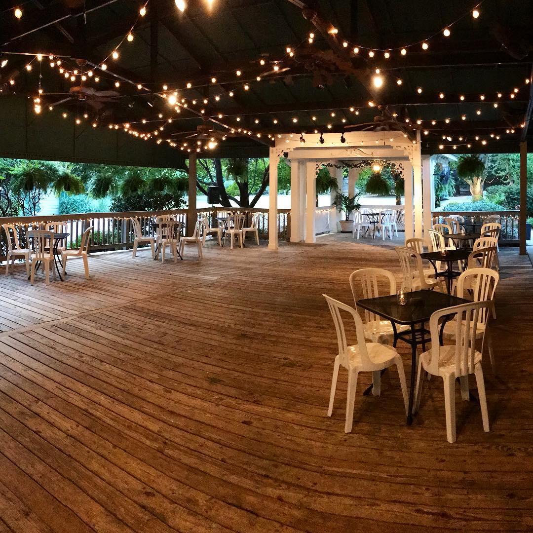 This space features nearly 1800 feet of open, warm reception space with open access to patios on all sides.