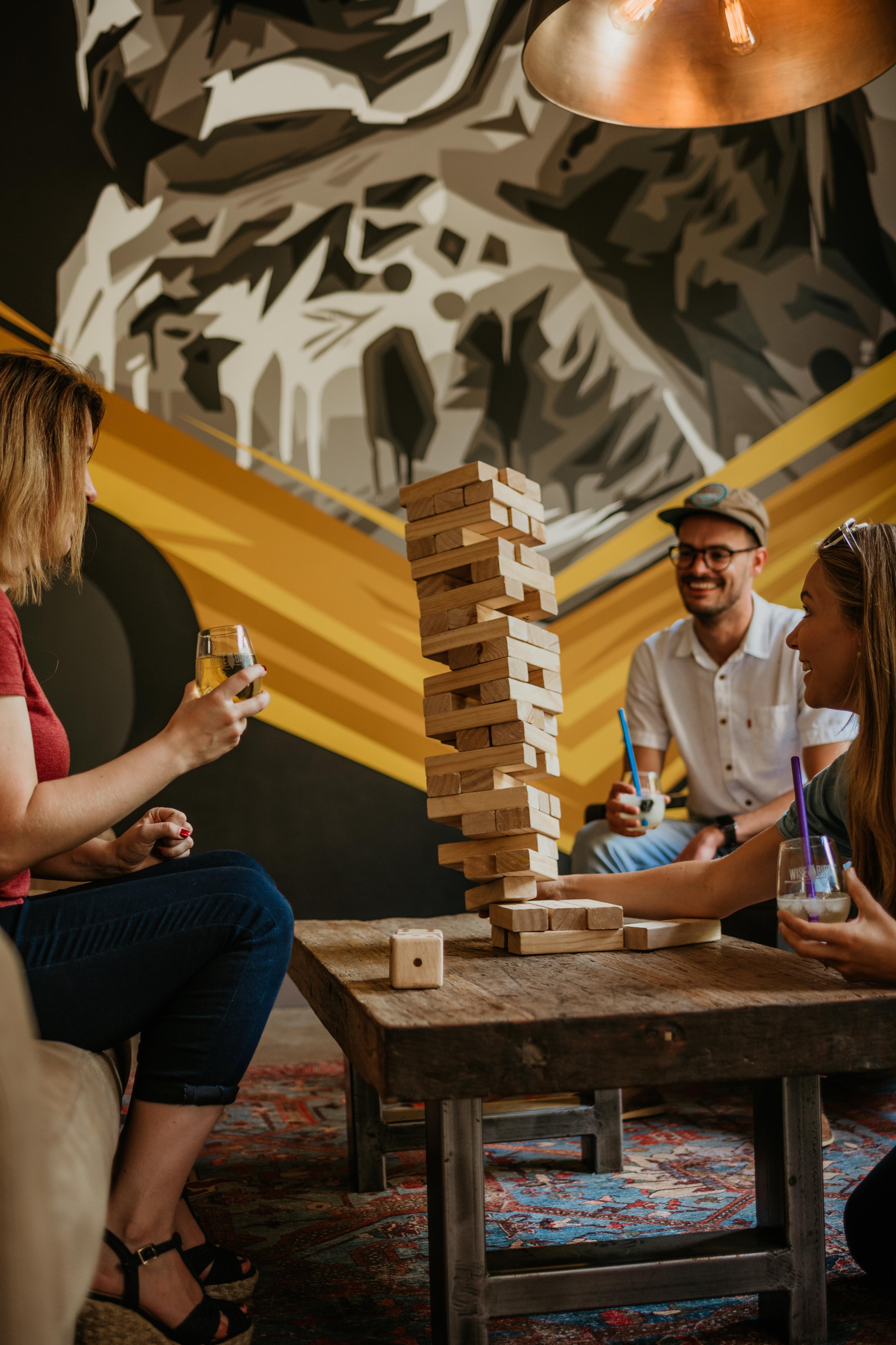 - Dimmers on most lights - Great sound system - TVs and pull down screen with projector - All outdoor areas available, weather dependent - All games on premises available to your group - Use of all TVs, sound systems, etc. - Includes 15 tables, 30 benches, 2 couches, 4 wooden stools, 4 arm chairs, 24 bar chairs