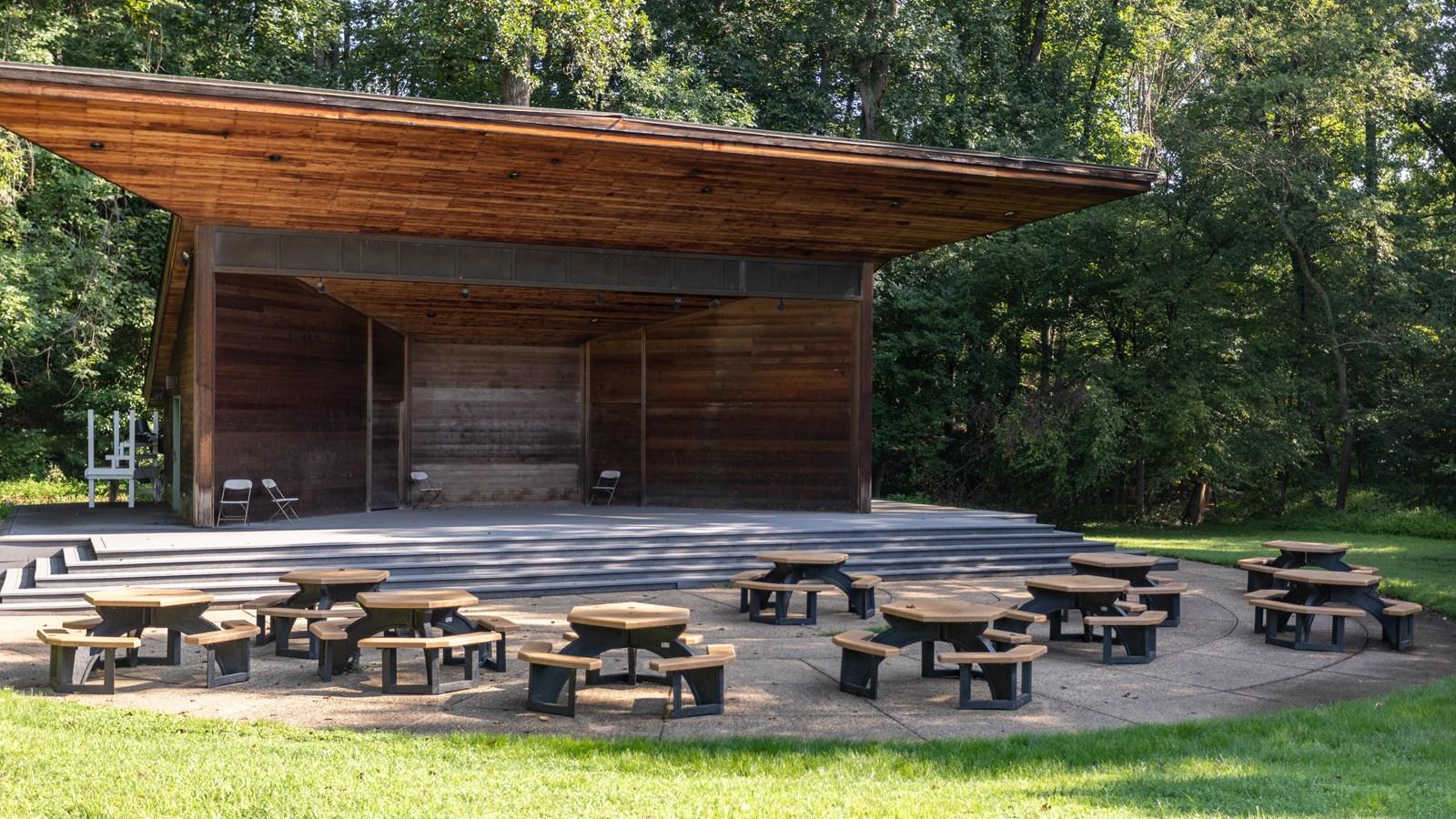 Nestled in the Park, the Meadow Stage is a picturesque venue made for small private functions. This 1,950 square foot venue provides a peaceful atmosphere for your event. With an additional 1,200 square feet of patio space (tenting required), the Meadow Pavilion offers flexibility and versatility. Located steps from the World Renowned Filene Center, this venue provides a unique and memorable experience for your guests.