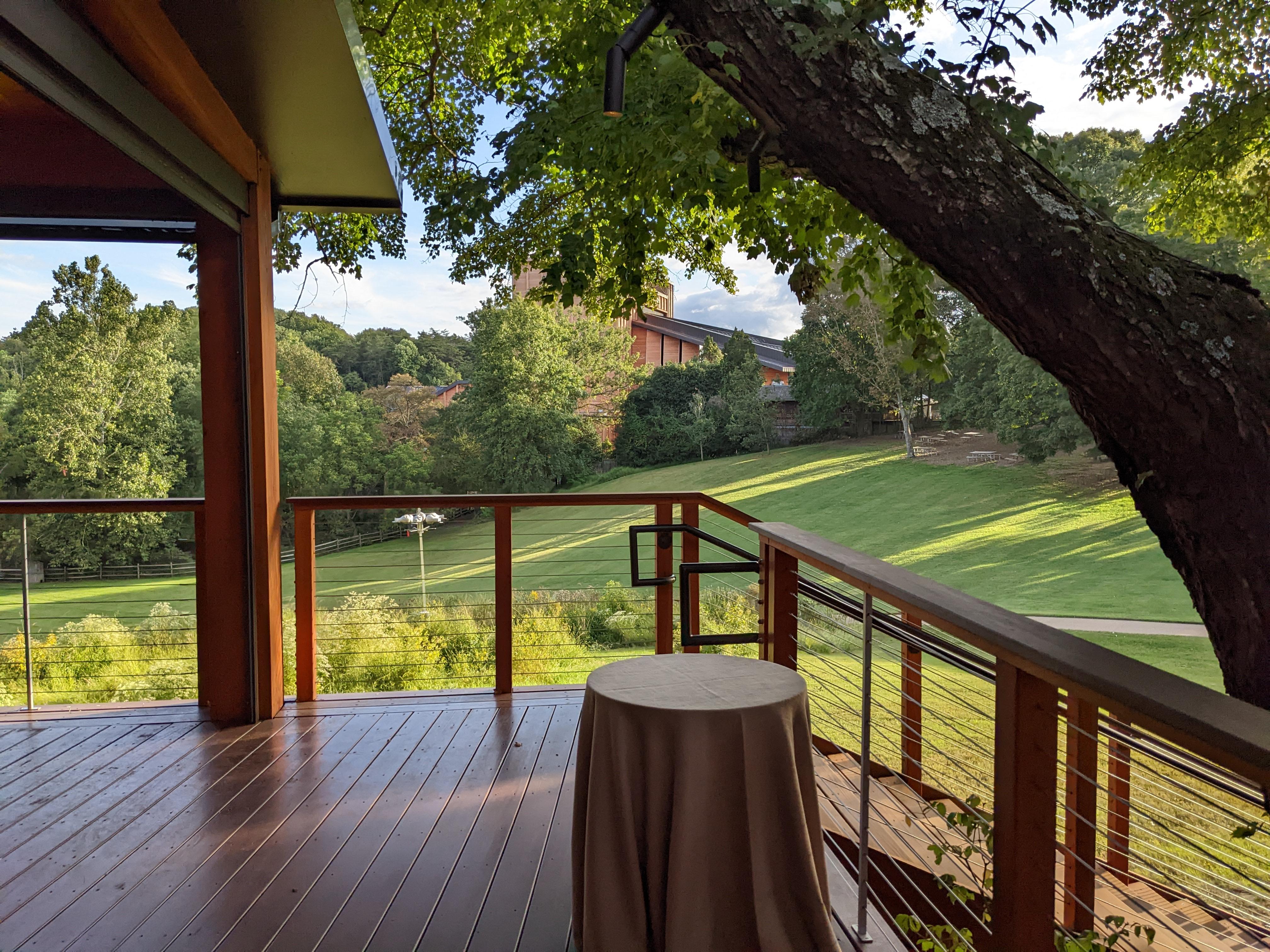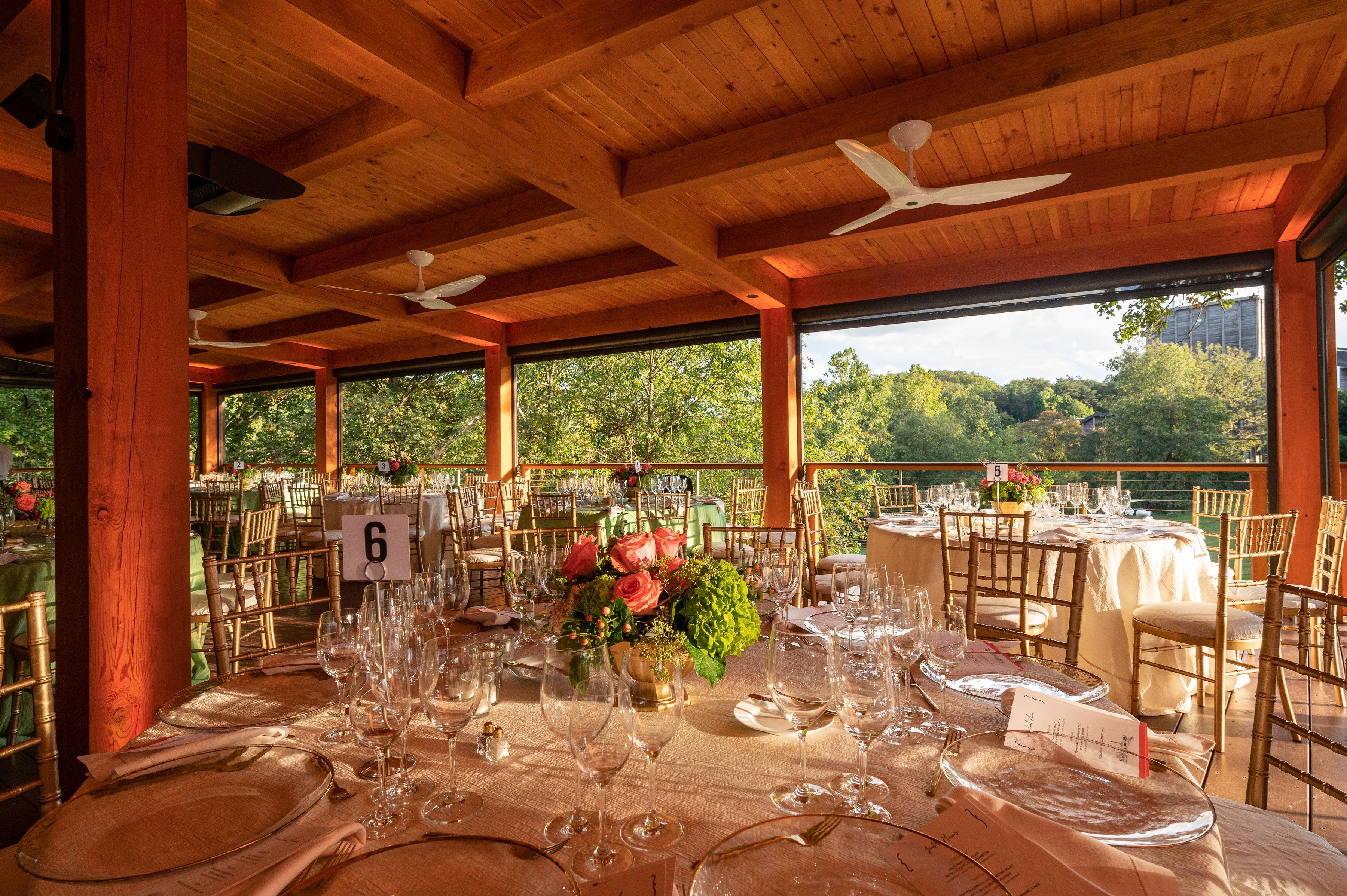 The Associates Deck is a versatile outdoor event space offering stunning views of the lower meadow and the world-renowned Filene Center. Located just a short drive from Tysons Corner and Washington, D.C., this 4,800 square foot tented deck provides a spacious and comfortable setting for your event. Equipped with ceiling fans and handicap accessibility, the Associates Deck is perfect for gatherings of all size.