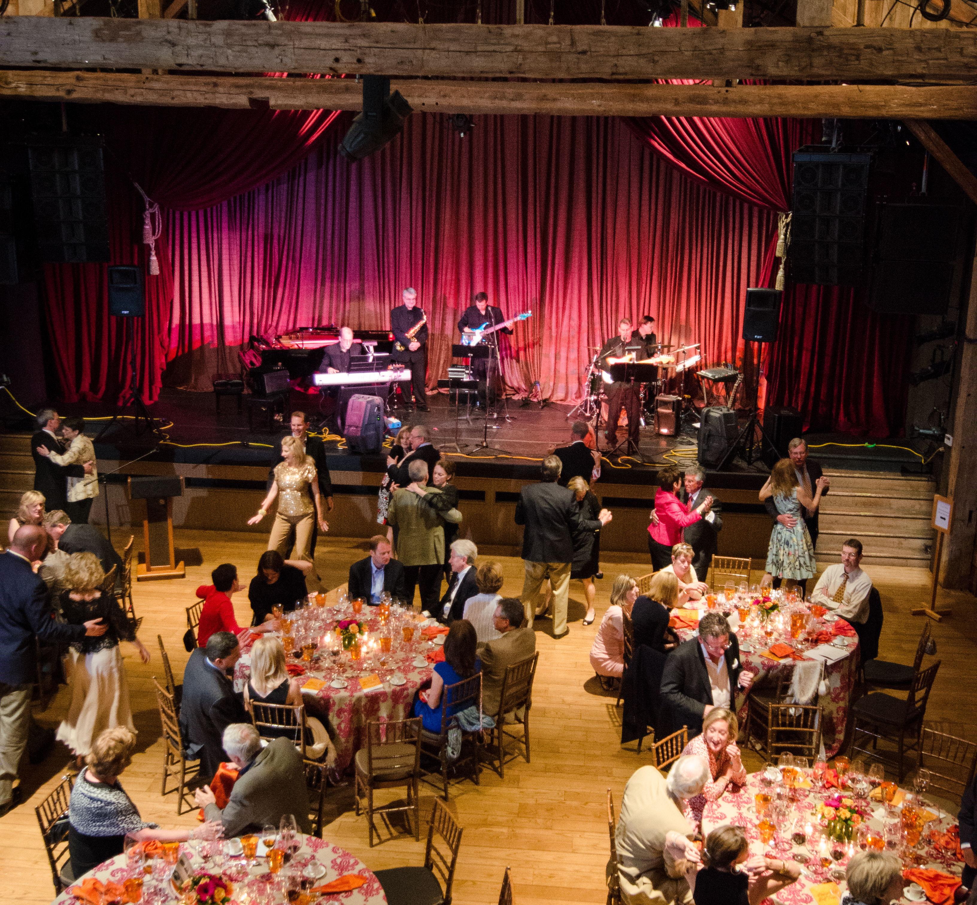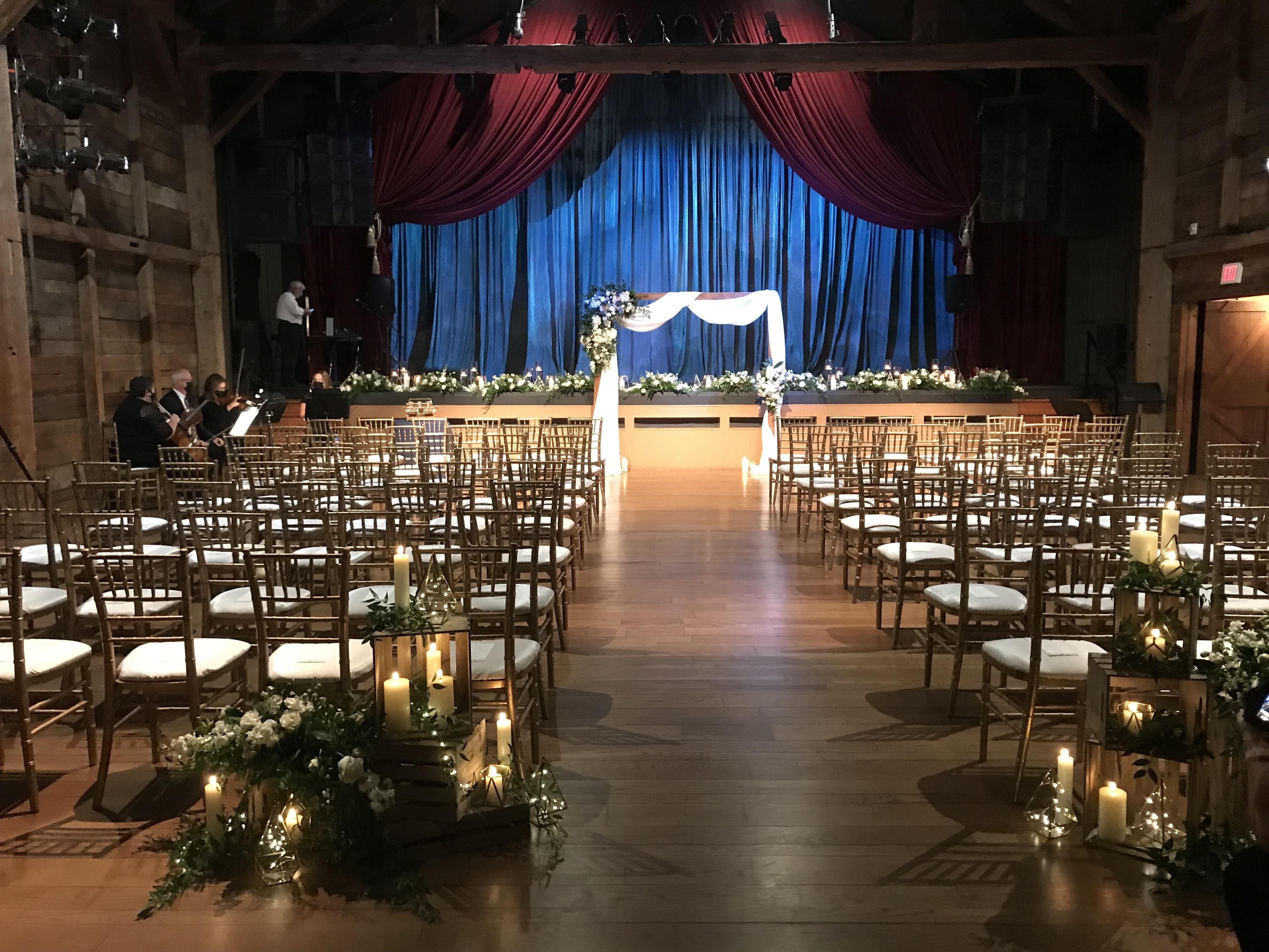 The German Barn is an acoustically perfect theater, showcasing rustic yet refined wood beam architecture. Its spacious interior, ideal for ceremonies and larger receptions, can accommodate a variety of event styles. The rental of the German Barn includes access to the connected Scottish Barn, Atrium, and Lobby areas, providing additional flexibility and amenities for your event.