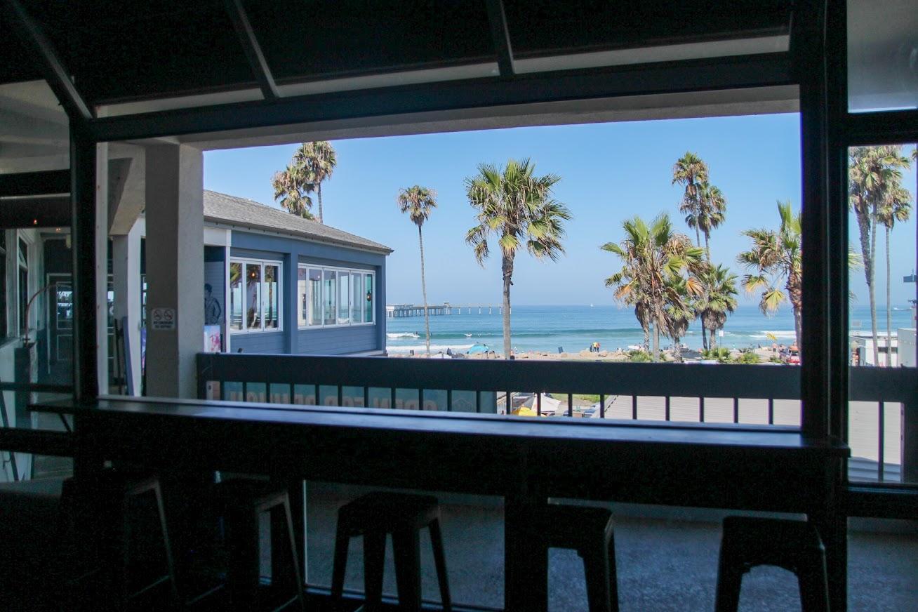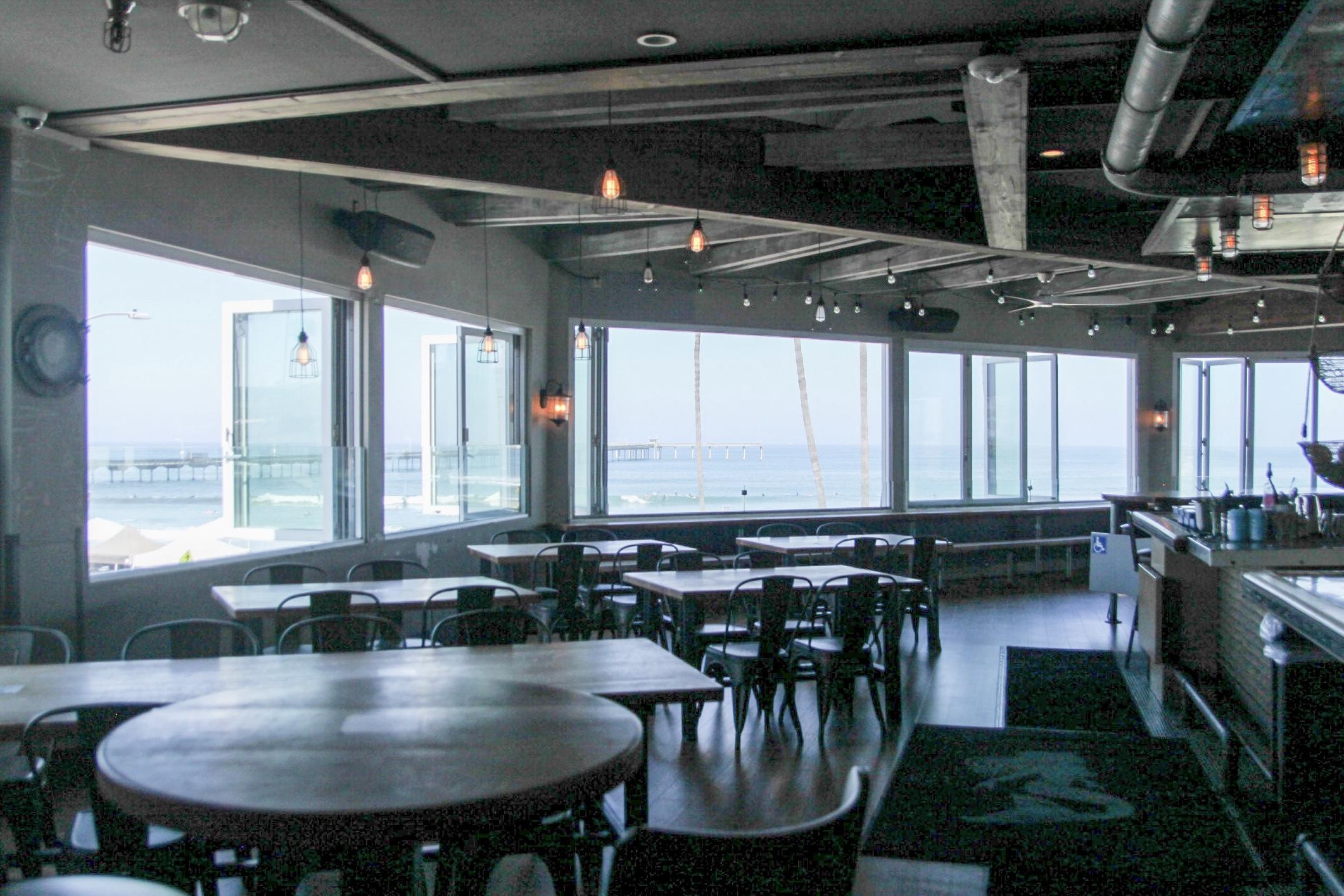 Semi-private dining space featuring boasting expansive ocean views of Ocean Beach, San Diego and the historic municipal OB pier.