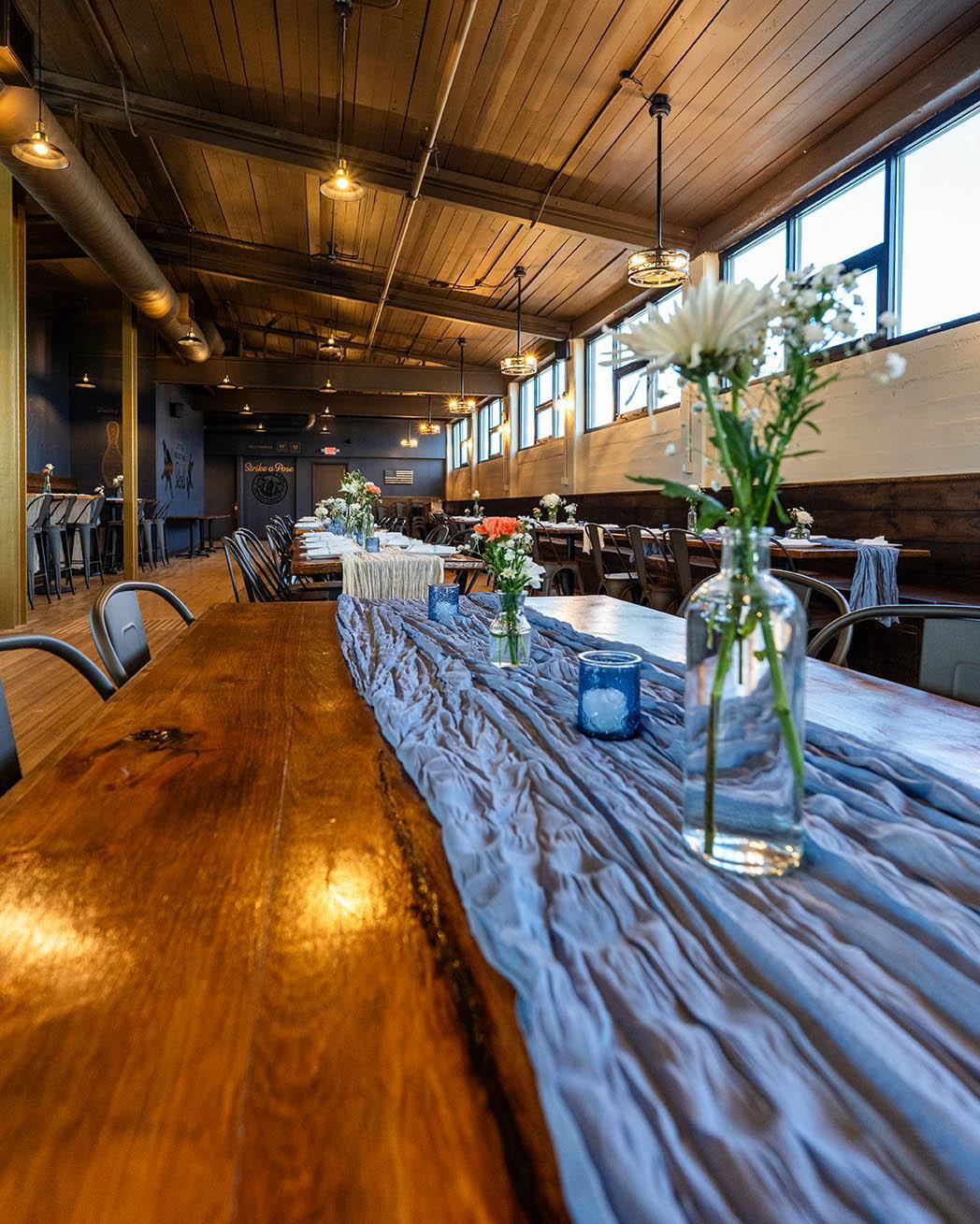 Wooden Cask Brewing Company is an ideal place to host your wedding or rehearsal dinner. The Alley on our second floor functions as a large private event space and features its own full-service bar with an extensive bourbon & whiskey collection. The Alley gets its namesake from the original bowling alleys from 1887, which have been restored. Walk down history in the Alley during your wedding ceremony! Wooden Cask Brewing Company is a wedding venue located in Newport, Kentucky.