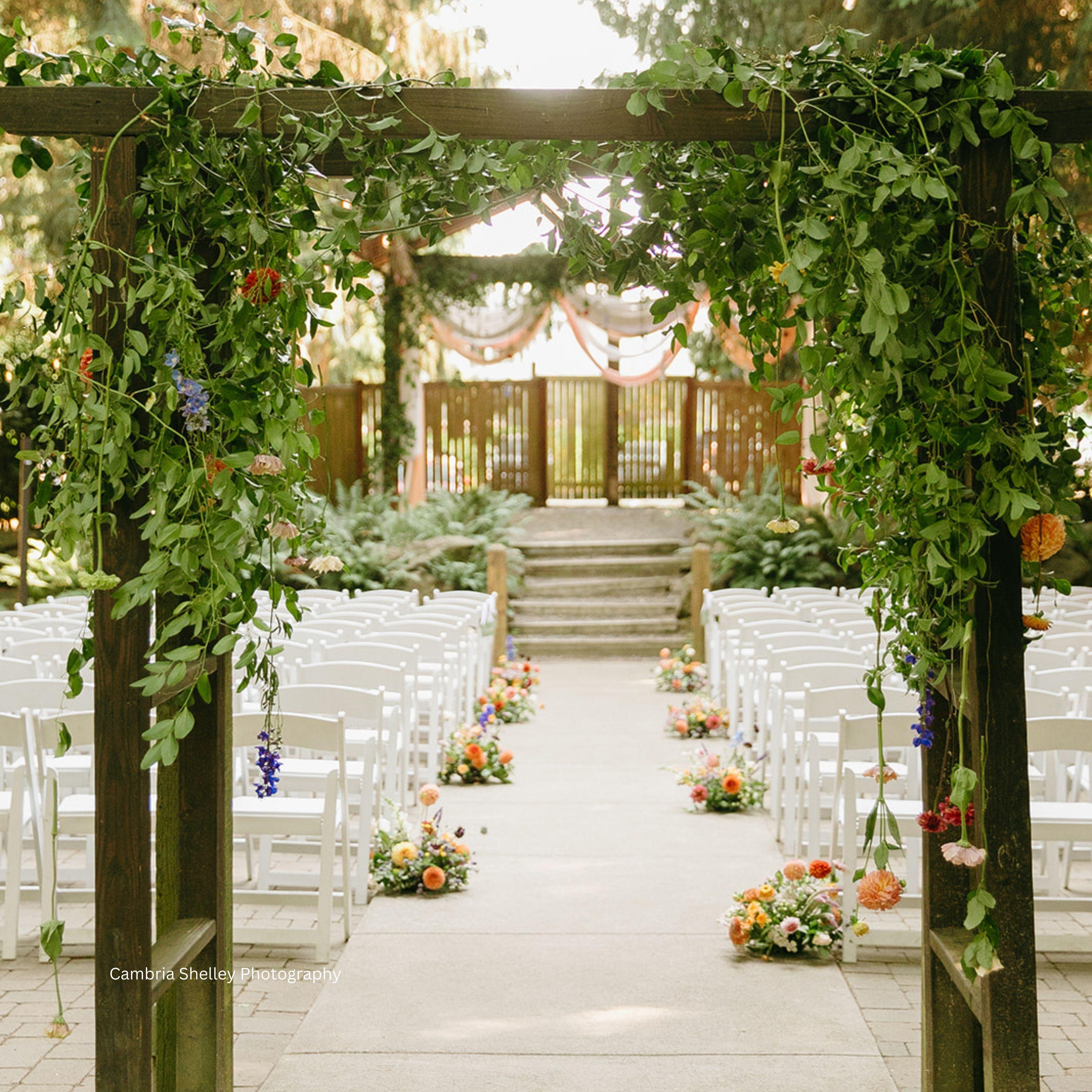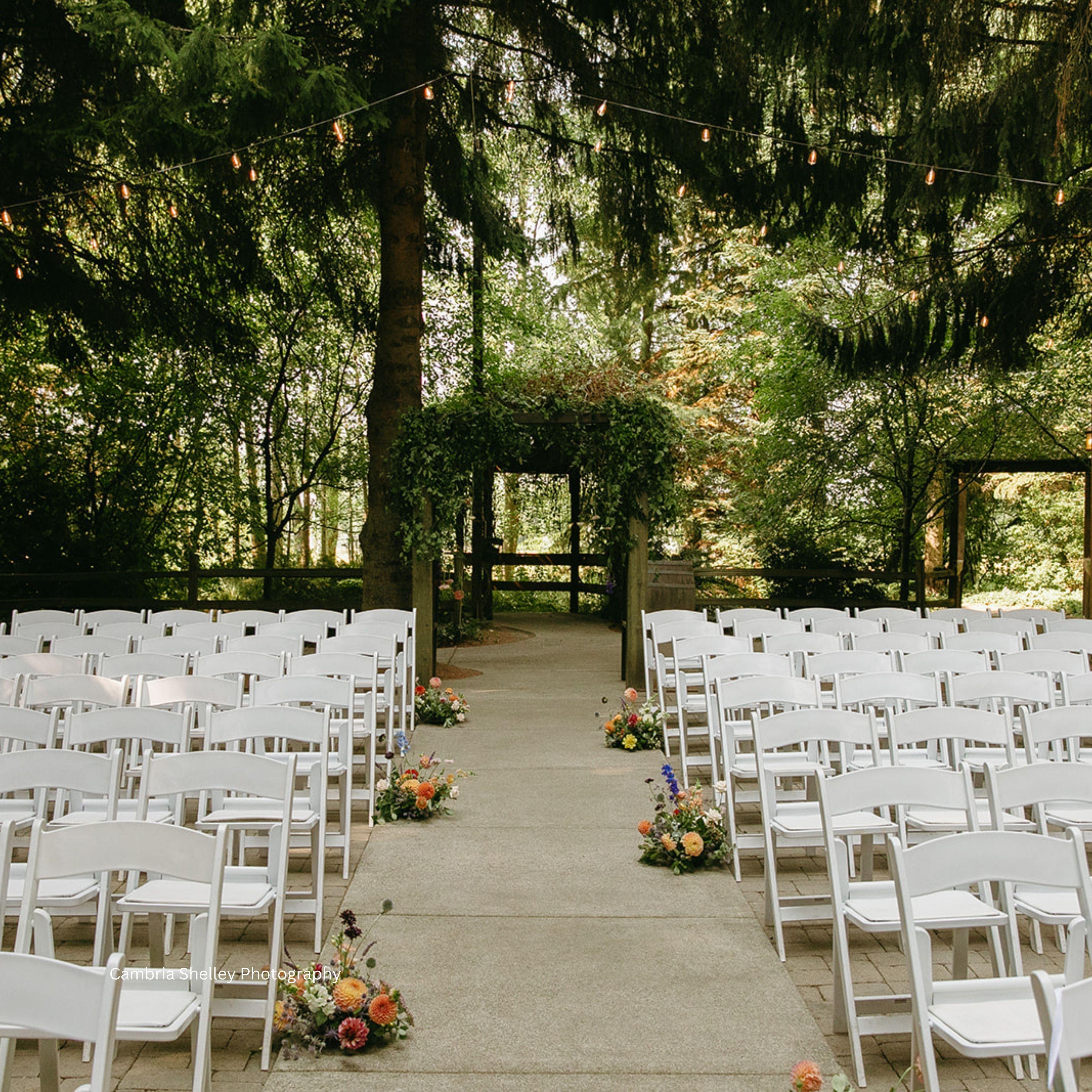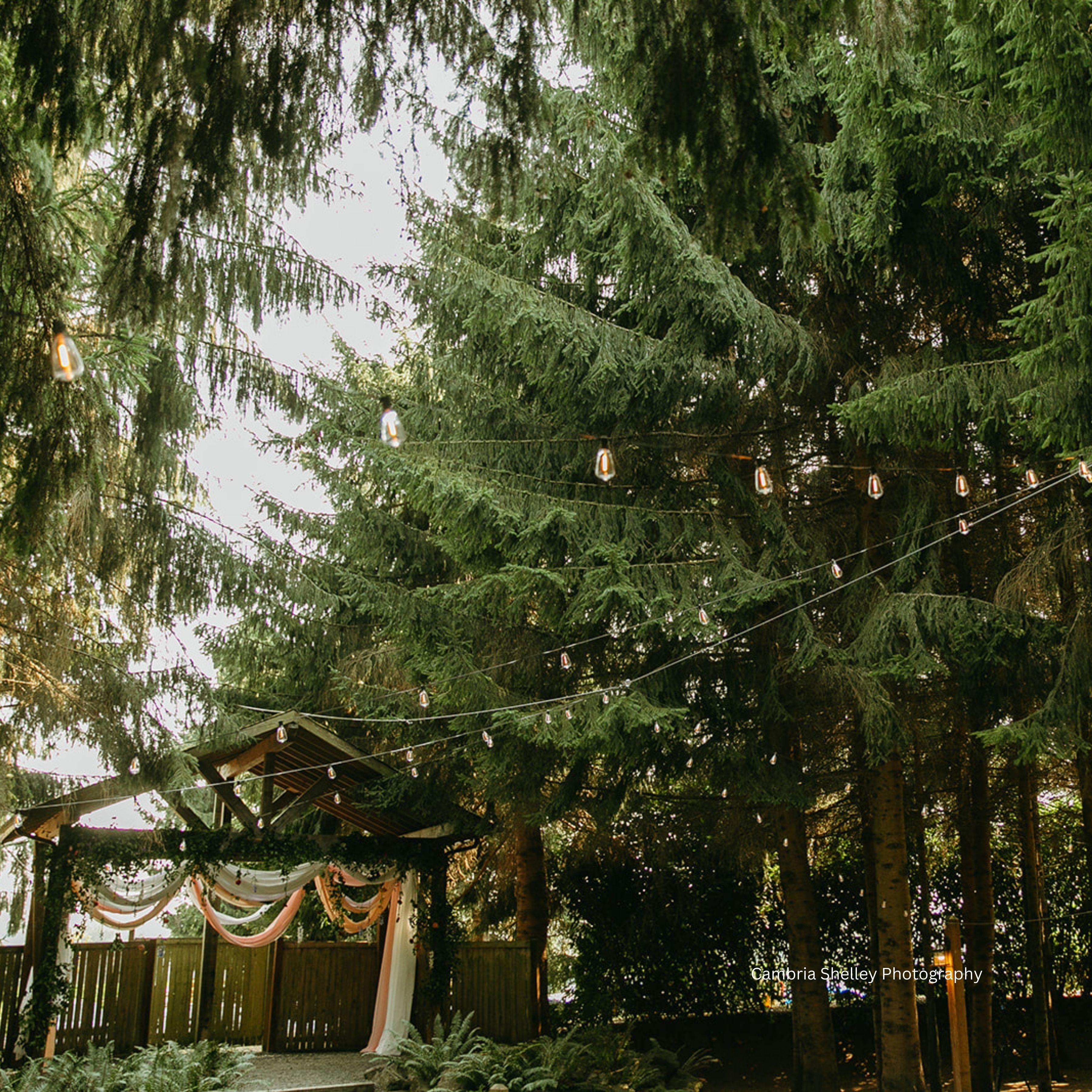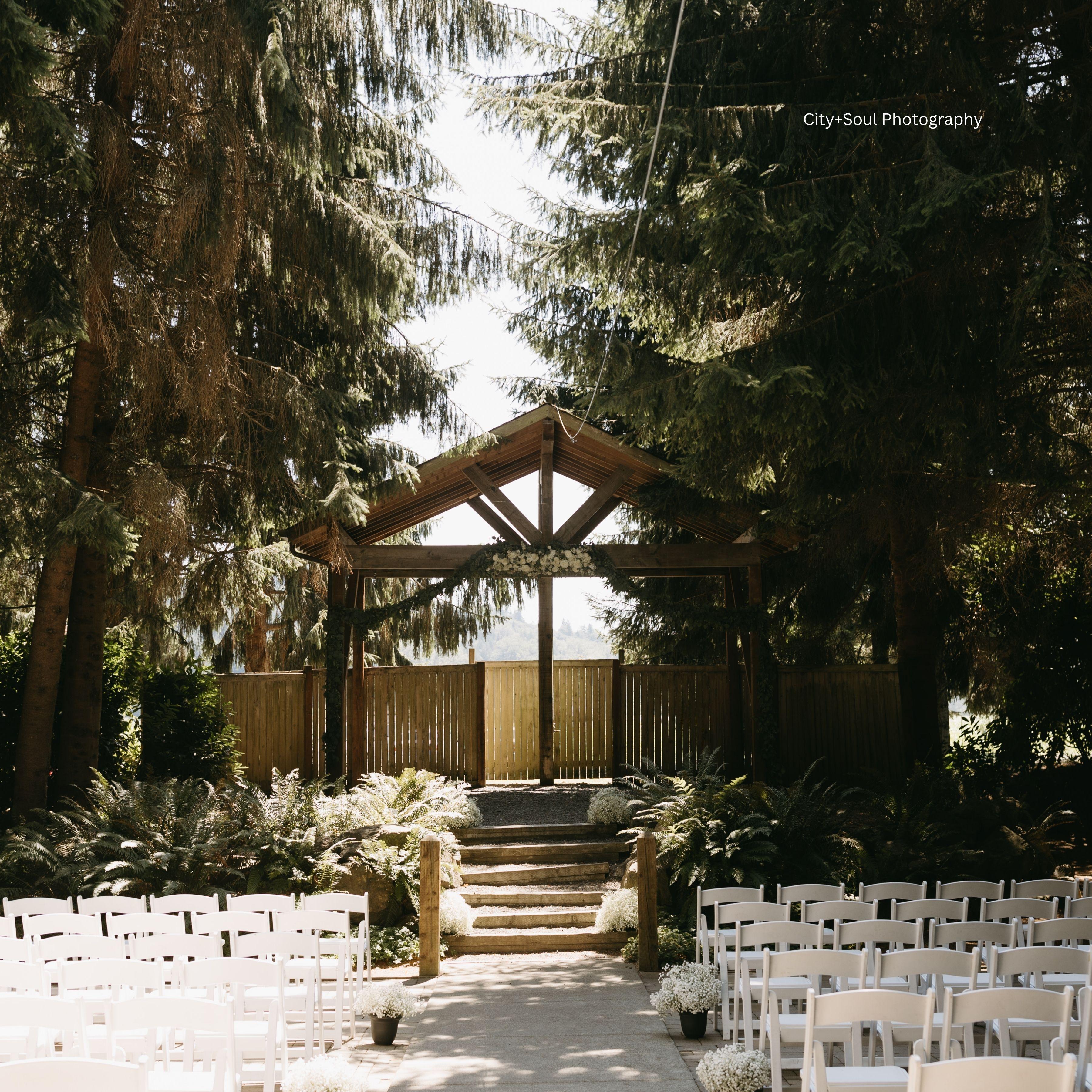 Welcome to our enchanted forest wedding venue in Washington State. Wander the grounds and you will find a stunning tree-covered ceremony space, a dedicated reception area, a private bridal cottage, groom's quarters, a wishing well, an oak tree swing, a pine forest, and so much more. Whether you're planning an intimate ceremony or a grand celebration our enchanted forest venue provides the perfect Pacific Northwest backdrop. Let us help bring your fairytale wedding to life in our magical forest setting. Woodland Meadows: Where Love Grows Amongst The Pines