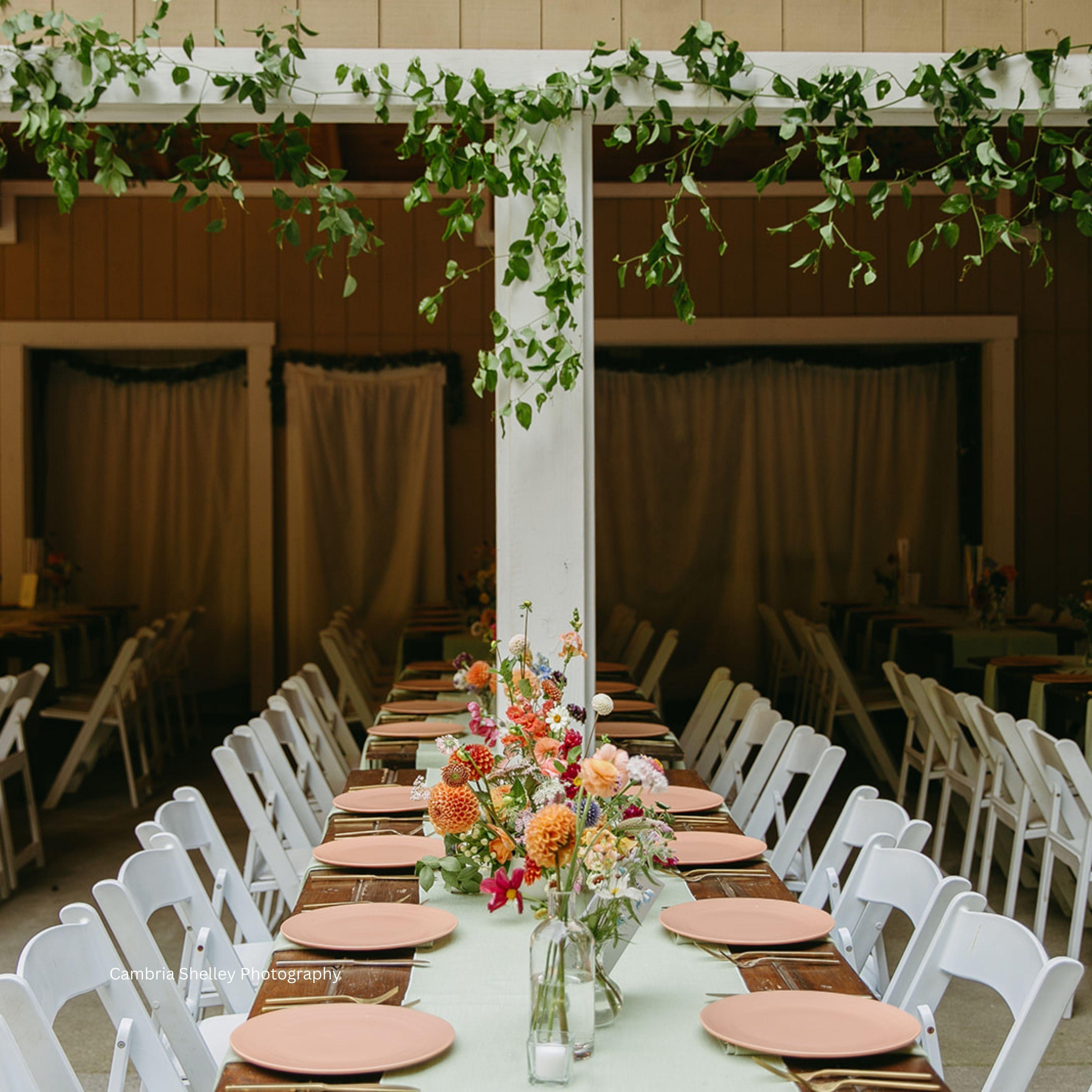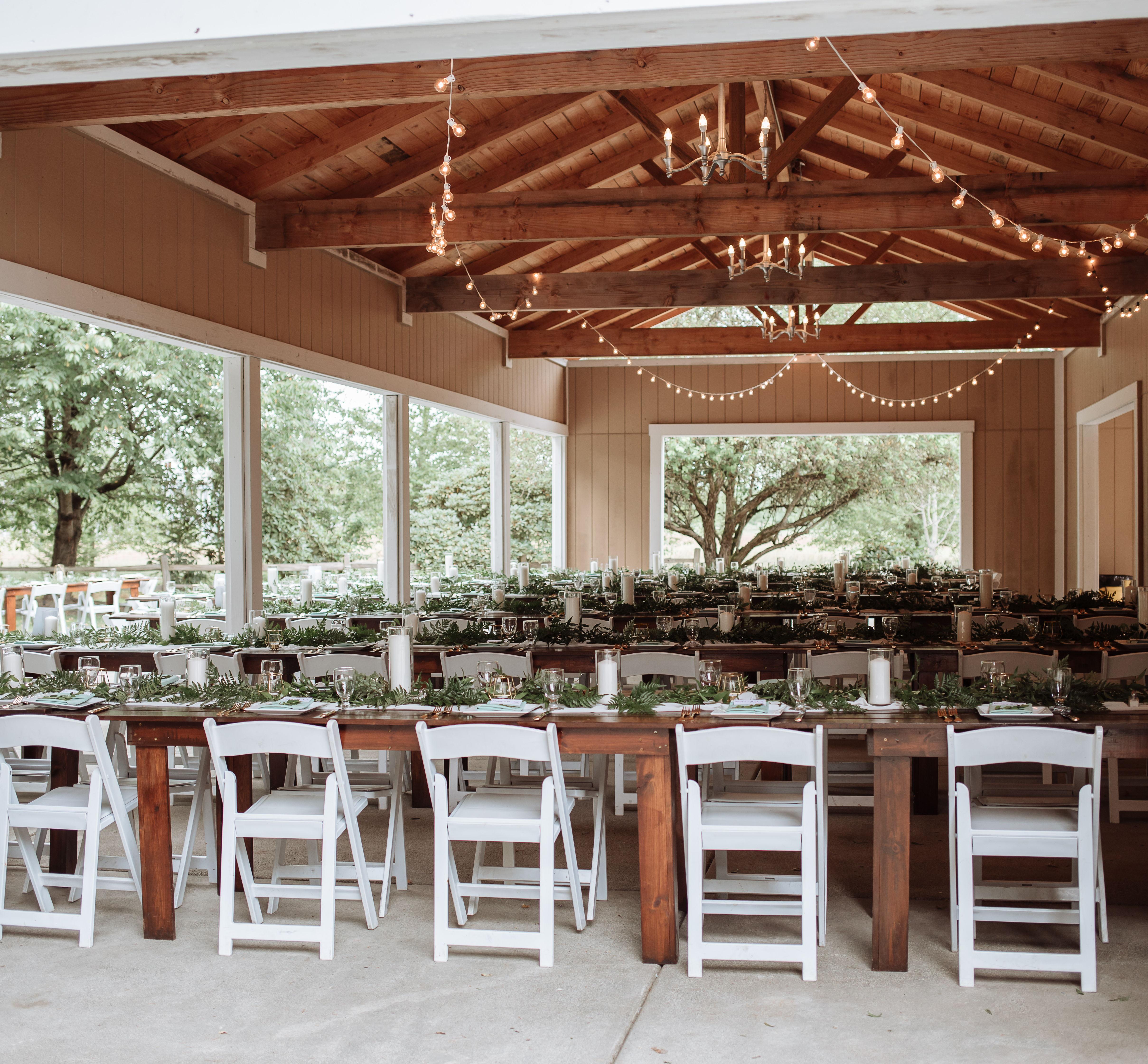 - All-day rental (10 am - 11 pm) - (250) White folding chairs - (32) 8'-0" long wood Farm Tables - 20'x50' Reception structure with Chandeliers, Adjoining Structures & Bar Space - Fire Pit - Free On-site Parking * ADA accessible parking available. - (2) Getting Ready Buildings - (4) Guest Restrooms - Food prep room - Complimentary Rehearsal - Diverse Photo Opportunities - Recommended Vendor List - Convenient Payment Plan - Covered Rain Fly For Ceremony Space